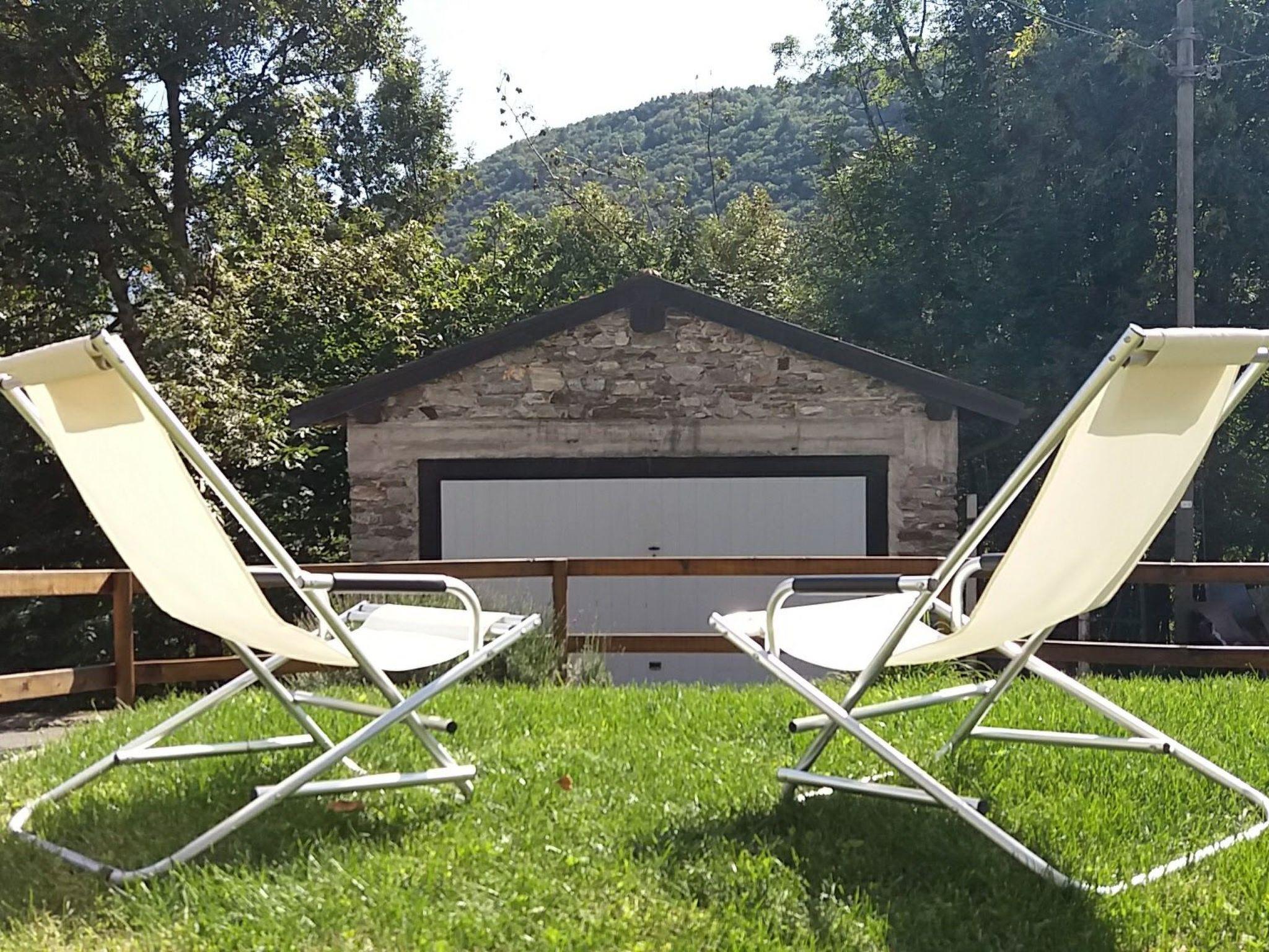 The bedroom and the kitchen-living room offer access to the balcony, which is furnished with a table, chairs and sunshade. From here one can enjoy a wonderful view of the surrounding hilly landscape. In front of the house is a private garden. It is equipped with garden furniture and is therefore ideal for dining and enjoying the sun. Next to the house is a private garage, which can accommodate one car.
