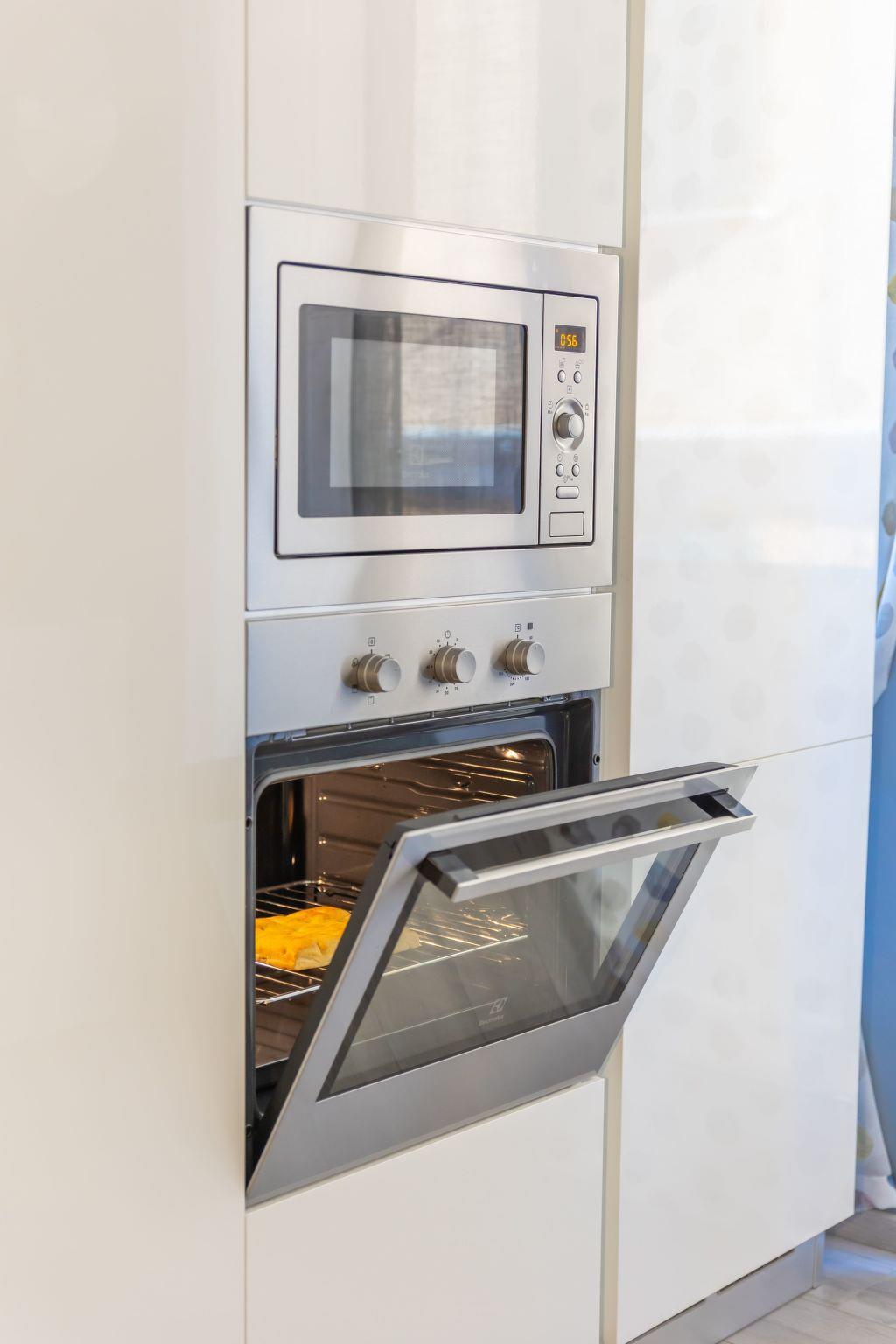 Confirmation comes from the living area dominated by the large leather sofa on one side and the open kitchen on the other. Very white, super-equipped, the kitchen has a fridge and freezer, washing machine and dishwasher, induction hobs and a double oven: electric and microwave. Nothing is really missing, even in terms of small appliances: the coffee pod machine, the toaster.
