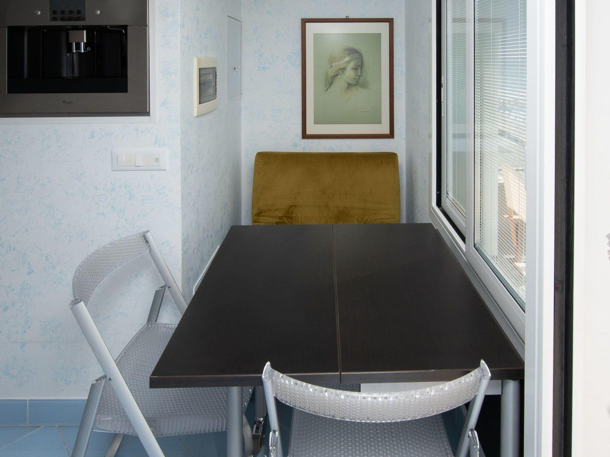 The terrace, the true jewel of the flat, is furnished to enjoy life in the open air and offers an unparalleled view of Alassio's azure coastline. This outdoor space is perfect for relaxing in the sun, eating al fresco or simply contemplating the beauty of the sea from a privileged vantage point.