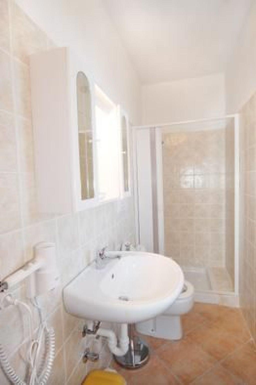The flat is 65 square metres and is located on the first floor. It features a spacious living room with a flat-screen satellite TV and a large sofa bed for two people. The living area also includes a kitchenette with a hob, oven, microwave, refrigerator and a dining table with chairs. There is also a bedroom with a double bed or two single beds and the possibility of adding an extra bed. In the bathroom