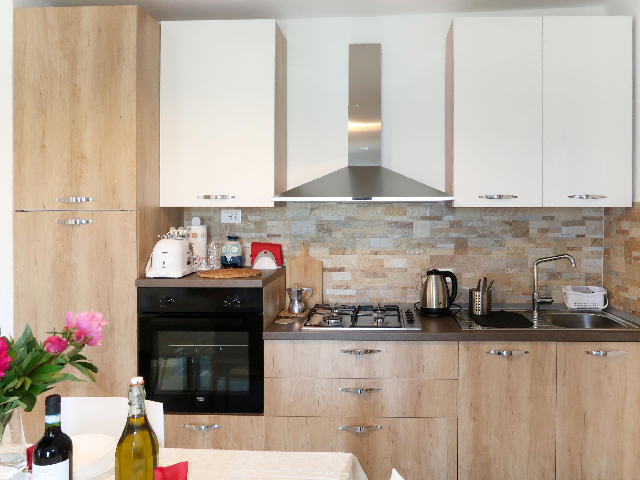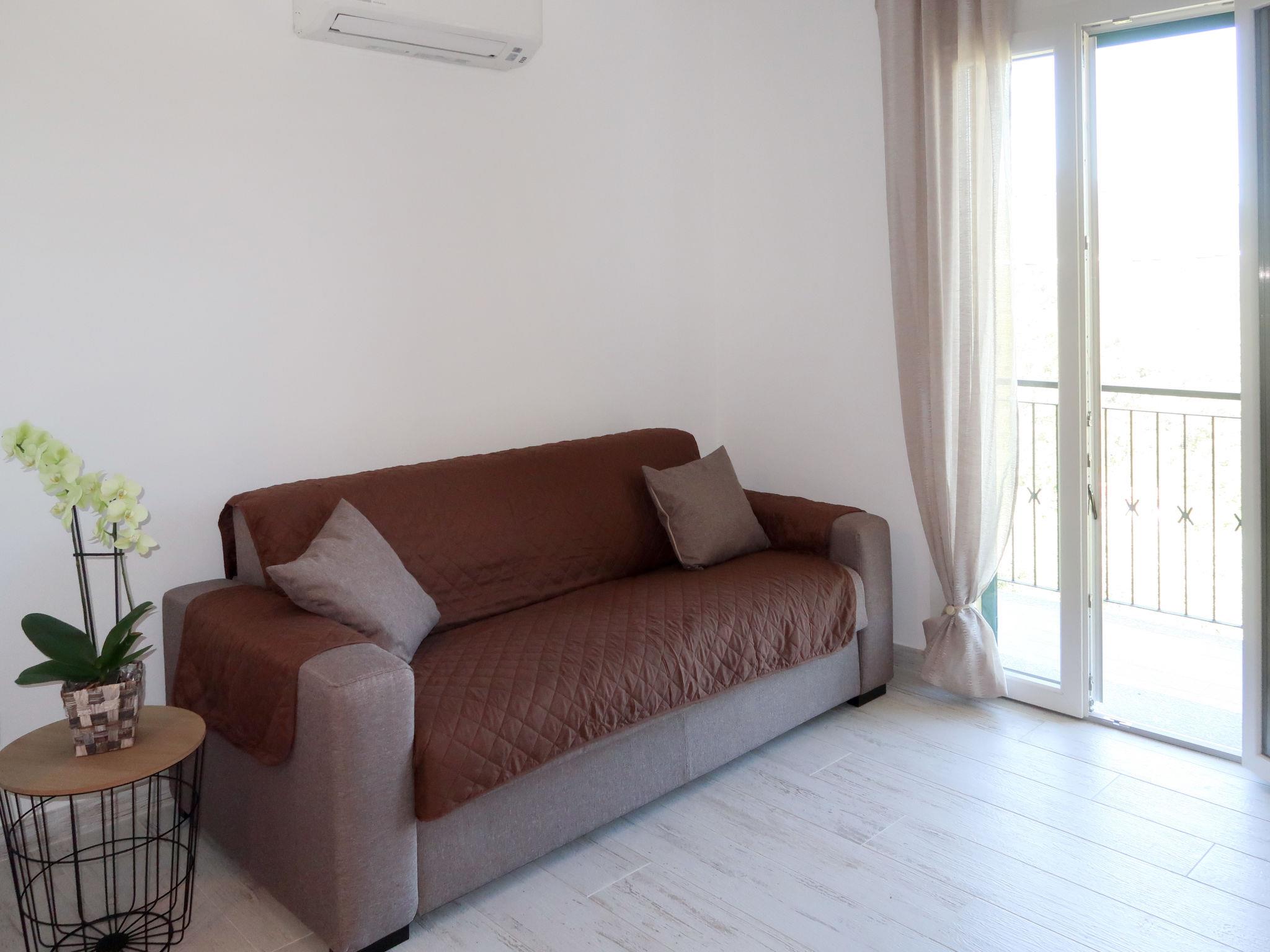 "A Ca' Gialla (AEG100)", 3-room apartment 70 m2, on the upper floor. Beautiful and modern furnishings: living/sleeping room with 1 double sofabed (160 cm), dining table and international TV channels. Exit to the terrace. 1 room with 1 french bed (160 cm). 1 children's room with 1 pull-out bed (2 x 60 cm, length 180 cm). Kitchenette (oven, dishwasher, 4 gas rings, toaster, kettle, freezer, electric coffee machine). Shower/WC. Electric heating, air-conditioning, forced-air heating. Large terrace 100 m2 partly roofed. Terrace furniture, barbecue electric barbecue (portable), deck chairs (3), box-room. Beautiful distant view of the mountains, the countryside and the resort. Facilities: washing machine, iron, mosquito net, children's high chair, baby cot. Internet (WiFi, free). Parking (1 car) at the house. Please note: suitable for families. Private entrance. IT009068C2LL77VPO9