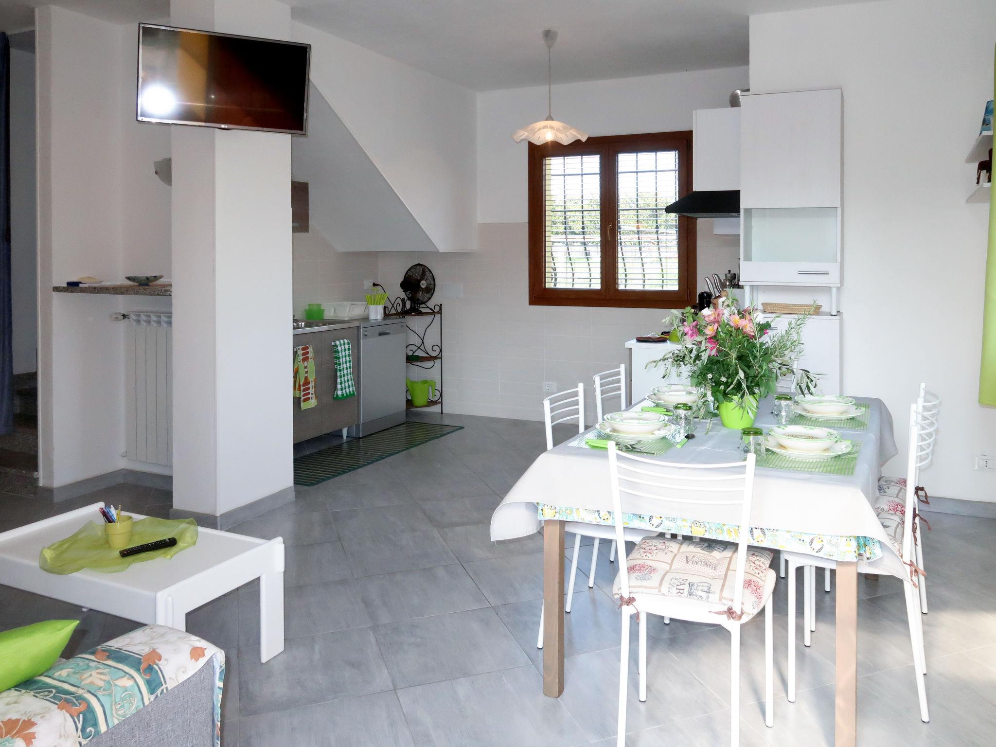 "Lavanda (AEG160)", 3-room semi-detached house 80 m2 on 2 levels, on the ground floor. Bright, modern furnishings: living/sleeping room with 1 double sofabed (160 cm), dining table and TV. Exit to the terrace. Open kitchen (oven, dishwasher, 4 gas rings, toaster, kettle, microwave, freezer). Shower/bidet/WC. Upper floor: 1 room with sloping ceilings with 1 double bed (160 cm). Exit to the terrace. 1 room with sloping ceilings with 1 french bed (160 cm). Exit to the terrace. Shower/bidet/WC. No heating option. Balcony 8 m2, large terrace 80 m2, terrace 30 m2. Terrace furniture, balcony furniture, barbecue (portable), deck chairs (4), box-room. Facilities: washing machine, iron, children's high chair, baby cot. Internet (WiFi, free). Parking (2 cars) at the house. Please note: non-smokers only. IT009002C2HJ2ZNZP8