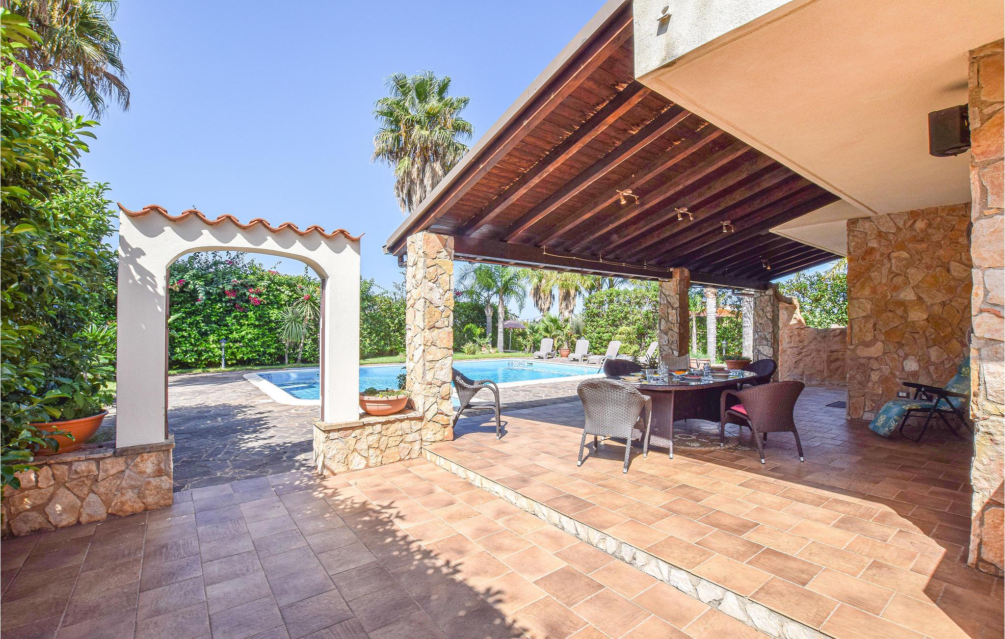 Skønt feriehus med privat pool og store udendørs arealer i et boligområde. I bor 3 km fra Altavilla Milicia, omkring Palermo og ikke langt fra smukke sandstrande. Ideelt hus for familier og gæster, der gerne vil være udendørs. Takket være den bekvemme beliggenhed, kan I nemt nå stranden. Fra terrassen på første sal kan I nyde den delvise udsigt over havet. Ejendommen har store udendørsarealer, en smuk have med palmer og typiske planter, en privat swimmingpool, udendørs bruser, funktionelt udekøkken, grill og overdækket terrasse. Området byder på kendte turistmål og badebyer som Palermo (25 km) med sin enorme kunstneriske arv, Monreale (32 km) med sin smukke katedral og kloster, Cefalù (60 km) med dens fascinerende strande, Capo Zafferano (13 km) med en spektakulær udsigt over Cefalù og helt til Capo Gallo. Huset er fordelt på to niveauer. Trætilbygningen i haven er ikke tilgængelig.