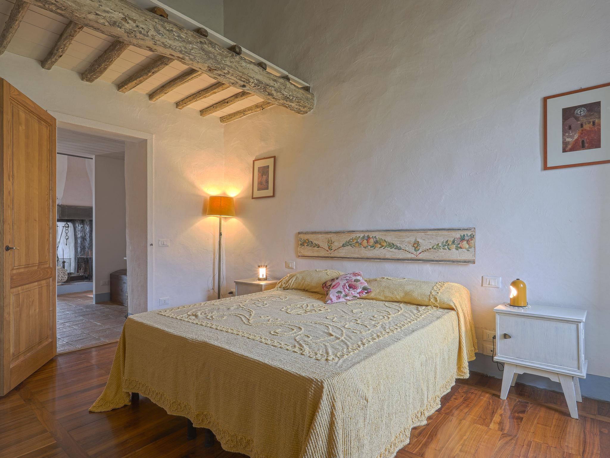 Very beautiful country house "Casa di Life", 450 m a.s.l., from the 16th century, renovated in 2012. In the hamlet Cennina 3.5 km from the centre of Ambra, 6 km from the centre of Bucine, in a sunny, elevated position on top of a hill, 300 m from the edge of the forest, in the countryside. For shared use: property 10'000 m2 (fenced), beautiful, well-kept terraced garden with trees, meadow, orchard, swimming pool (10 x 5 m, depth 150 cm, seasonal availability: 01.May. - 30.Sep.). Outdoor shower, terrace, garden furniture, pool maintenance by the owner/gardener. In the house: washing machine. Motor access (100 m via unmade road). Parking on the premises. E-charging station. Shop 3.5 km, grocery 3.5 km, supermarket 6 km, restaurant 3.5 km, bus stop 3.5 km, railway station "Bucine" 6 km, thermal baths "Rapolano Terme" 23 km. Nearby attractions: Siena 40 km, Arezzo 34 km, Cortona 55 km, Florence 62 km. Hiking paths: Corbezzoli (13 km) 100 m. Please note: car recommended. Baby equipment (included). Residence with electric gates. The owner lives in the same residence. The owner has a dog. All houses/apartments are individually designed/furnished. Outdoor dog pen.