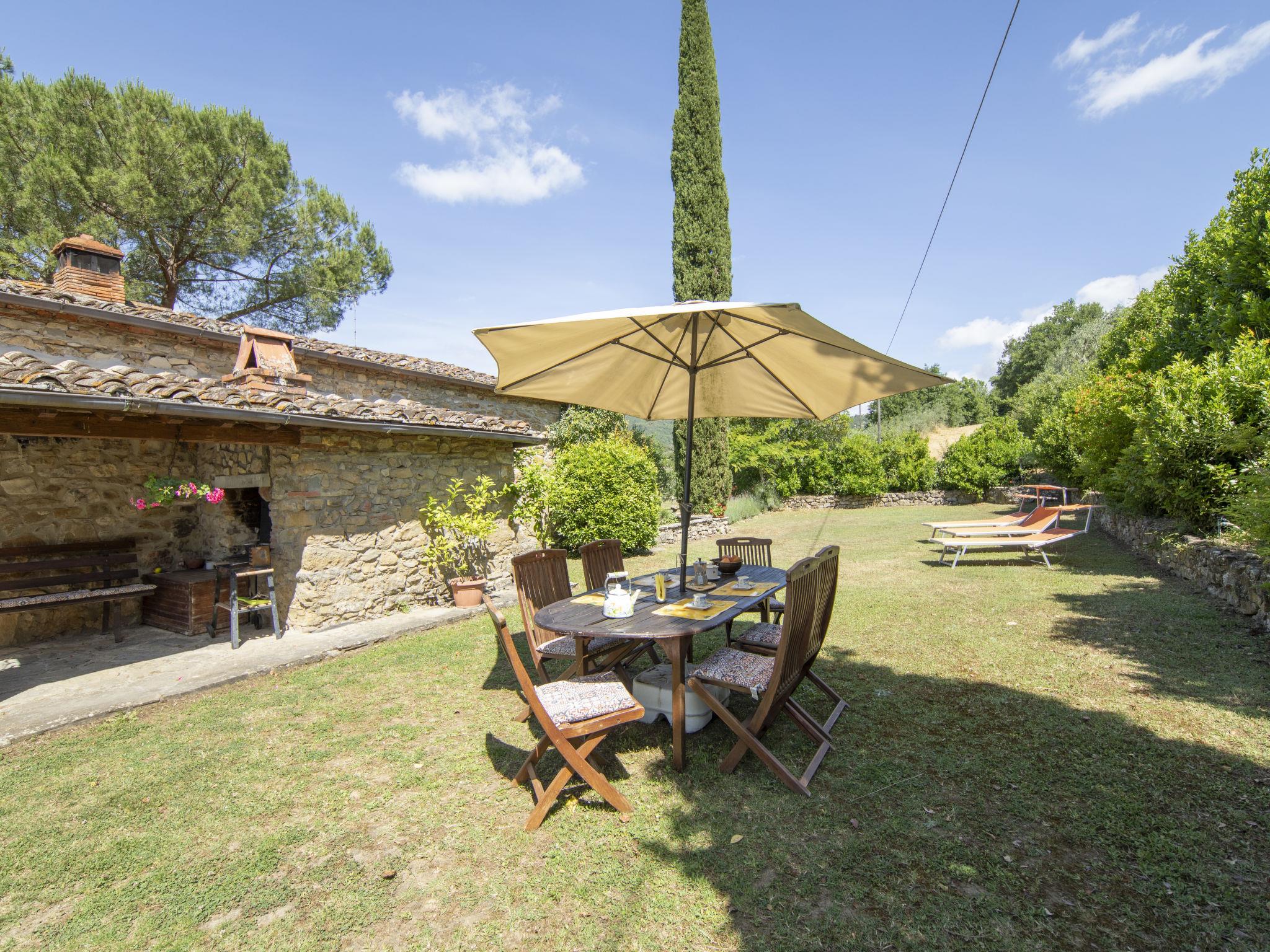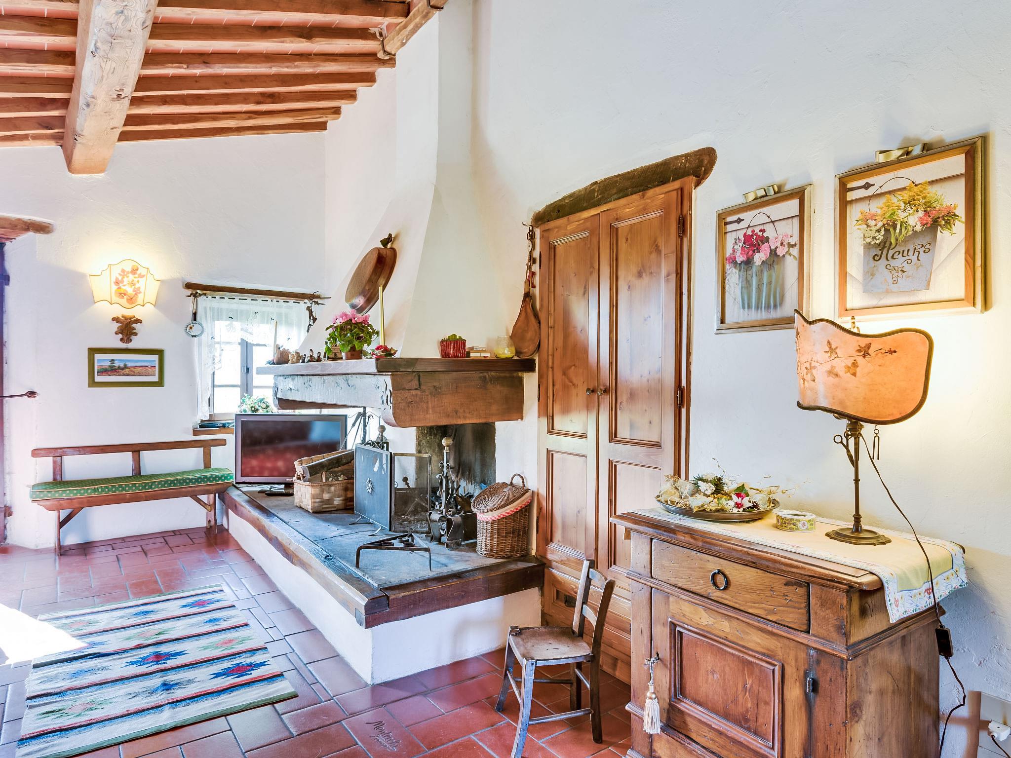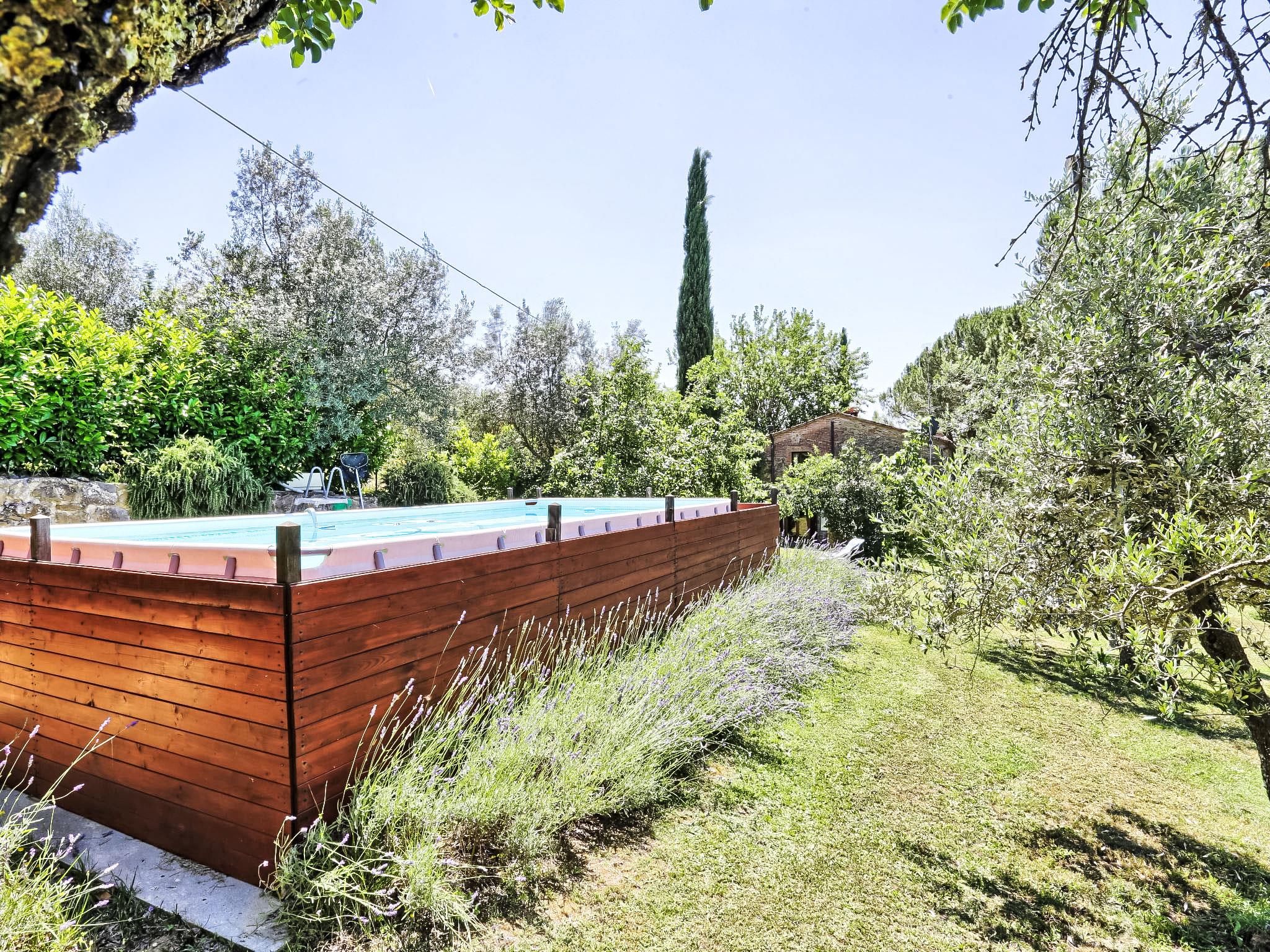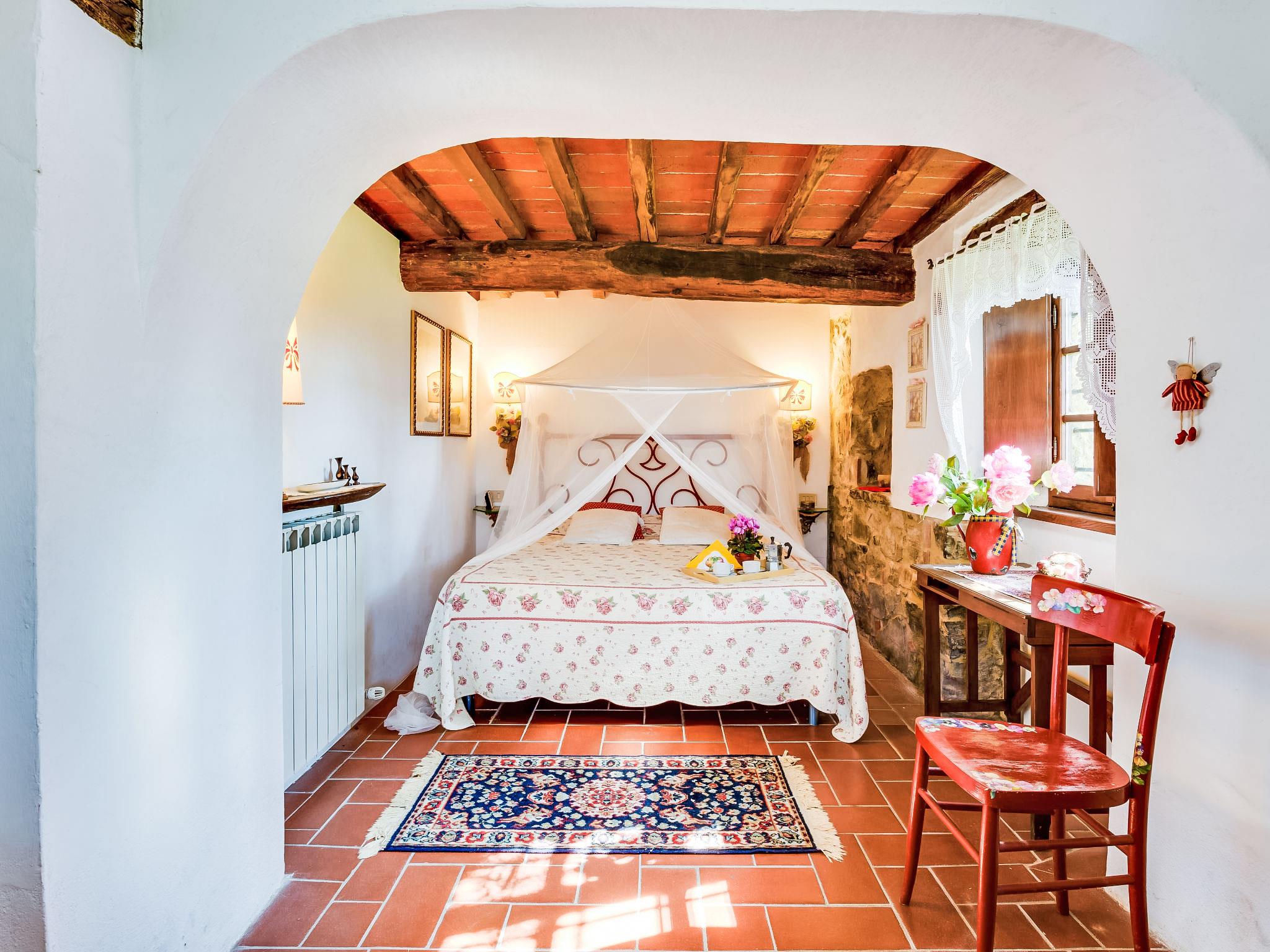 Lamone 1 km from Ambra: Characteristic farmhouse in a quiet location, located in an area of castles (Cennina, Lupinari, Gargonza) with panoramic views of the typical Tuscan countryside. Ideal for those seeking absolute relaxation but also for those who love the wild nature and make excursions to the famous Tuscan art cities, finding the house in the center of the Florence-Siena-Arezzo cultural triangle. The property is furnished with typical Tuscan furniture. Very large and well equipped outdoor areas for outdoor dining. Very old, child friendly, cosy country house "Il Lamone", surrounded by trees and meadows. 30 km from the centre of Arezzo, 35 km from the centre of Siena, 60 km from the centre of Firenze, in a secluded, quiet, sunny position, in the countryside. For shared use: property 4 ha. Private: property, large garden 2 ha, swimming pool (above ground) (7 x 3 m, depth 125 - 125 cm, seasonal availability: 27.Apr. - 30.Sep.). Garden furniture, barbecue, pool maintenance by the owner/gardener. In the house: with TV, central heating system, washing machine, heating available only from 01.Nov. - 15.Apr.. Room cleaning on request (extra). Motor access to the house. Parking at the house. Shop, grocery, restaurant 800 m, bus stop "Ambra" 2 km, railway station "Bucine" 9 km. Tennis 4 km, riding stable 5 km. Please note: car recommended.