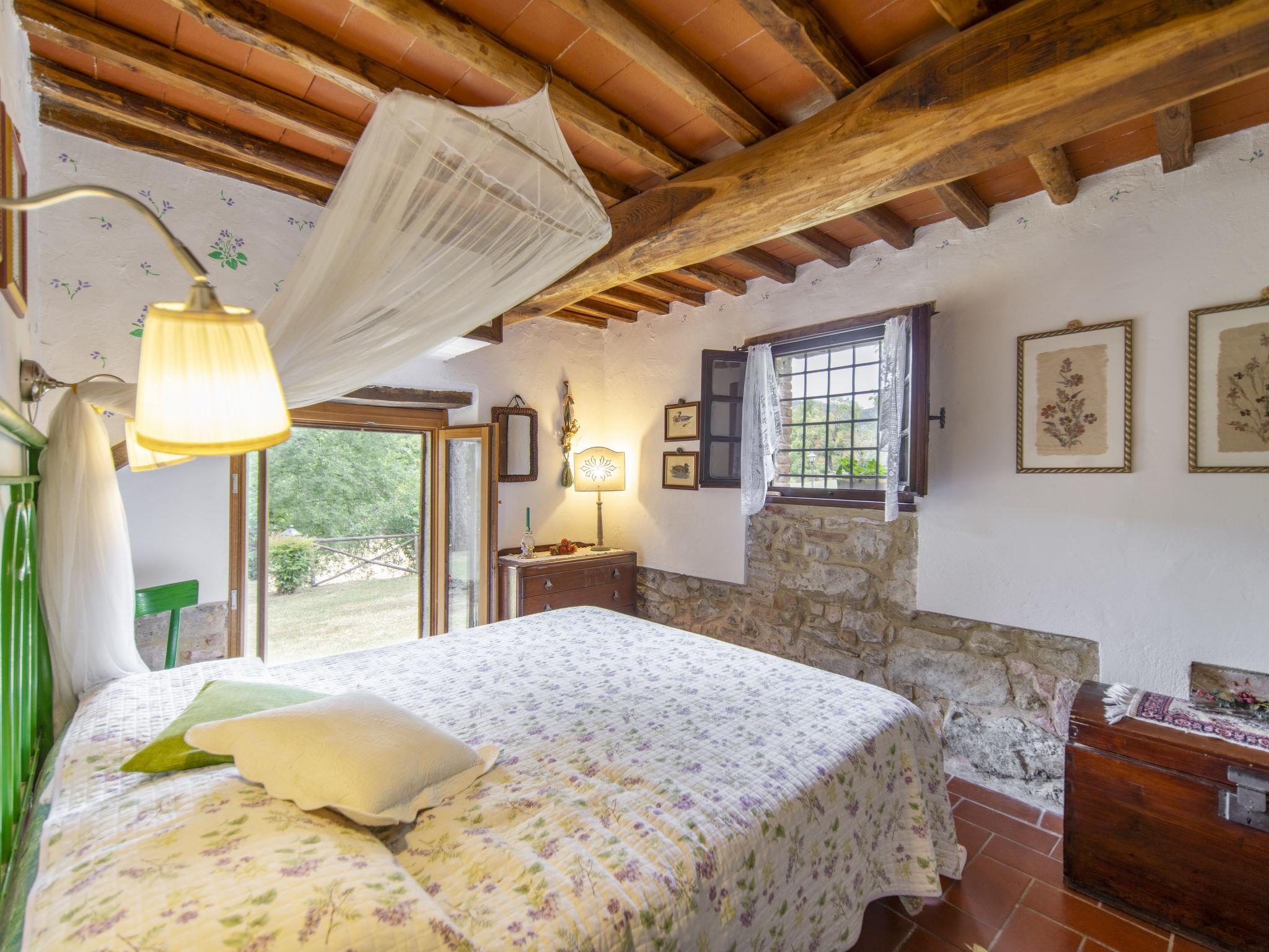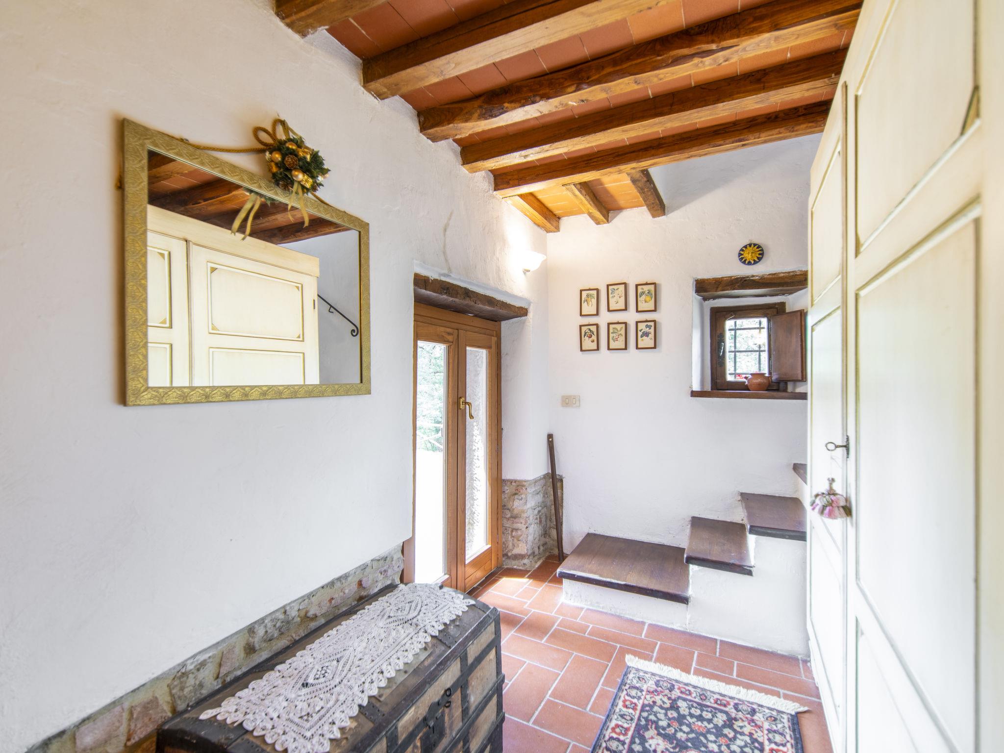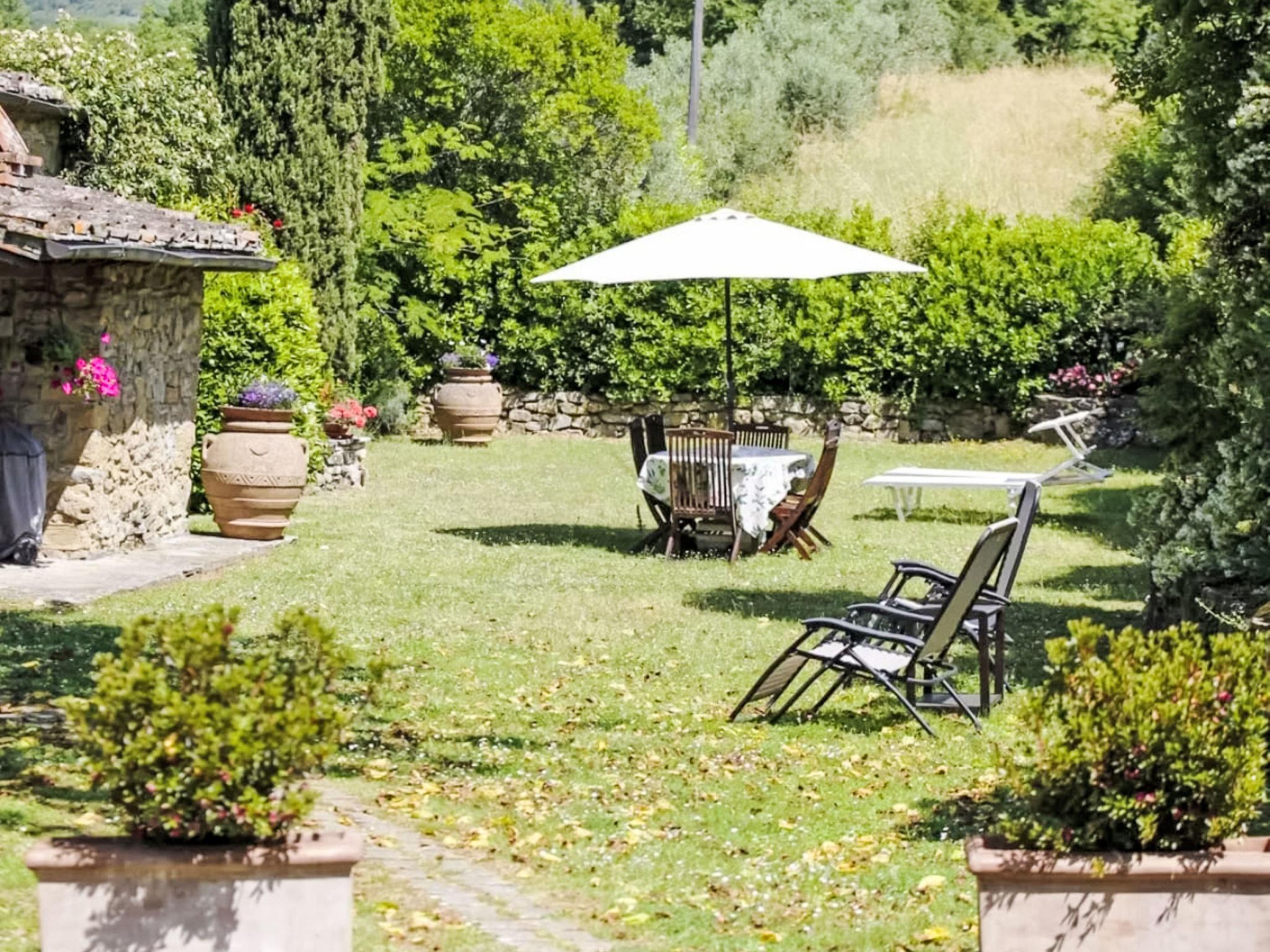 Lamone 1 km from Ambra: Characteristic farmhouse in a quiet location, located in an area of castles (Cennina, Lupinari, Gargonza) with panoramic views of the typical Tuscan countryside. Ideal for those seeking absolute relaxation but also for those who love the wild nature and make excursions to the famous Tuscan art cities, finding the house in the center of the Florence-Siena-Arezzo cultural triangle. The property is furnished with typical Tuscan furniture. Very large and well equipped outdoor areas for outdoor dining. Very old, child friendly, cosy country house "Il Lamone", surrounded by trees and meadows. 30 km from the centre of Arezzo, 35 km from the centre of Siena, 60 km from the centre of Firenze, in a secluded, quiet, sunny position, in the countryside. For shared use: property 4 ha. Private: property, large garden 2 ha, swimming pool (above ground) (7 x 3 m, depth 125 - 125 cm, seasonal availability: 27.Apr. - 30.Sep.). Garden furniture, barbecue, pool maintenance by the owner/gardener. In the house: with TV, central heating system, washing machine, heating available only from 01.Nov. - 15.Apr.. Room cleaning on request (extra). Motor access to the house. Parking at the house. Shop, grocery, restaurant 800 m, bus stop "Ambra" 2 km, railway station "Bucine" 9 km. Tennis 4 km, riding stable 5 km. Please note: car recommended.