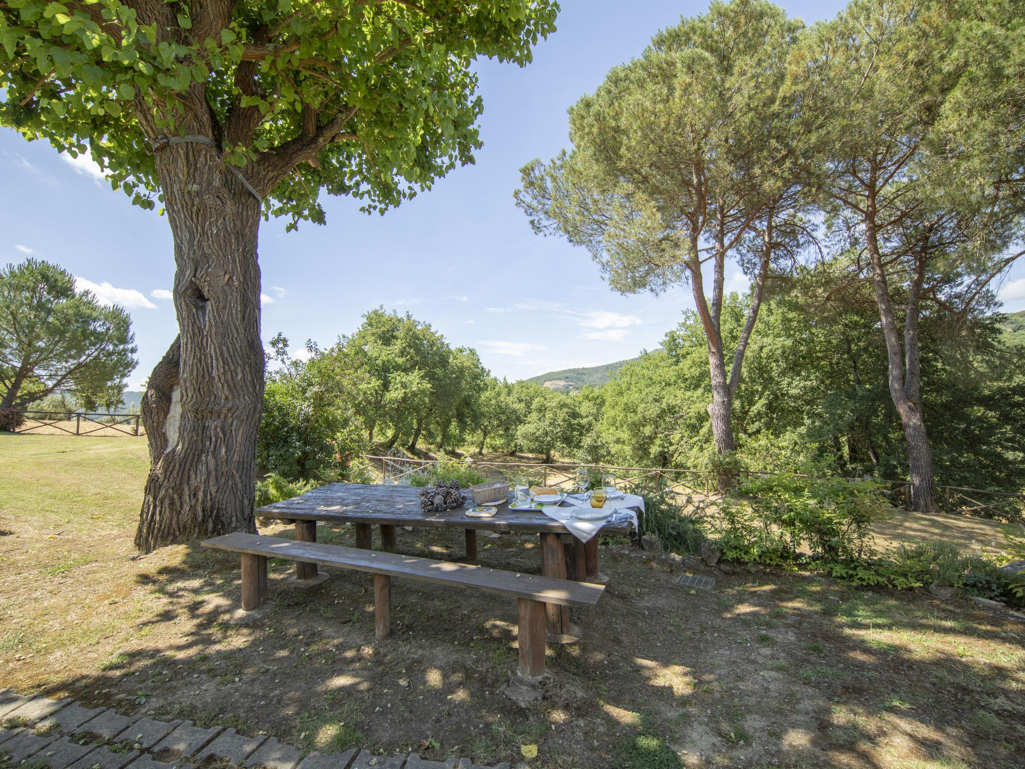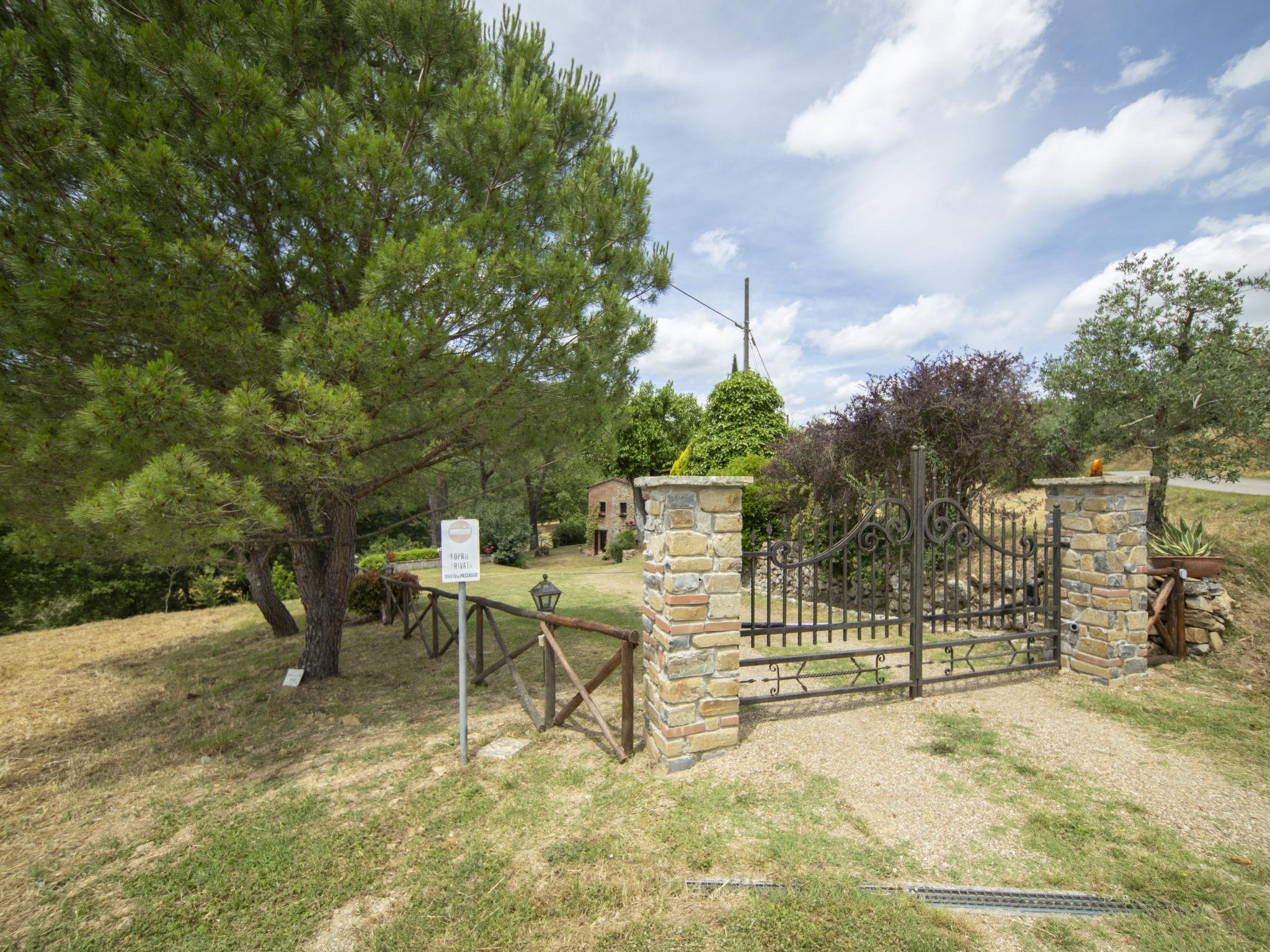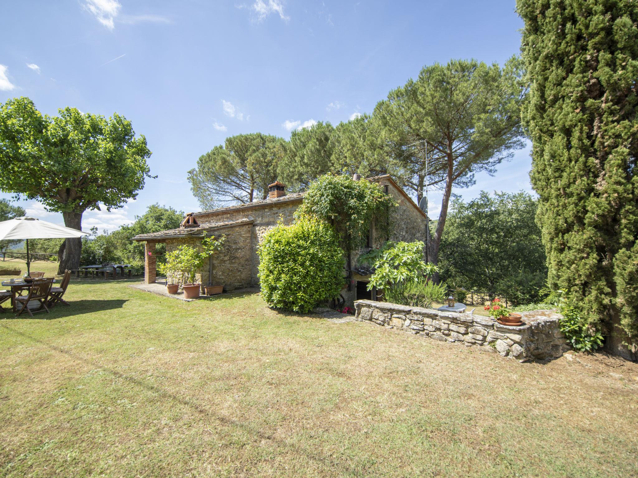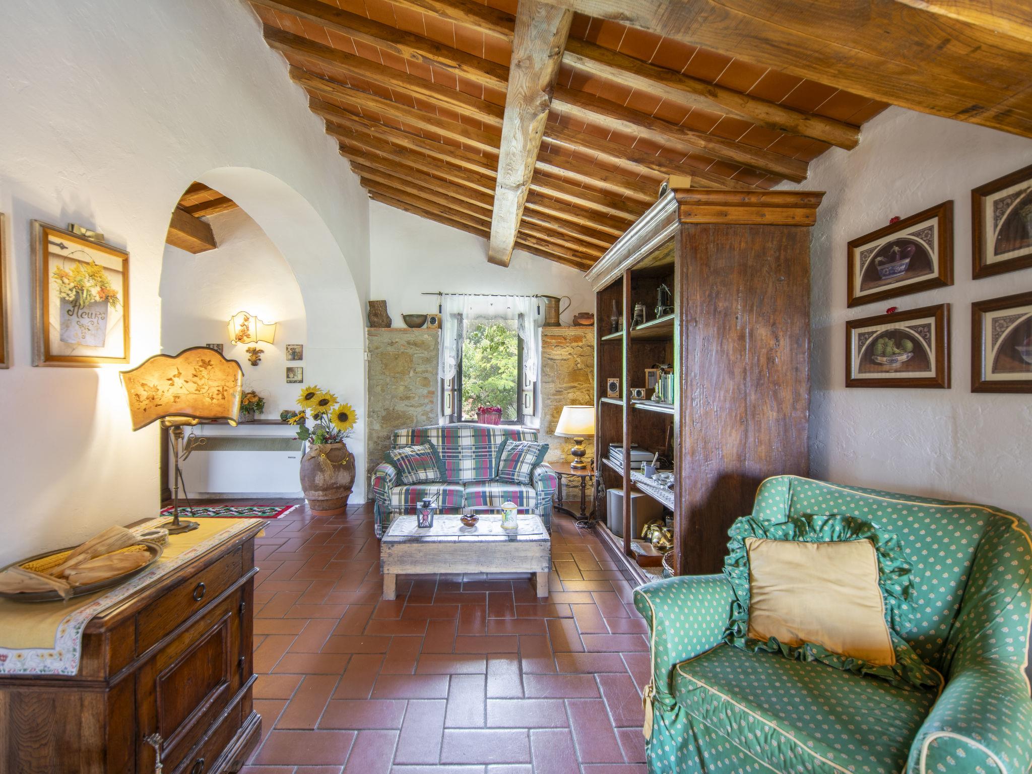 Lamone 1 km from Ambra: Characteristic farmhouse in a quiet location, located in an area of castles (Cennina, Lupinari, Gargonza) with panoramic views of the typical Tuscan countryside. Ideal for those seeking absolute relaxation but also for those who love the wild nature and make excursions to the famous Tuscan art cities, finding the house in the center of the Florence-Siena-Arezzo cultural triangle. The property is furnished with typical Tuscan furniture. Very large and well equipped outdoor areas for outdoor dining. Very old, child friendly, cosy country house "Il Lamone", surrounded by trees and meadows. 30 km from the centre of Arezzo, 35 km from the centre of Siena, 60 km from the centre of Firenze, in a secluded, quiet, sunny position, in the countryside. For shared use: property 4 ha. Private: property, large garden 2 ha, swimming pool (above ground) (7 x 3 m, depth 125 - 125 cm, seasonal availability: 27.Apr. - 30.Sep.). Garden furniture, barbecue, pool maintenance by the owner/gardener. In the house: with TV, central heating system, washing machine, heating available only from 01.Nov. - 15.Apr.. Room cleaning on request (extra). Motor access to the house. Parking at the house. Shop, grocery, restaurant 800 m, bus stop "Ambra" 2 km, railway station "Bucine" 9 km. Tennis 4 km, riding stable 5 km. Please note: car recommended.