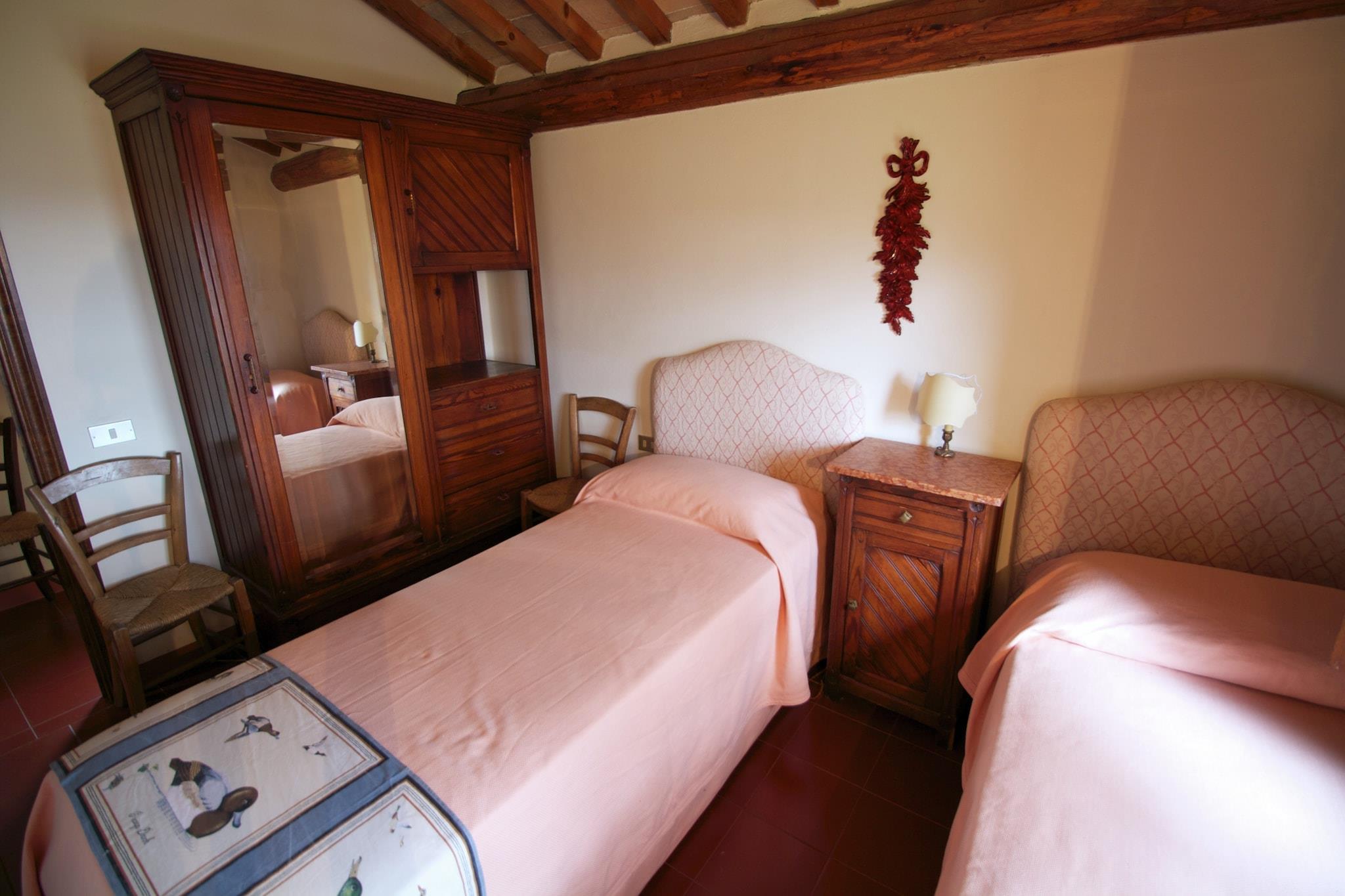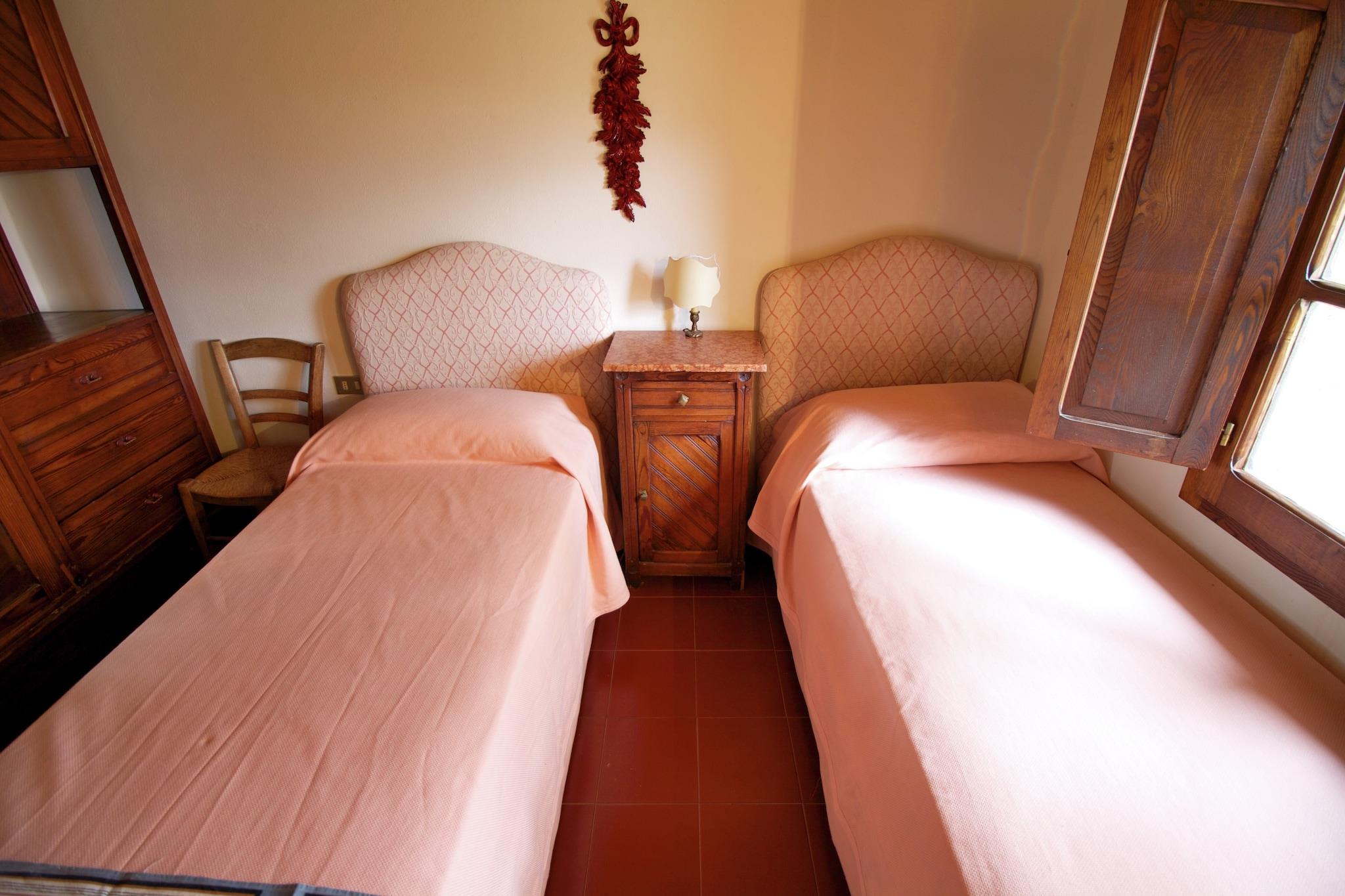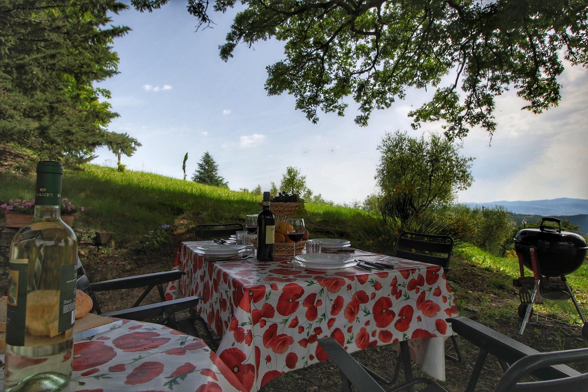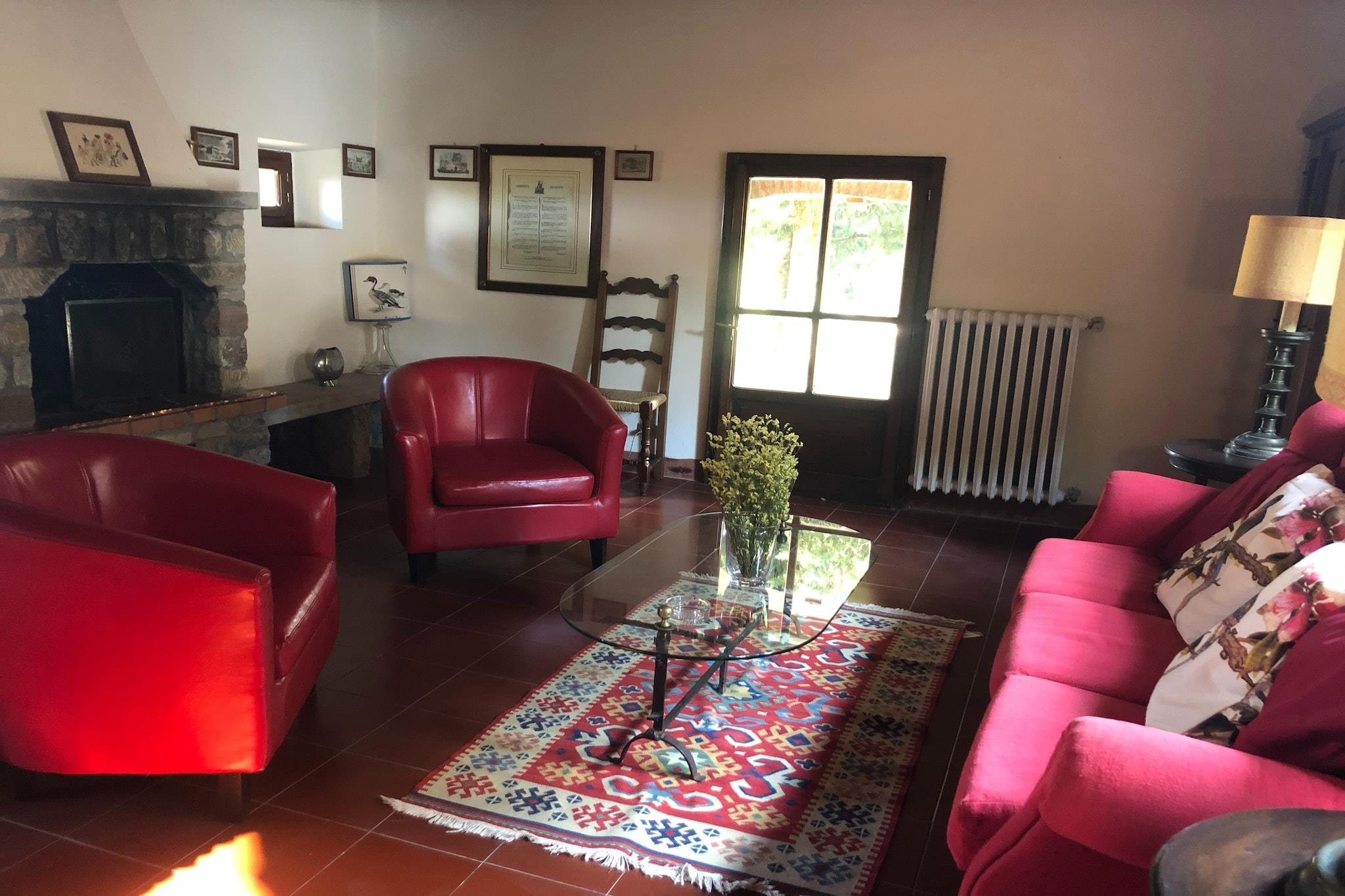 Hvorfor blive her? Dette charmerende toscanske sommerhus i Anghiari er beliggende i bakkerne. Der er en privat have og en fælles swimmingpool for at nyde udendørslivet til sit bedste. Det ville være velegnet til en lille familie eller gruppe. Ting at lave omkring Den nærliggende skov er fantastisk, hvis du er til eventyr. Der er mange stier i skoven til vandre-, vandre- og cykelture. Du kan også udforske klostre og slotte. Tilbring en dag i naturen med at se solnedgange eller landskaber ved søen, kun 10 km væk. Hvad kan man forvente af rummet Udbredt på jorden og første sal har denne hytte centralvarme og en pejs for et behageligt ophold. En privat møbleret have er på plads til at nyde en grillaften. Mere til dit ophold Tilgængelig offentlig transport er 300 m væk. Perugia Lufthavn ligger 73 km derfra.