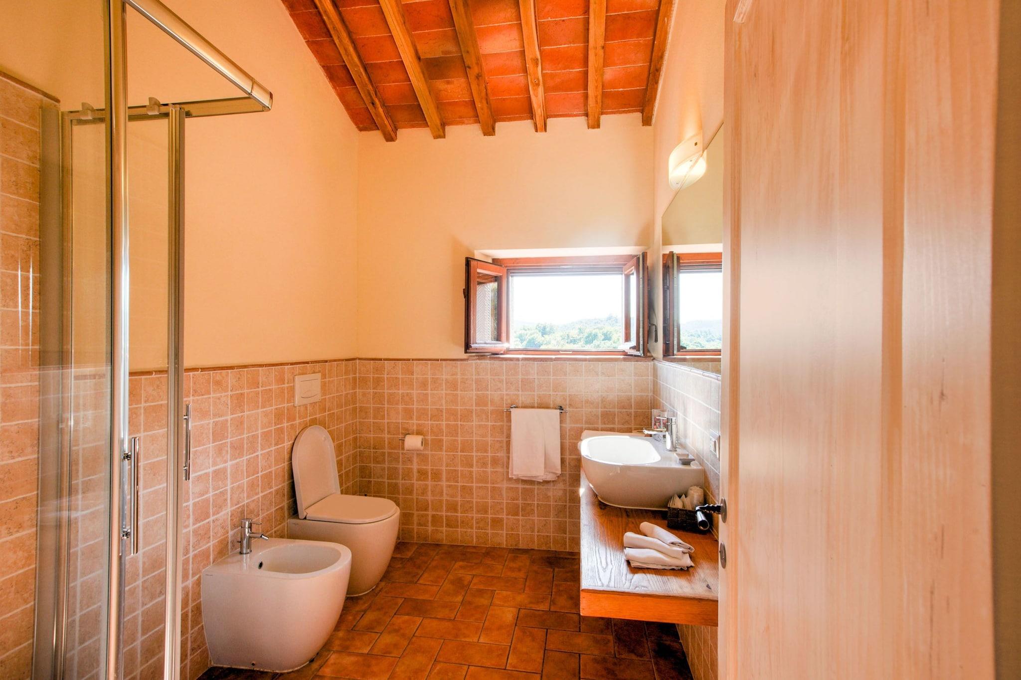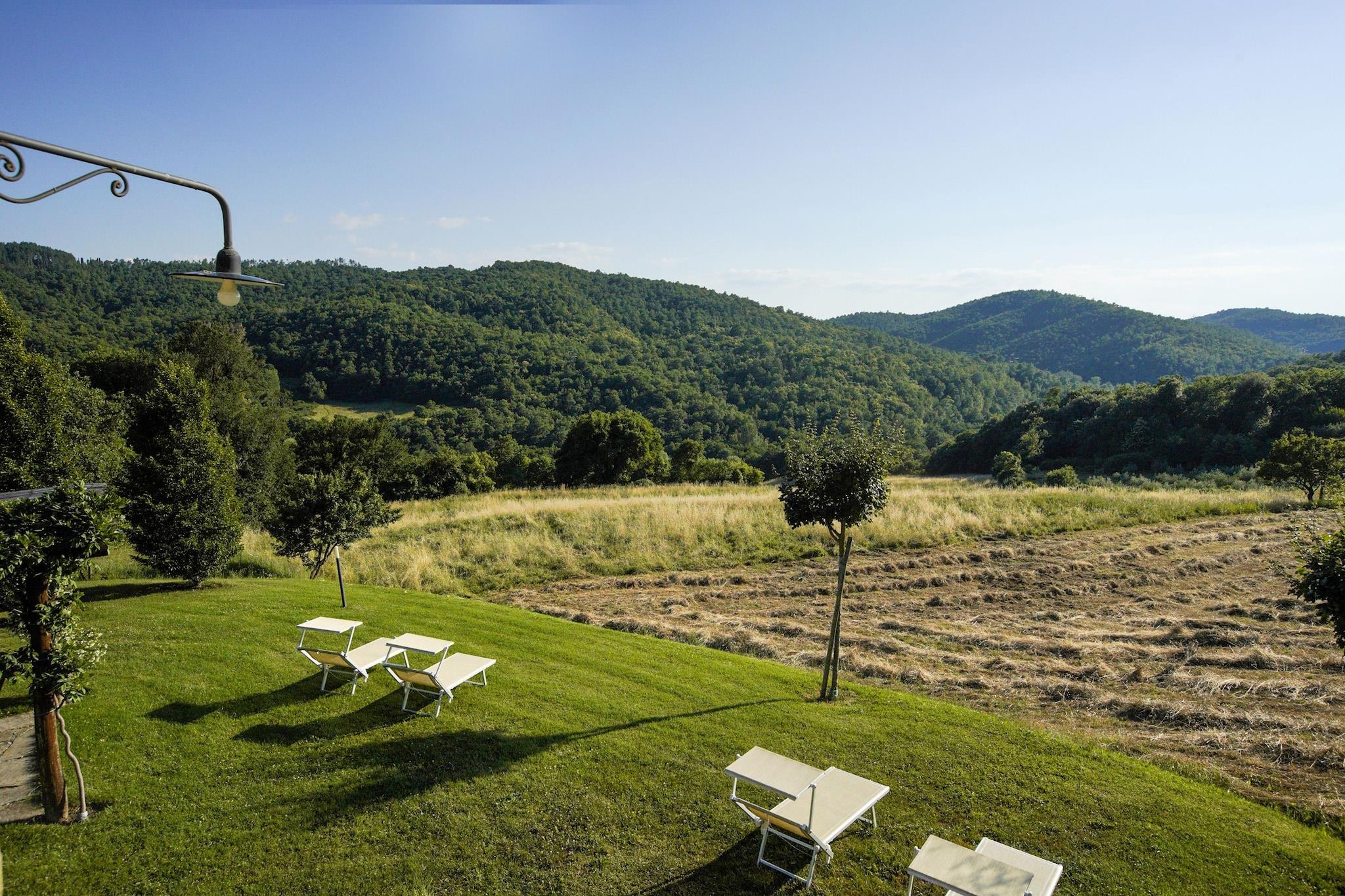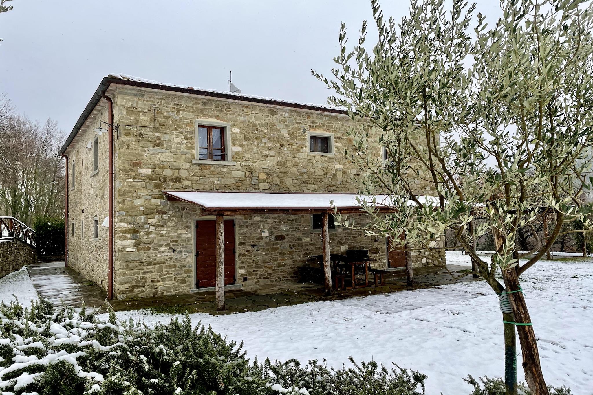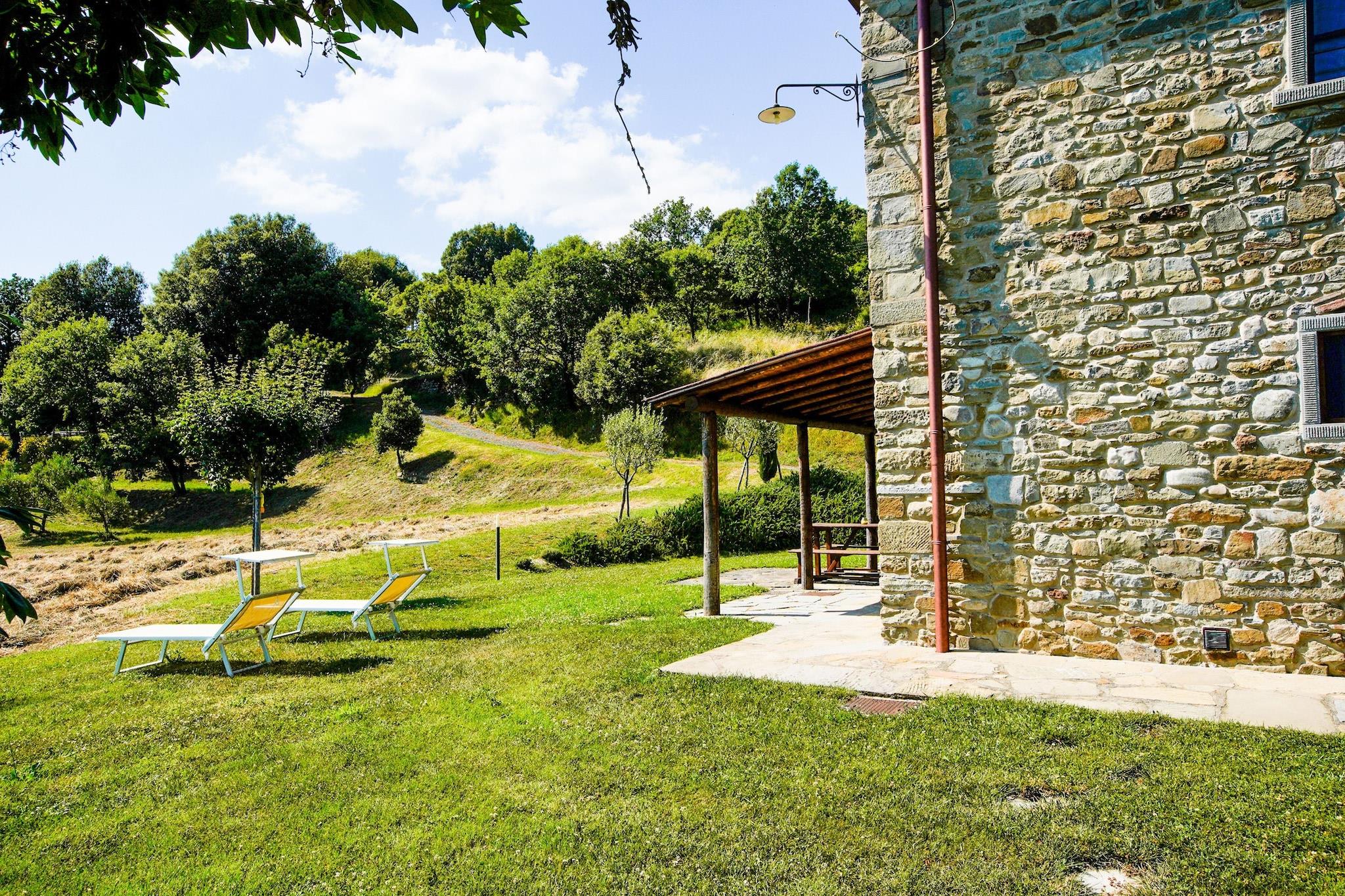 Denne smukke bondegård har 1 soveværelse og kan rumme 4 personer. Dette kæledyrsvenlige hus, ideelt til en familie, har WiFi, parkering og en swimmingpool._x000D_ _x000D_ Det traditionelle stenhus ligger midt i naturen og vil give gæsterne en oplevelse af fred og ro. Stuehuset ligger midt i skoven. Der er mange museer i Anghiari, som ligger en kort køretur fra stuehuset. Caprese Michelangelos bymidte ligger 10 km fra huset, hvis du planlægger en dagstur. Restauranter ligger 4 km væk, og almindelige forsyninger er 8 km væk._x000D_ _x000D_ Stuehuset har havemøbler, satellit-tv og børneseng tilbydes efter anmodning til gæsterne._x000D_ _x000D_ Den nærmeste lufthavn i Perugia ligger 85 km fra bondegården.