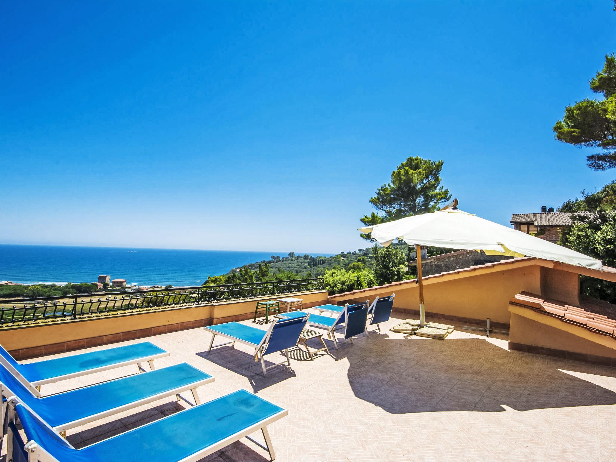 Villa Von Salis is located in Ansedonia, a splendid town on a rocky ledge above the clear waters of the Argentario coast. The town of Ansedonia is in a quiet, sunny position on a hill 800 m from the sea. The villa is surrounded by typical Mediterranean vegetation and a garden of pines and holm oaks. Stunning sea view, 10 minutes on foot you reach the famous Tagliata beach. Elegantly furnished with taste and well equipped: heating, telephone, external laundry with washing machine. Parking for 3 cars near the property, with the possibility of charging electric cars with a CEE16 blue plug, 230V, 16A (energy cost to be paid on the spot). The garden with terrace is ideal for outdoor dining. A large solarium on the roof overlooking the sea. Sport: tennis, horseback riding, walks along the beach or in the pine forest, swimming, sailing and windsurfing. Villa "Von Salis". In the resort Ansedonia, in a quiet, sunny, elevated position, 800 m from the sea. Private: garden 2'000 m2 (fenced) with wildlife garden and flowers. Outdoor shower, garden furniture, barbecue. In the house: internet access, WiFi, sun terrace, washing machine. Room cleaning daily on request (extra). Parking (for 3 cars) on the premises. Grocery 1 km, restaurant 1 km, railway station 8 km, sandy beach 800 m. Golf course (18 hole) 15 km, tennis 3 km, riding stable 1 km. Nearby attractions: Orbetello 10 km, Porto Ercole 14 km, Porto S. Stefano 18 km, Capalbio 15 km.