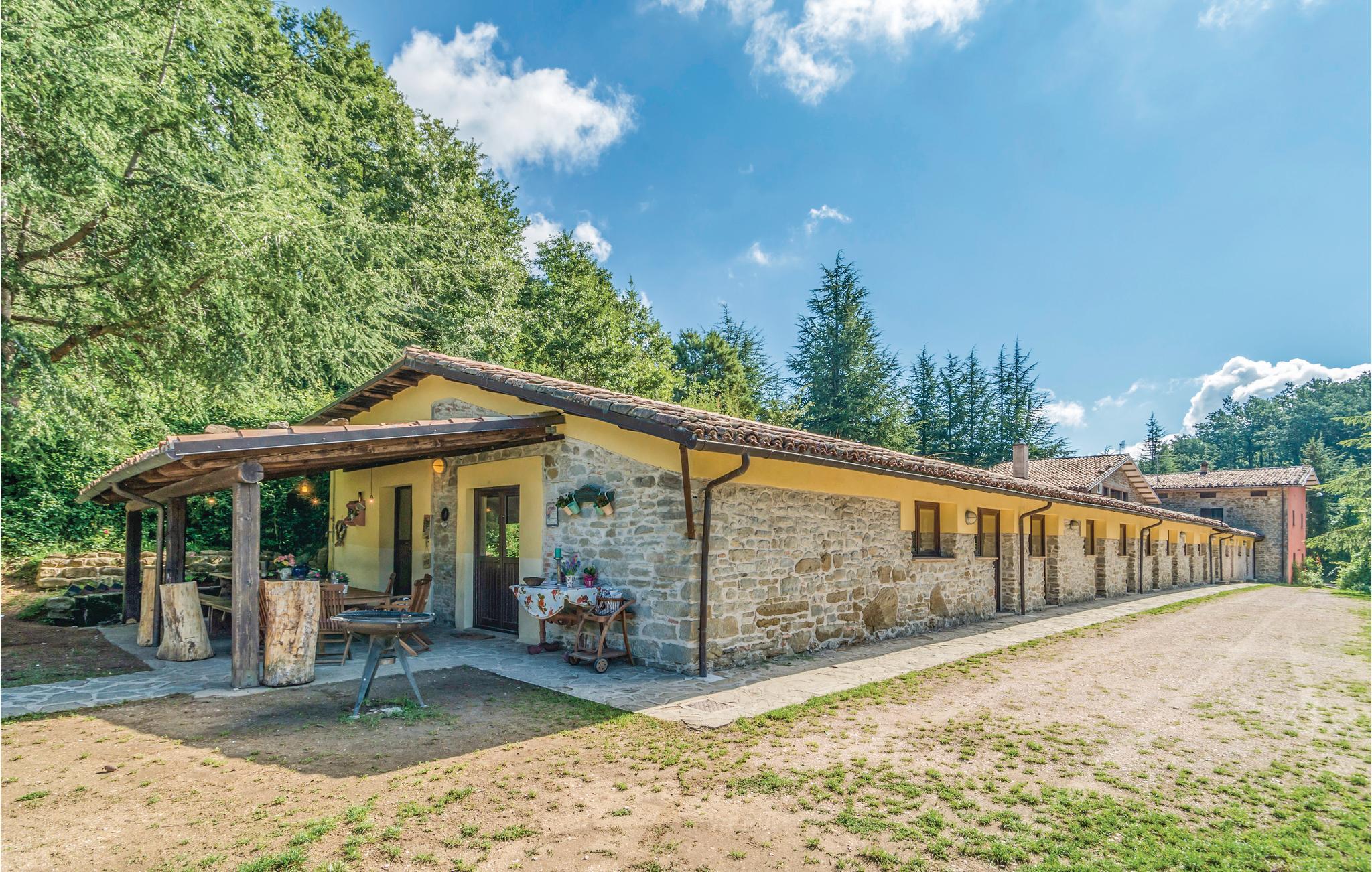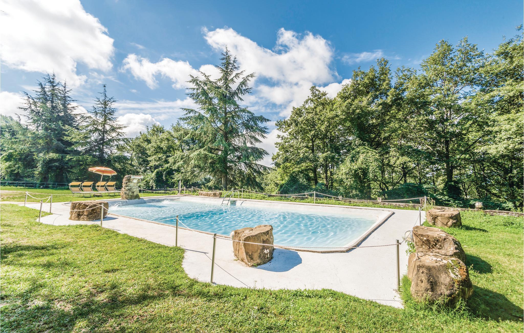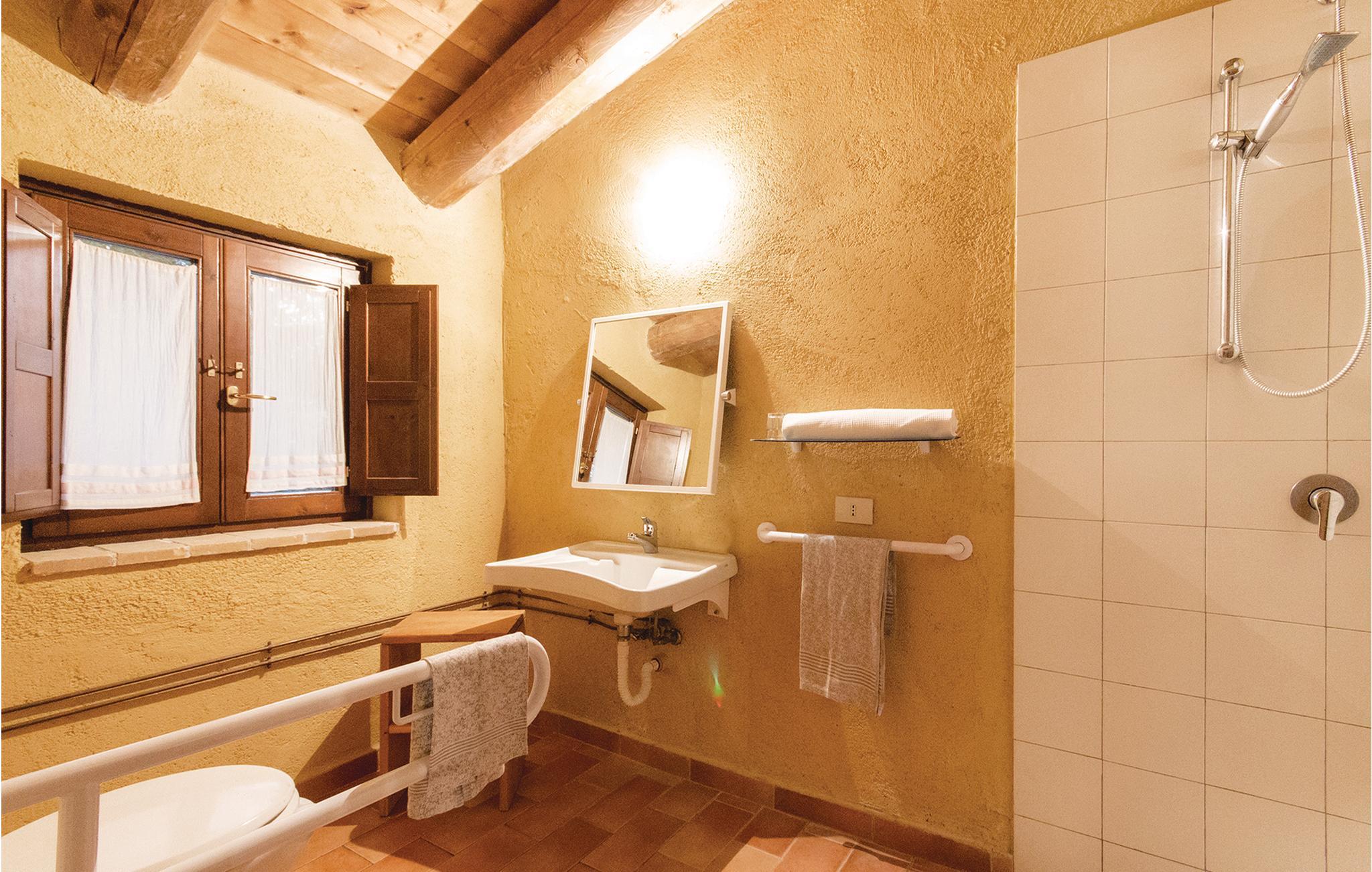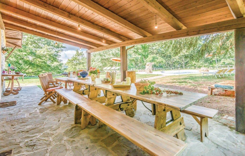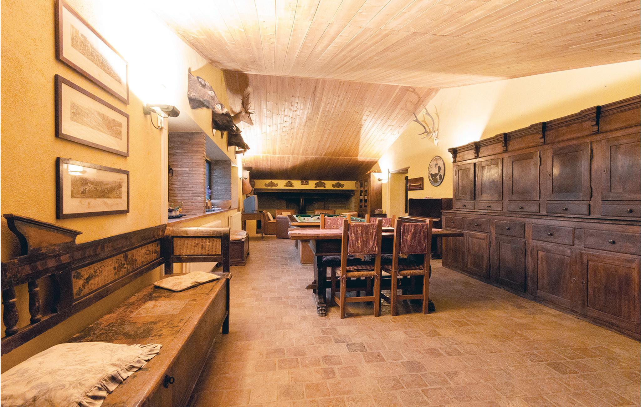 Dette hus ligger på en stor privat grund centralt i Apenninerbjergene er især velegnet til en stor familie eller vennegruppe. Afstande: byen Apecchio 6 km, den gamle by Città di Castello 27 km, Gubbio 45 km, Fano (havet) 70 km. Området er helt ideelt til jer, der gerne vil opleve og udforske Toscana, Umbrien og de mange seværdigheder i regionen. I har et stort grønt område og en swimmingpool til rådighed. Huset har en nybygget fløj i stueplan med uafhængige værelser med badeværelse, alle udelukkende med adgang udefra, et stort, professionelt udstyret køkken i forbindelse med spisepladsen, udgang til en stor overdækket terrasse samt et badeværelse med bruser. I den ældre del på 1. sal er der en stor opholdsstue (ca. 70 m²) med kamin og billard. Enkelte, ubeboede værelser er ikke tilgængelige. De venlige husejere er også forpagtere af et wellnesscenter som ligger 20 km fra huset. Her er termalbad, sportsbaner og fagpersonale. På forespørgsel og mod betaling på stedet: særpriser til wellnesscenteret, kok, rideundervisning, vandreture og pilateskurser.