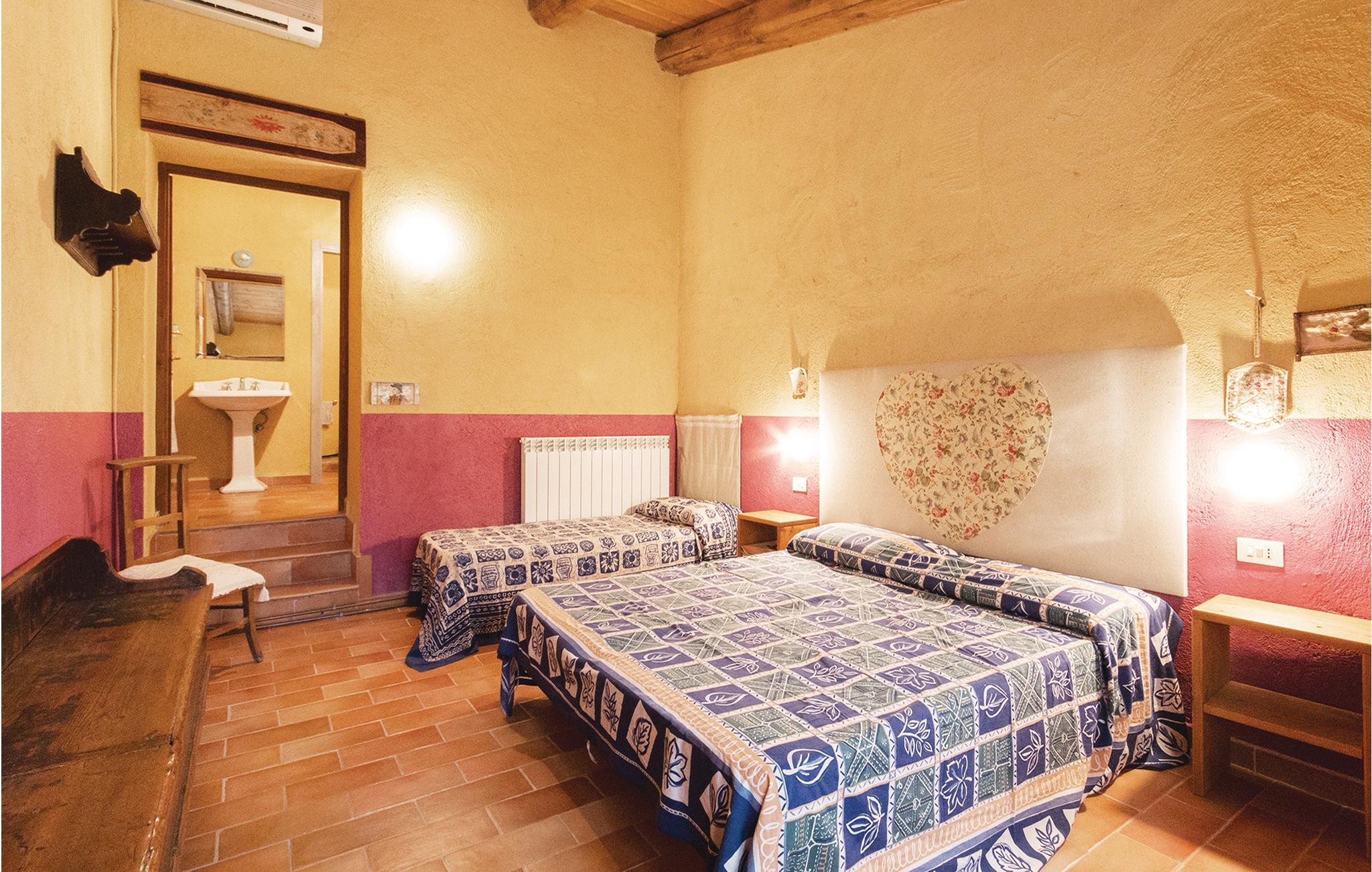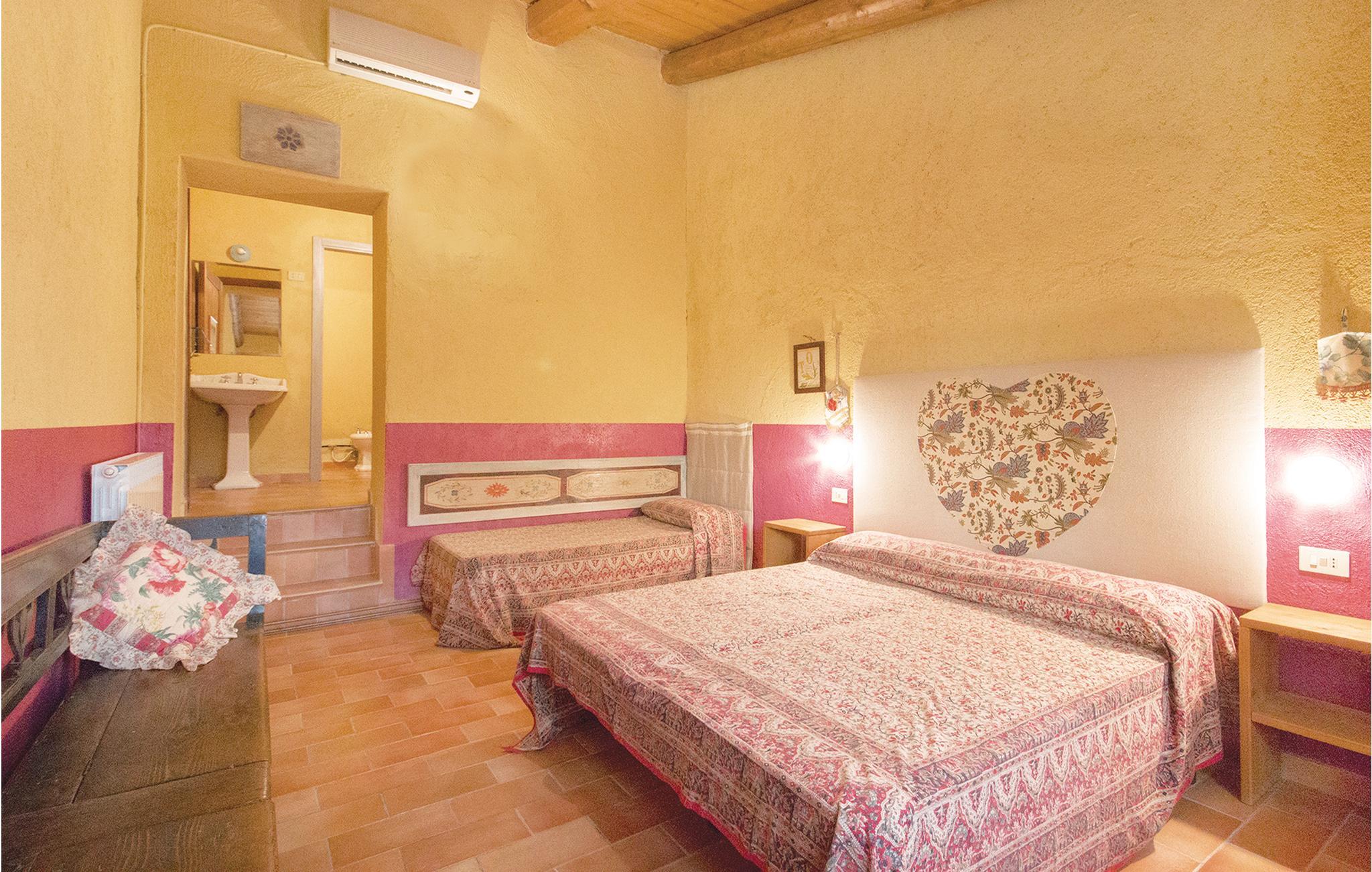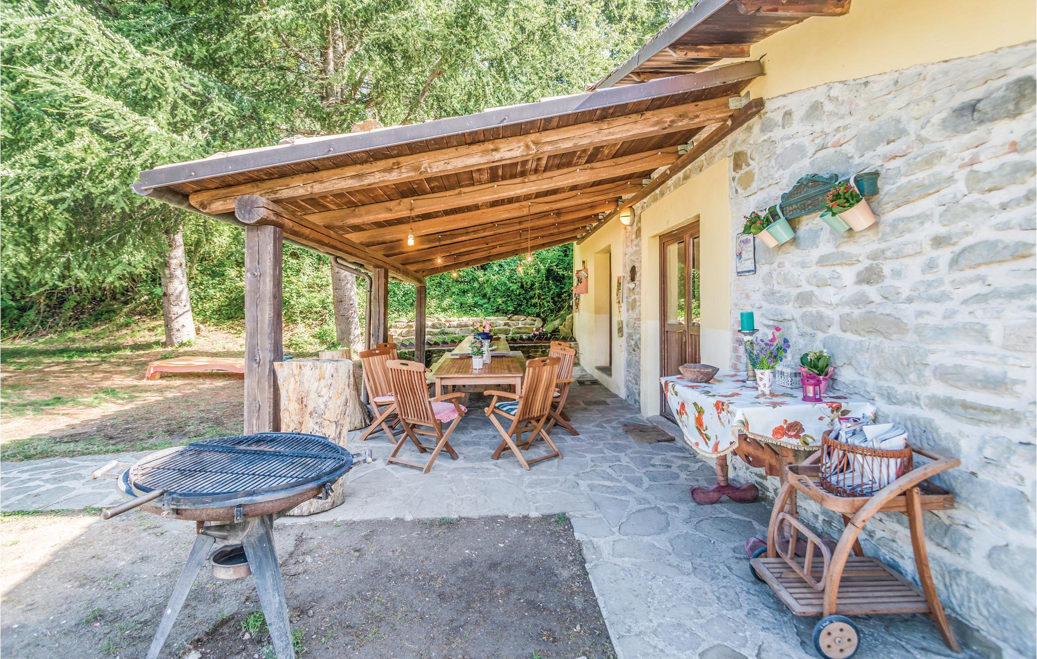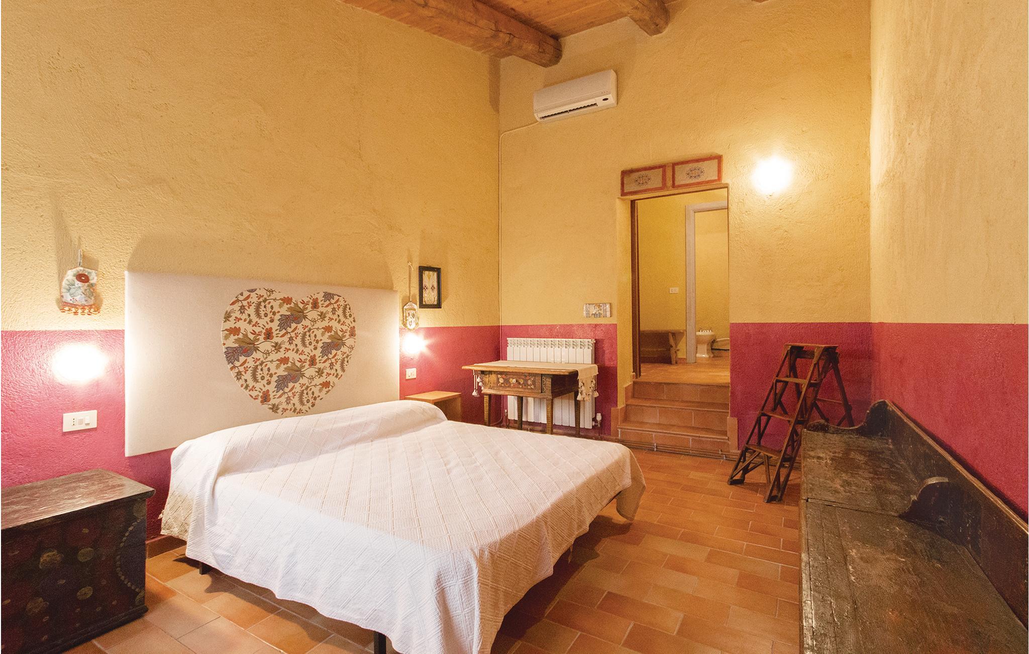 Dette hus ligger på en stor privat grund centralt i Apenninerbjergene er især velegnet til en stor familie eller vennegruppe. Afstande: byen Apecchio 6 km, den gamle by Città di Castello 27 km, Gubbio 45 km, Fano (havet) 70 km. Området er helt ideelt til jer, der gerne vil opleve og udforske Toscana, Umbrien og de mange seværdigheder i regionen. I har et stort grønt område og en swimmingpool til rådighed. Huset har en nybygget fløj i stueplan med uafhængige værelser med badeværelse, alle udelukkende med adgang udefra, et stort, professionelt udstyret køkken i forbindelse med spisepladsen, udgang til en stor overdækket terrasse samt et badeværelse med bruser. I den ældre del på 1. sal er der en stor opholdsstue (ca. 70 m²) med kamin og billard. Enkelte, ubeboede værelser er ikke tilgængelige. De venlige husejere er også forpagtere af et wellnesscenter som ligger 20 km fra huset. Her er termalbad, sportsbaner og fagpersonale. På forespørgsel og mod betaling på stedet: særpriser til wellnesscenteret, kok, rideundervisning, vandreture og pilateskurser.