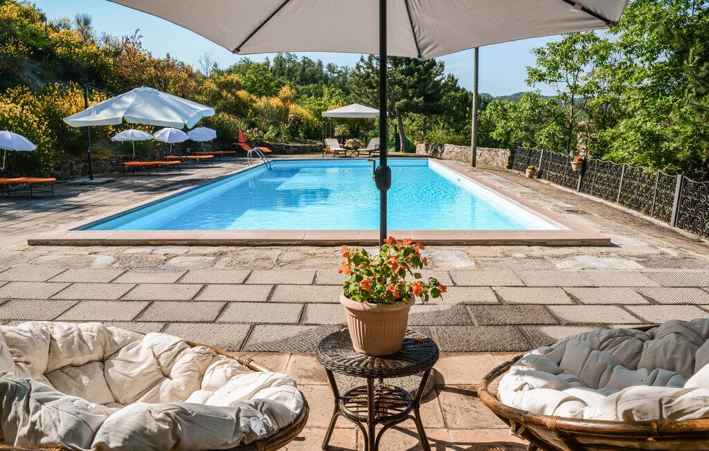 Dette rustikke landhus er bygget i natursten, har egen pool og er fordelt på tre etager. Det ligger i et roligt bakkelandskab bare 5 km fra Apecchio. Det specielle for huset er den store stue med kamin, den skønne terrasse hvor grillen står, den meget store have og poolområdet med panoramaudsigt. Ideelt hus til en afslappet ferie, I kan vandre til Monte Nerone (1.525 moh) og til udflugter til Urbino, Gubbio og Città di Castello (i en omkreds af 30-40 km). Planlæg en badedag i Pesaro eller Fano ved Adriaterhavskysten (ca. 75 km). Sidste del af vejen op til huset er en grusvej.