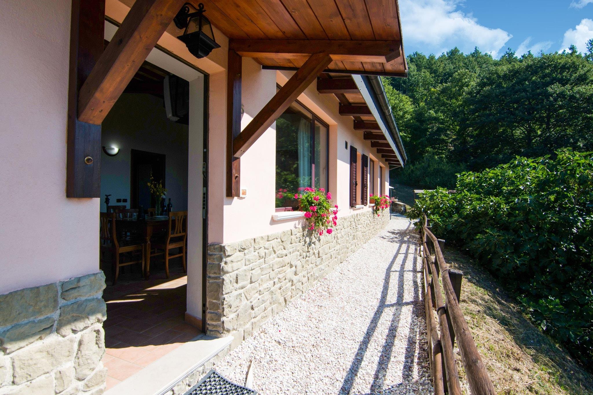 Denne landlige agriturismo med pool og jacuzzi er 880 meter over havets overflade i Apenninerne nær Monte Nerone og Catria. Der er i alt 6 lejligheder med rustik og landlig indretning. Fra den levende køkken i Amarena lejlighed har du en smuk udsigt over omgivelserne. Swimmingpoolen kan dækkes om forår og efterår, så det er også ideelt at tage en dukkert i swimmingpoolen i maj og september. På grund af beliggenheden er temperaturen meget behagelig i de varme sommermåneder. Der er en fælles grill til grillning af kød og grøntsager og på terrassen kan du nyde aftensmad med et glas lokal vin. Mountainbikes er tilgængelige for gæster i agriturismo . Området er meget velegnet, og der er mange grusveje til et eventyr cykeltur. Det omkringliggende område består af skove, enger og bjerge. Fra agriturismo kan du besøge forskellige byer, herunder Urbino, Gubbio og Città di Castello, men også en fridag fra havet.