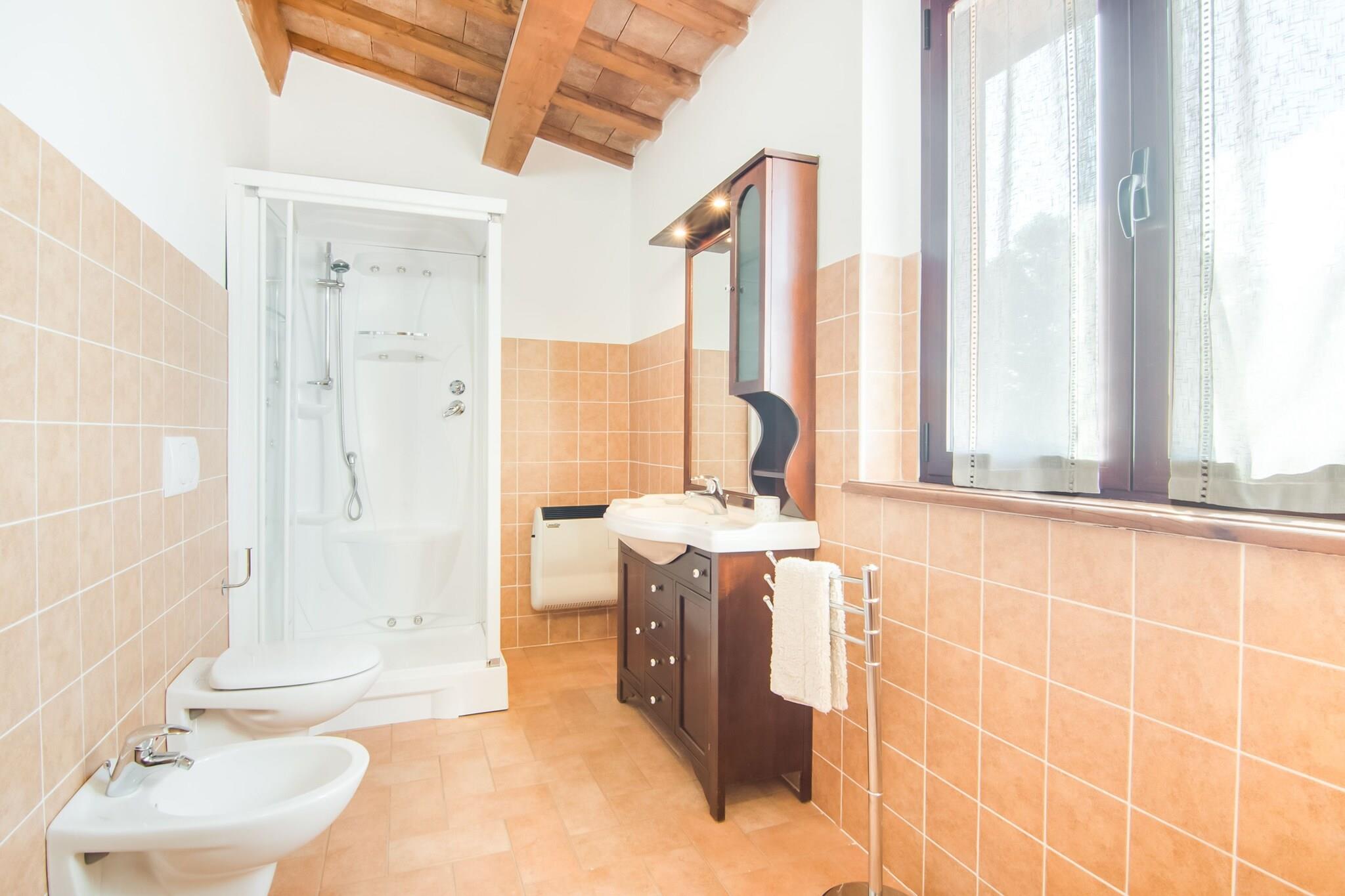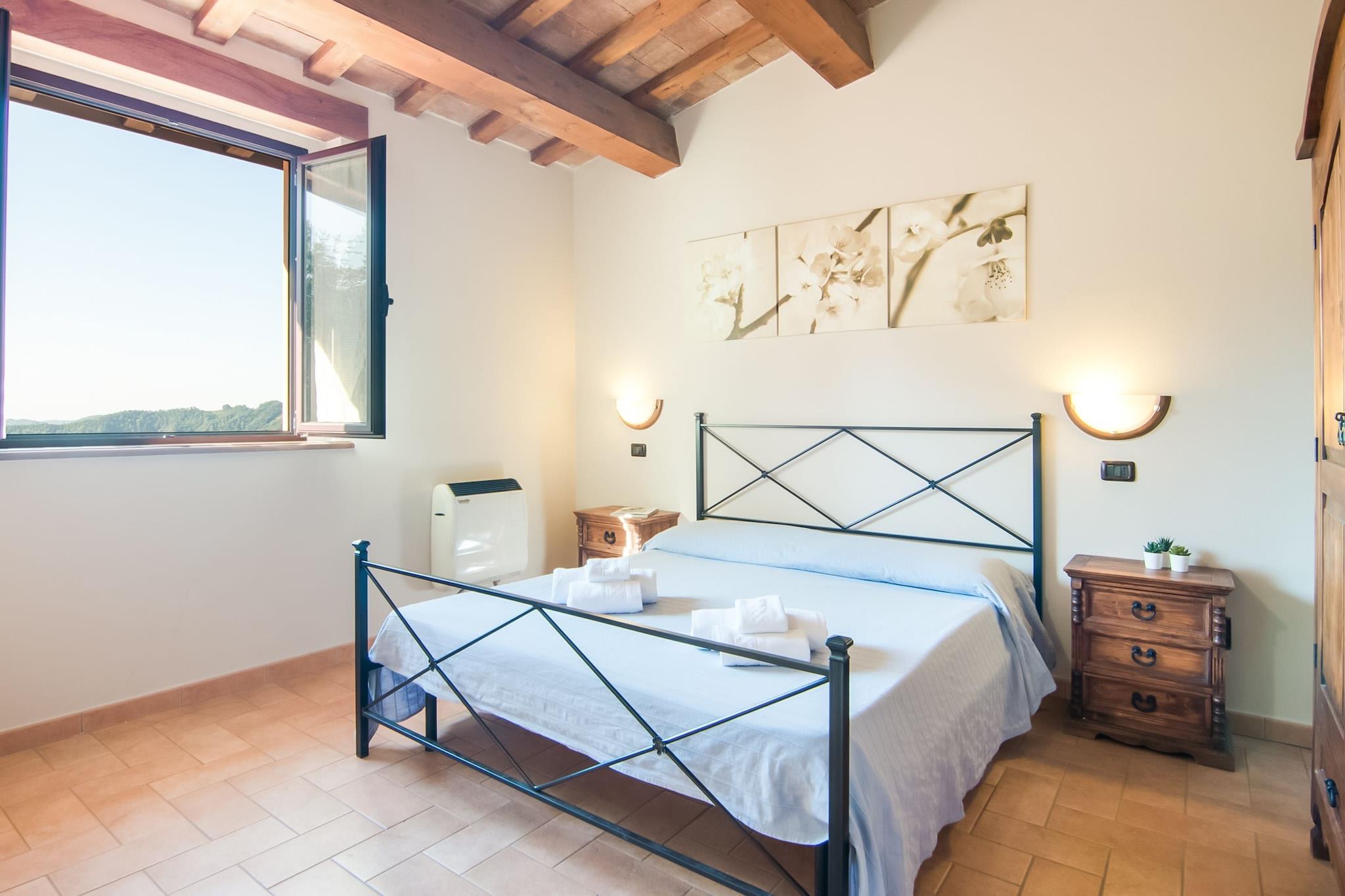 Beliggende højt i Appenninernes bakker i 880 meters højde, tilbyder dette fredfyldte bondehus en autentisk landskabsoplevelse nær Monte Nerone og Monte Catria. Porcini-lejligheden, der ligger i et kærligt restaureret agriturismo, inviterer dig til at slappe af med varm rustik charme og moderne komfort, perfekt til en fredelig familieferie eller romantisk oase. Træd ind i et hyggeligt køkken-alrum med en fantastisk udsigt over det frodige landskab. Udenfor kan du nyde din egen private terrasse med udendørs siddepladser, mens den store fælles have har en pool (overdækket om foråret og efteråret), et spabad til ultimativ afslapning og en legeplads. Der er også en grill til afslappende måltider under åben himmel. Cykler og elcykler (mod et ekstra gebyr) tilbyder eventyrlystne den perfekte måde at udforske områdets naturskønne stier på. Oplev kulturskatte som Urbino, Gubbio og Città di Castello, der ligger kun en kort køretur væk, eller tag dagsture til kysten. Nærliggende attraktioner omfatter de fantastiske Frasassi-huler og Sentiero Italia, Europas længste vandrerute. Vær opmærksom på, at vejret i Appenninerne kan skifte hurtigt, især om vinteren. Jeres værter er altid til rådighed for at hjælpe. Adresse: Strada Provinciale Caselle 100, 61042 Apecchio, Marche Højdepunkter: Have, privat terrasse, overdækket fælles pool (12x6 m), spabad (ekstra), cykler, elcykler (ekstra), legeplads, grill, fælles vaskemaskine, parkering.
