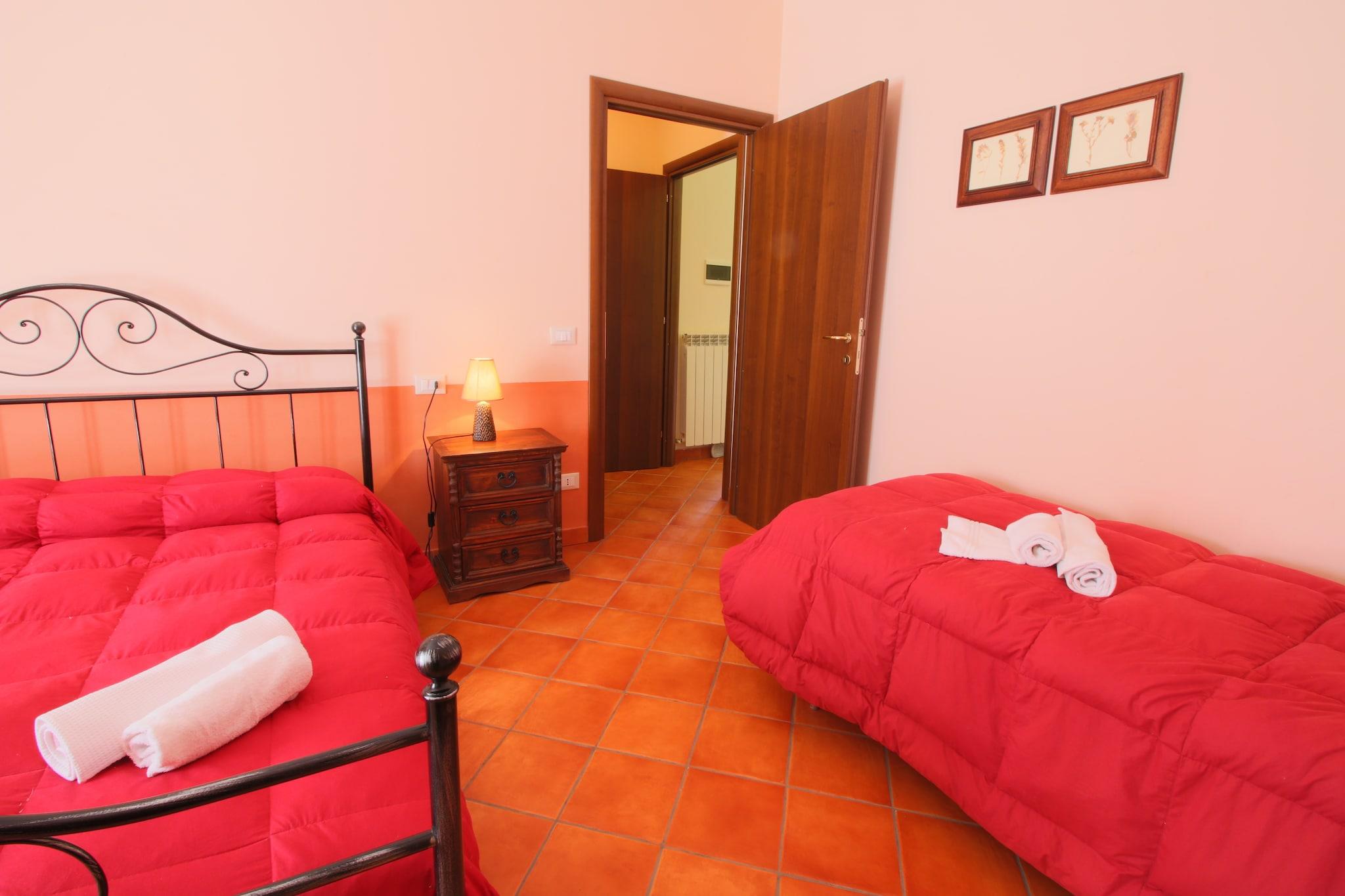 På denne grund er der 3 renoverede huse med 11 lejligheder. Hver lejlighed har sin egen terrasse med havemøbler. Husene ligger langt fra hinanden, og derfor er der masser af privatliv. Lejlighed Rosa Rossa ligger i det rustikke hus ved siden af den smukke hovedbygning. Den har plads til 5 personer. Ejendommen ligger på grænsen mellem Umbrien og Marche i Candigliano-dalen, mellem byerne Piobbico, Apecchio, Urbania og Sant'Angelo in Vado. Du kan nemt besøge Urbino, Gubbio, Assisi og Perugia. Du kan også tage på mountainbike eller vandre i bjergene. Lejlighed Rosa Rossa ligger i det rustikke hus 100 m fra poolen. Den har 1 separat soveværelse, og den dobbelte sovesofa i stuen har plads til 2 børn eller 1 voksen. Ved ankomsten får du en flaske vin. Om sommeren arrangeres der en gratis vinsmagning hver uge i hovedhuset. Ejendommen nås via en grusvej på ca. 4 km. Bemærk: Swimmingpoolen er kun åben indtil den 15. september og lukket derefter.