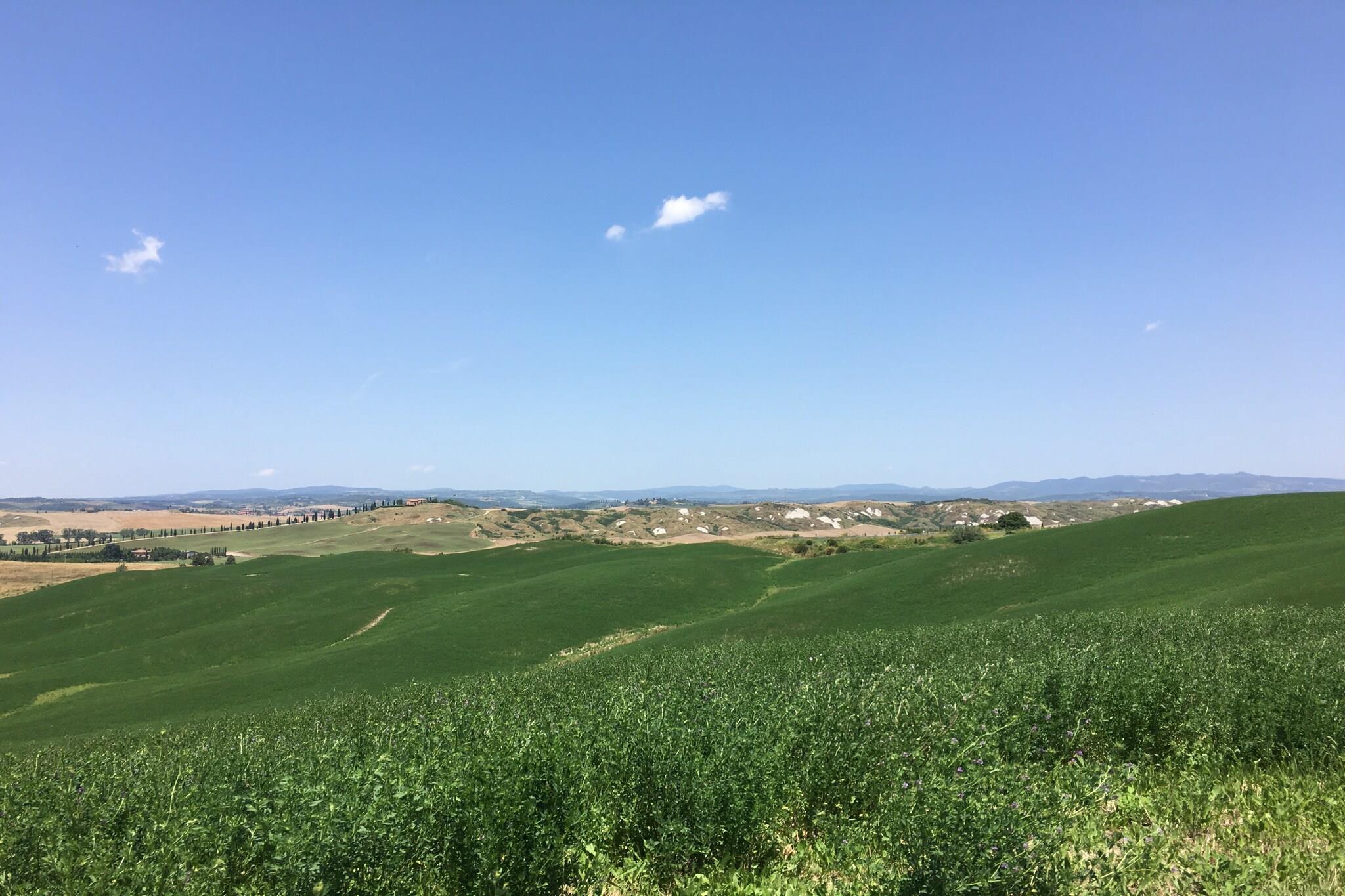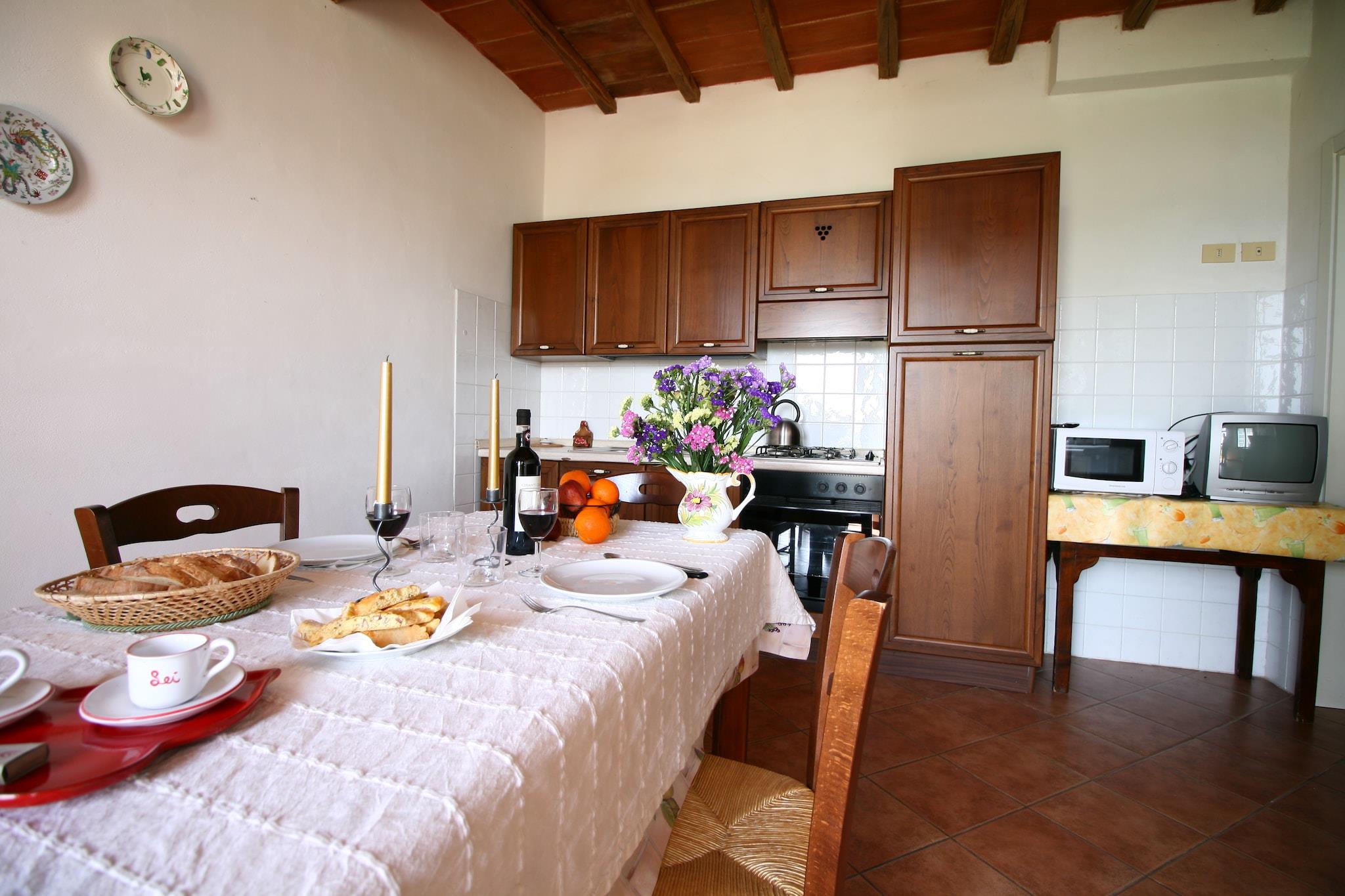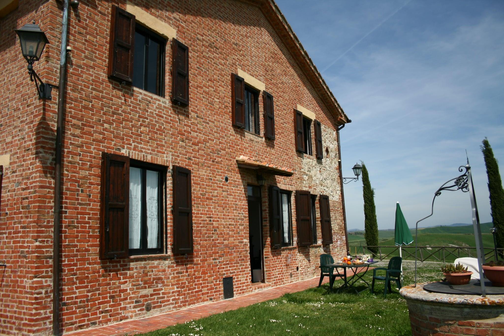 Denne kæledyrsvenlige bondegård ligger i de rolige bakker i Arbia Asciano og tilbyder en hyggelig tilflugtssted for op til fire gæster. Stueetagen har et fuldt udstyret køkken med espressomaskine, ovn, mikroovn og køleskab med fryser, ideel til at tilberede måltider med friske toscanske ingredienser. En indbydende opholds- og spisestue med tv og komfortable siddepladser skaber et afslappende rum, mens to soveværelser - det ene med en dobbeltseng og det andet med to enkeltsenge, sikrer afslappende nætter. Badeværelset har bruser, håndvask, toilet og bidet, med centralvarme overalt for komfort året rundt. Træd udenfor for at nyde den private terrasse og den fælles have, omgivet af skønheden i Toscanas bølgende bakker. Gæsterne kan slappe af ved swimmingpoolen (14 x 7 m, åben juni-september) eller nyde udendørs spisning på grillpladsen. Siena ligger kun 13 km væk, og nærliggende landsbyer som Monteriggioni og San Gimignano byder på charmerende dagsture. Naturelskere vil sætte pris på den naturskønne køretur til Trasimenosøen, 47 km væk, perfekt til en fredelig flugt. Lokale restauranter kun 4 km fra ejendommen serverer klassiske toscanske retter tilberedt med regionale råvarer. Praktisk offentlig transport gør det nemt at udforske, mens nærliggende butikker sikrer adgang til det vigtigste. Uanset om du slapper af ved poolen, nyder rustikke smage eller opdager historiske byer, lover denne bondegård et afslappet og kulturelt rigt ophold.