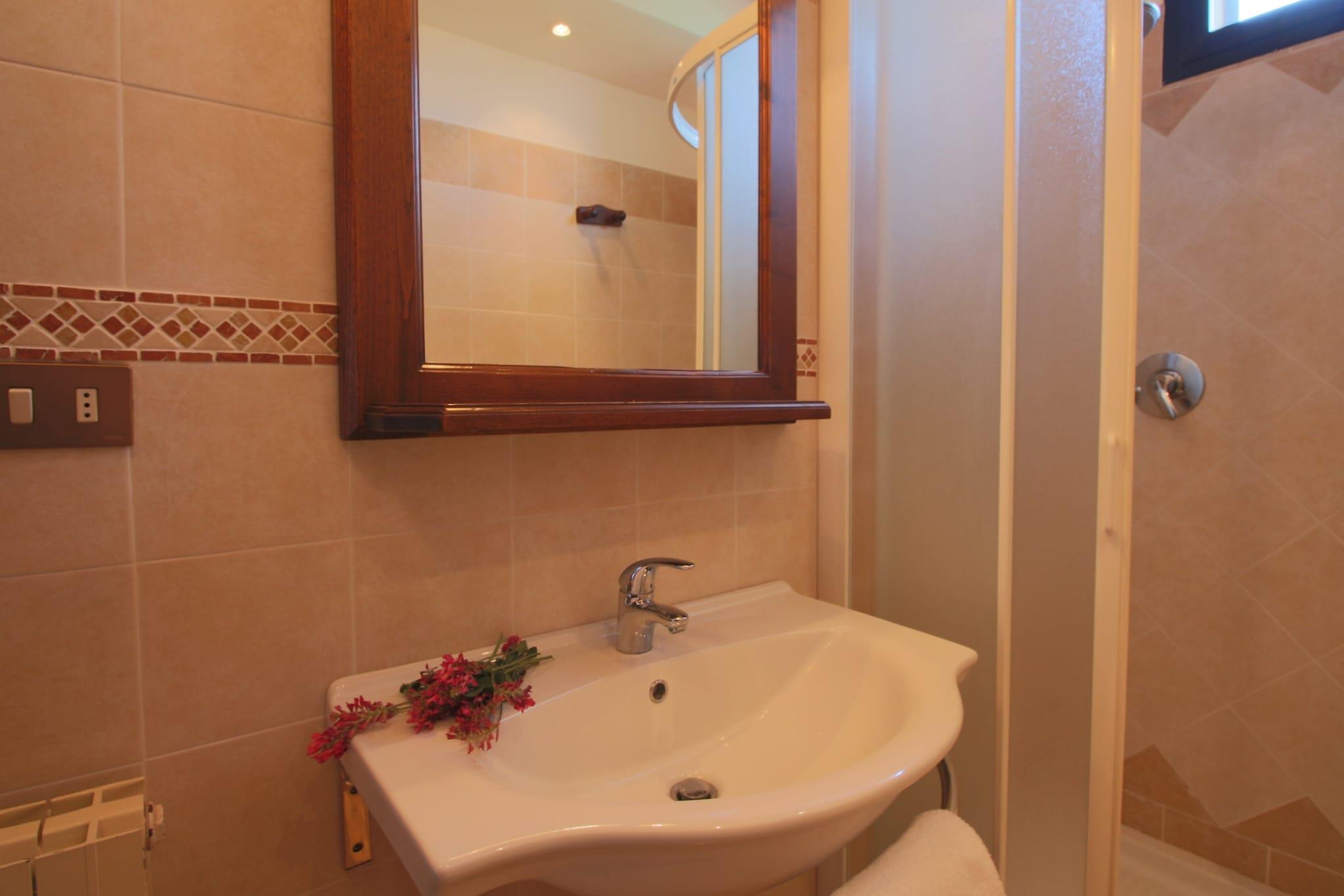 På 1. etage: (Stue(pejs), køkken-alrum(kogeplade, komfur, emhætte, espressomaskine, ovn, mikrobølgeovn, køle-fryseskab), soveværelse(dobbeltseng), soveværelse(2x enkeltseng), soveværelse(dobbeltseng), soveværelse(2x enkeltseng), badeværelse(bruser, håndvask, toilet, bidet, vaskemaskine), badeværelse(bruser, håndvask, toilet, bidet), varme) spisebord(8 personer), terrasse(privat, 9 m2), have(deles med andre gæster), havemøbler, grill, parkering, swimmingpool(deles med andre gæster, 14 x 7 m., opened from Jun upto and including Sep)