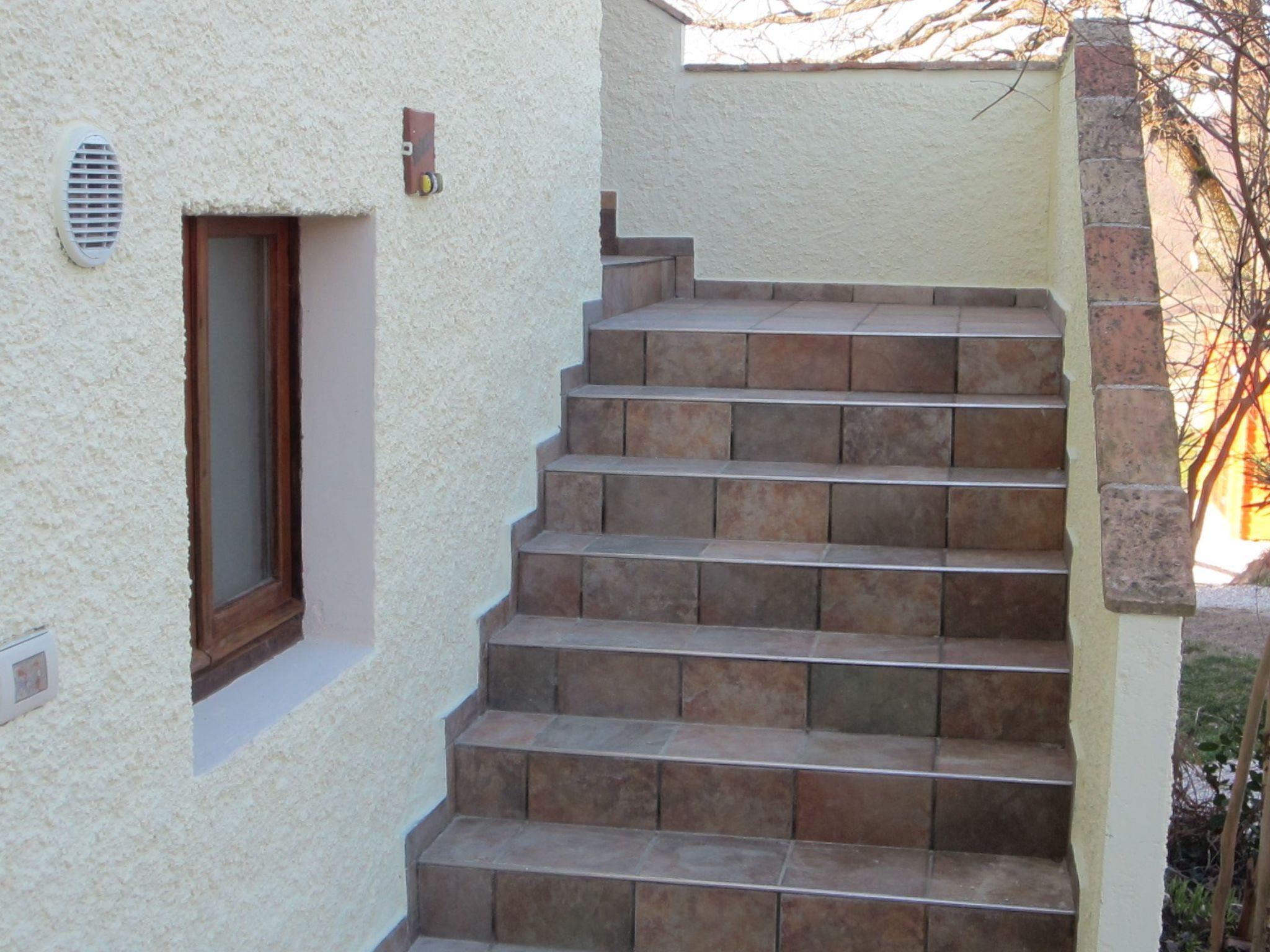 Inside the approximately 50 m² flat is a cosy living space that includes a fully equipped kitchenette with cooker, microwave, fridge and dishwasher. A flat-screen TV, a dining area and reclining chairs complete the picture. There are two bedrooms; one with 2 single beds and the other with a double bed, in addition to a bathroom with shower. The presence of gas central heating, air conditioning and several fans ensure a pleasant indoor climate in any season. A washing machine for common use is also available in the building.