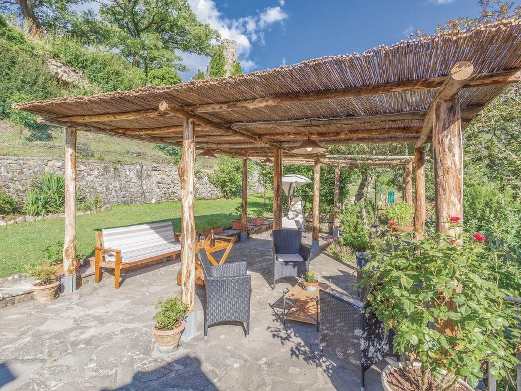 The garden, laid out on two levels, is an enchanting outdoor space complete with barbecue and swimming pool for the exclusive use of guests, who enter into the magical atmosphere of this place with every comfort designed for relaxation and enjoyment. The property, enclosed by a fence and accessible through an automatic gate, also includes a stone courtyard with gazebo and garden furniture, where you can enjoy pleasant moments outdoors.