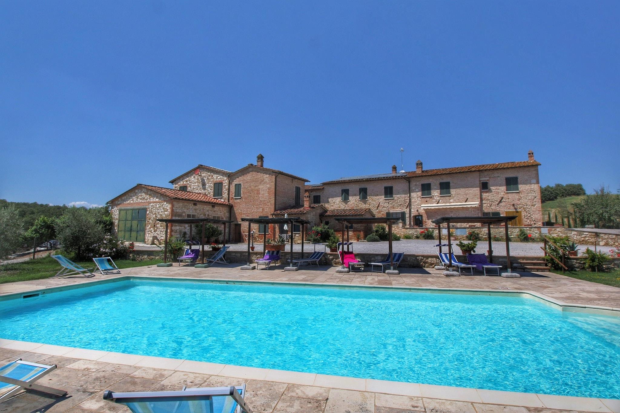 Dette smukt restaurerede gård er beliggende i provinsen Siena nær byen Asciano i hjertet af Kreta Senesi. Dette område er kendt for sin unikke skønhed og smukke farver hver sæson er different.Apartment Aria er en af de fire lejligheder. Det er en meget rummelig og smagfuldt møbleret lejlighed. Der er også en smuk swimmingpool med paraplyer og stole til at slappe af og nyde det toscanske landskab. Lejlighed Aria har eget bord og stole med paraply på den karakteristiske gårdhave nær indgangen til lejligheden. To andre lejligheder har også eget bord og stole på gården. . De venlige og hjælpsomme ejere bor i et hus på grund af agriturismo og gør alt for at glæde gæsterne fornøjelsen. Takket være dets strategiske beliggenhed er det en ideel base for Firenze, San Gimignano, Volterra, Cortona, Pienza, Montalcino, Montepulciano-besøg. Hav en dejlig ferie i denne dejlige agriturismo med swimmingpool. Huset er for op til 5 voksne og 1 barn under 12 år.