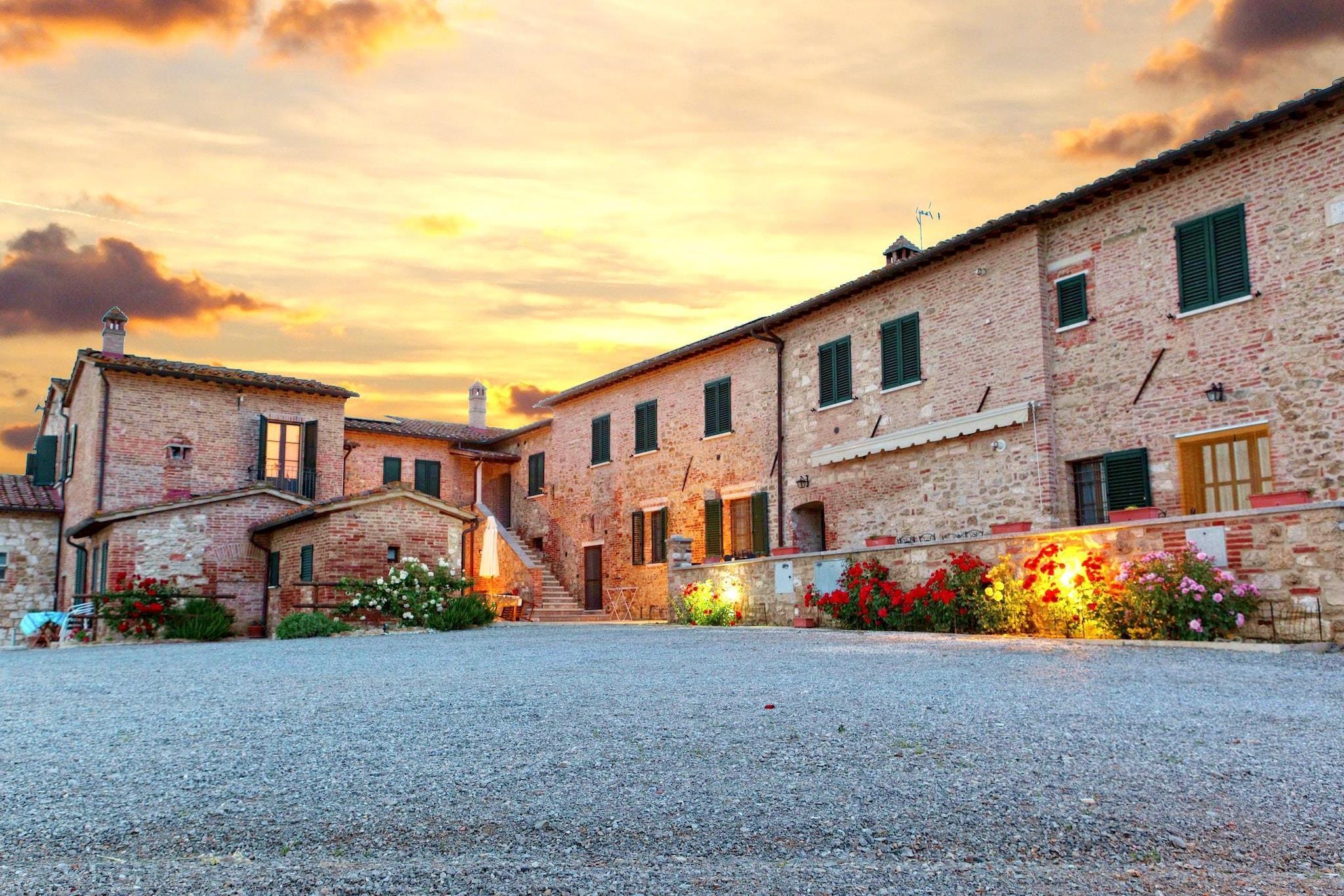 Dette smukt restaurerede gård er beliggende i provinsen Siena nær byen Asciano i hjertet af Kreta Senesi. Dette område er kendt for sin unikke skønhed og smukke farver hver sæson er different.Apartment Terra er en af de fire lejligheder. Det er en meget rummelig og smagfuldt møbleret lejlighed. Der er også en smuk swimmingpool med paraplyer og stole til at slappe af og nyde det toscanske landskab. Terra lejlighed har sit eget bord og stole med paraply på den karakteristiske gårdhave nær indgangen til lejligheden. To andre lejligheder har også eget bord og stole på gården. . De venlige og hjælpsomme ejere bor i et hus på grund af agriturismo og gør alt for at glæde gæsterne fornøjelsen. Takket være sin strategiske beliggenhed er det en ideel base for Firenze, San Gimignano, Volterra, Cortona, Pienza, Montalcino, Montepulciano. Sovesofaen er velegnet til børn op til 12 år. Huset er til 2 voksne og 1 barn under 12 år.Have en dejlig ferie i denne dejlige agriturismo med swimmingpool.