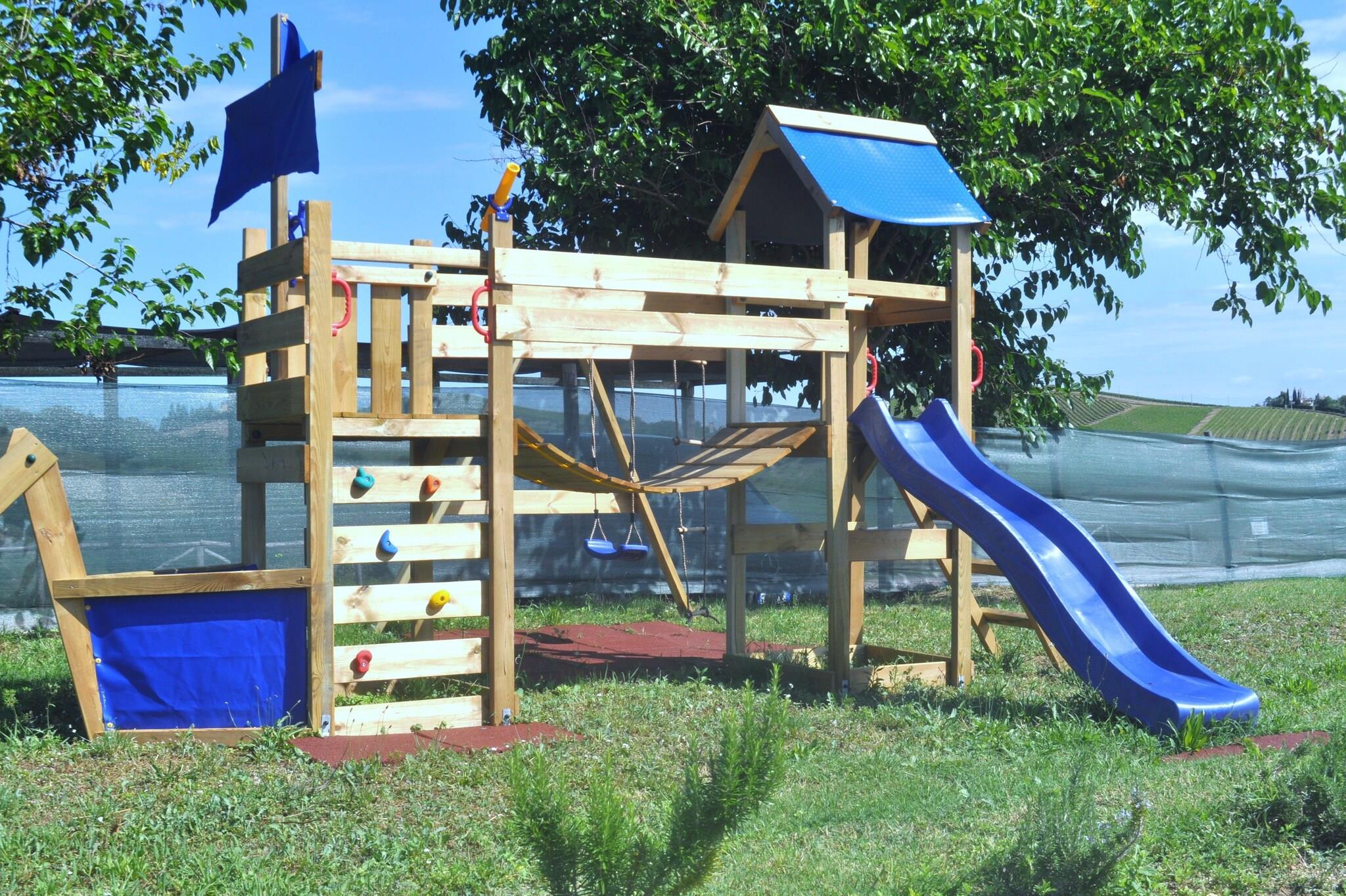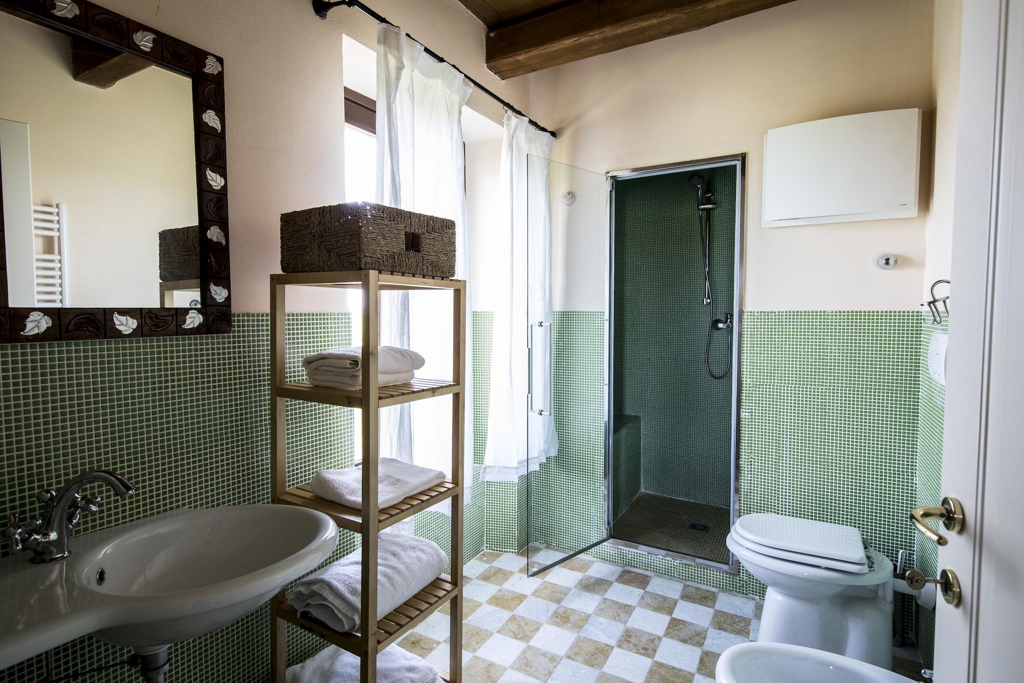 Dette charmerende, kæledyrsvenlige feriehus i San Savino, Ascoli Piceno, tilbyder en fredfyldt flugt for familier eller små grupper. Det er fordelt på to etager og kan komfortabelt rumme op til fem gæster og har en privat terrasse og have. Kun 2 km fra landsbyen og 7 km fra Adriaterhavskysten er det ideelt placeret til at udforske renæssancens skønhed i Ascoli Piceno og de middelalderlige gader i Offida. De panoramiske stier i Monte Ascensione og den historiske Piazza del Popolo er også i nærheden. Indenfor byder boligen på en hyggelig stue med pejs og tv, et fuldt udstyret køkken med moderne apparater og to soveværelser, det ene med køjeseng og enkeltseng, det andet med dobbeltseng på mezzaninen. To badeværelser inkluderer en sauna og et boblebad for ekstra afslapning. Gæsterne kan nyde den private terrasse, have med liggestole, grill og adgang til en fælles udendørs pool. Aircondition, en vaskemaskine og cykler gør det både behageligt og bekvemt. Det omkringliggende område er rigt på kultur og smag. Lokale restauranter kun 2 km væk serverer traditionelle retter fra Marche, prøv La Fattoria Da Celestino for rustikke retter eller Casa Tintoria for en hyggelig madoplevelse. Uanset om du cykler gennem bakkerne eller bader i spabadet, er dette hjem en perfekt base for dit italienske eventyr på landet.