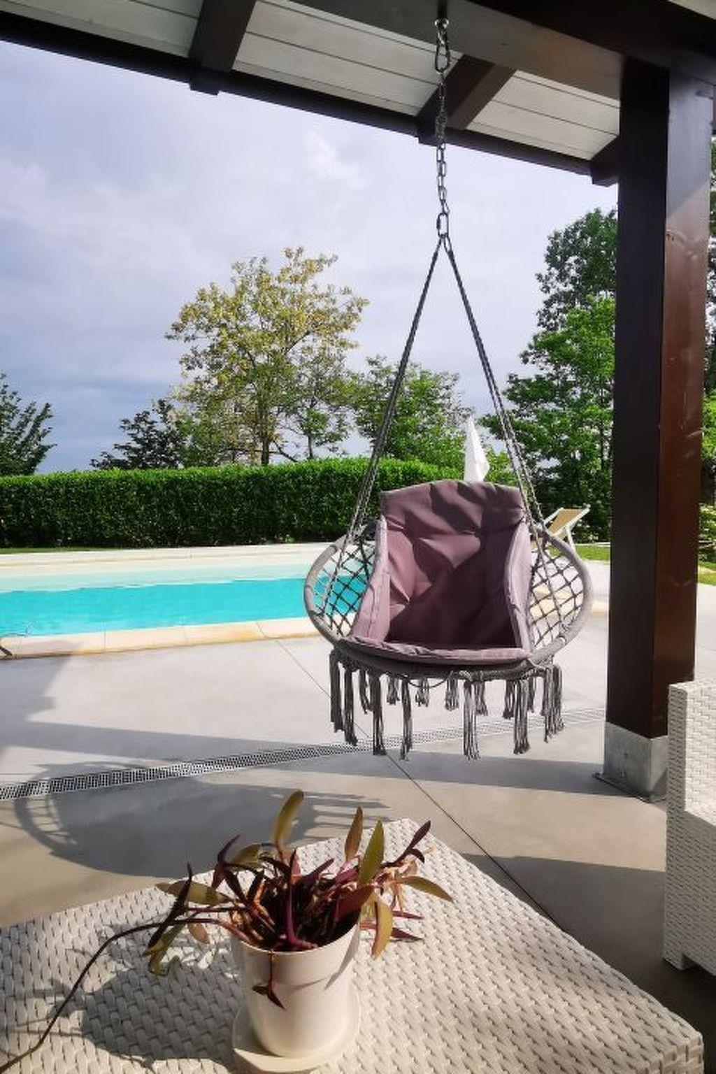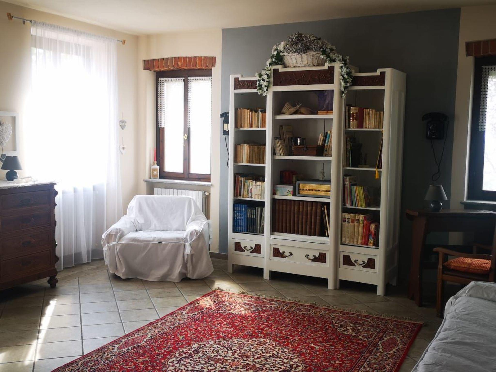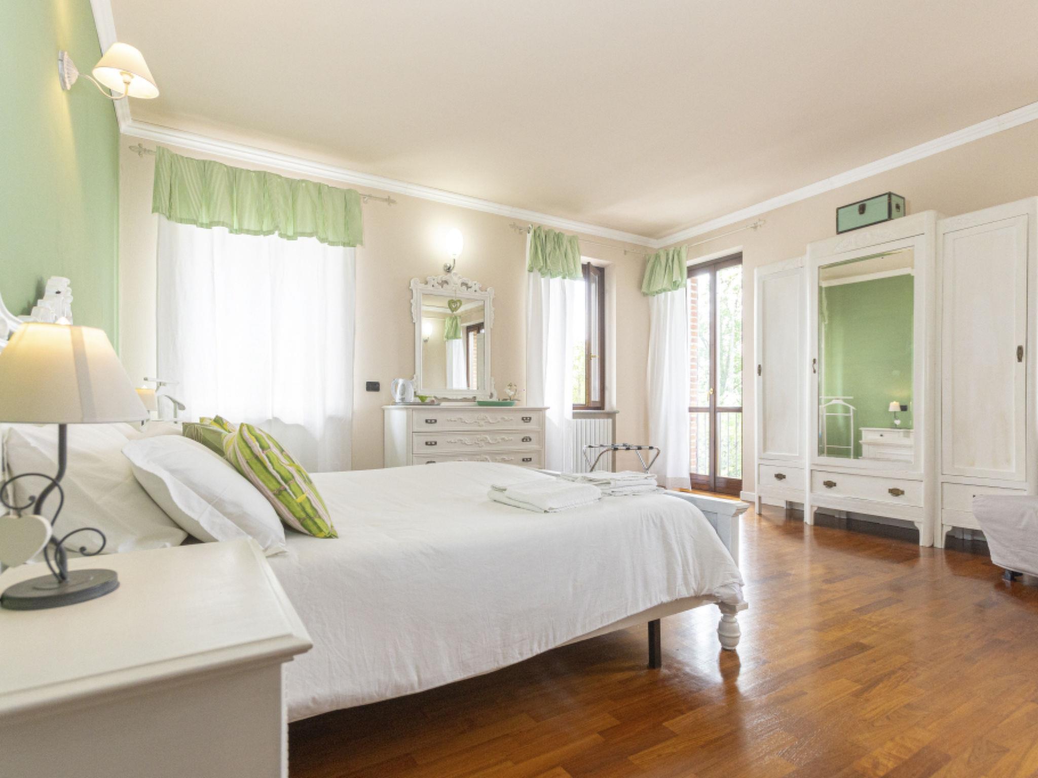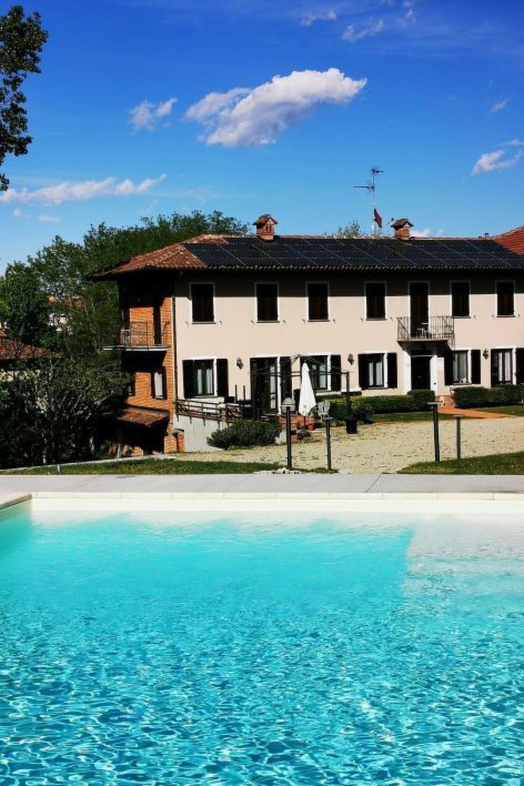 Entire home of 450 square meters, in Piedmont style with parking, wifi, garden with outdoor area and huge lawn, with above ground pool (3X5 H130) and solarium area, surrounded by private woods. On the ground floor: living area with dining room and relaxation area, equipped kitchen, bathroom with shower and panoramic terrace. On the first floor: 3 bedrooms and 3 bathrooms: "Clhoe" room (max 2 pers.) with double canopy bed and en-suite bathroom with shower; "Shanty" room (max 3 pers.) with double bed and sofa bed, private external bathroom in the corridor with bathtub; and Melody room (max 2 pers.) with french bed and single bed, private bathroom with shower on the corridor. In two rooms (Clhoe and Melody) there is air conditioning and can possibly communicate through a hallway with a small terrace overlooking the garden. In each room, fans and boilers for tea and herbal teas are available.