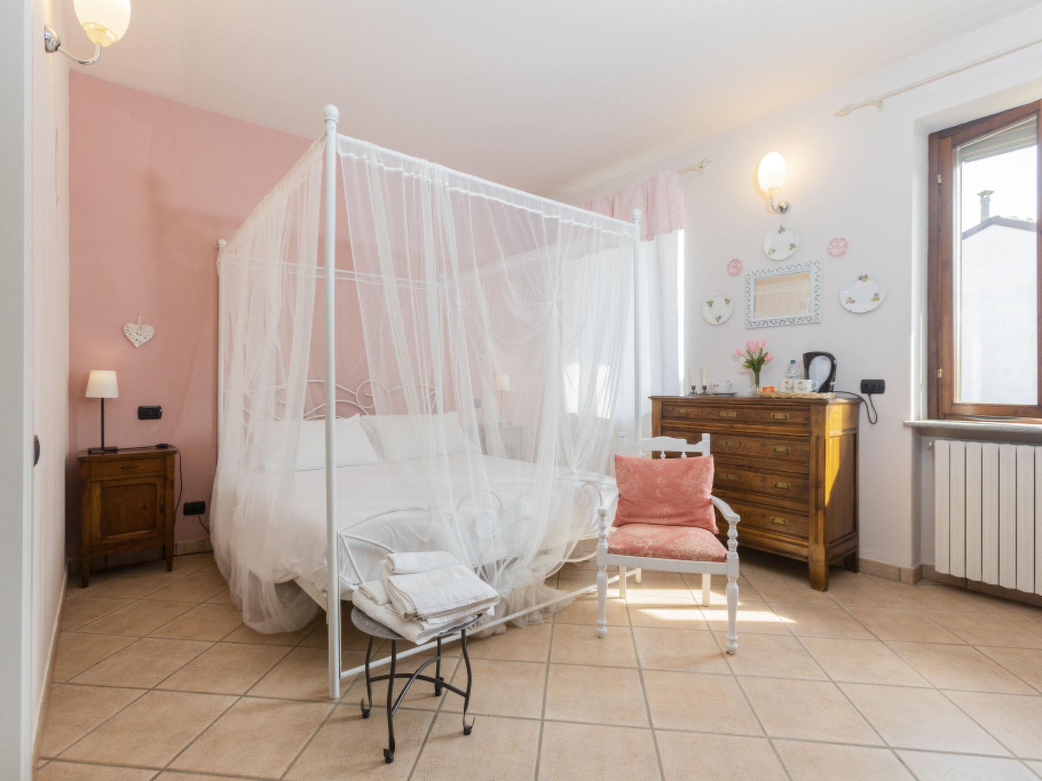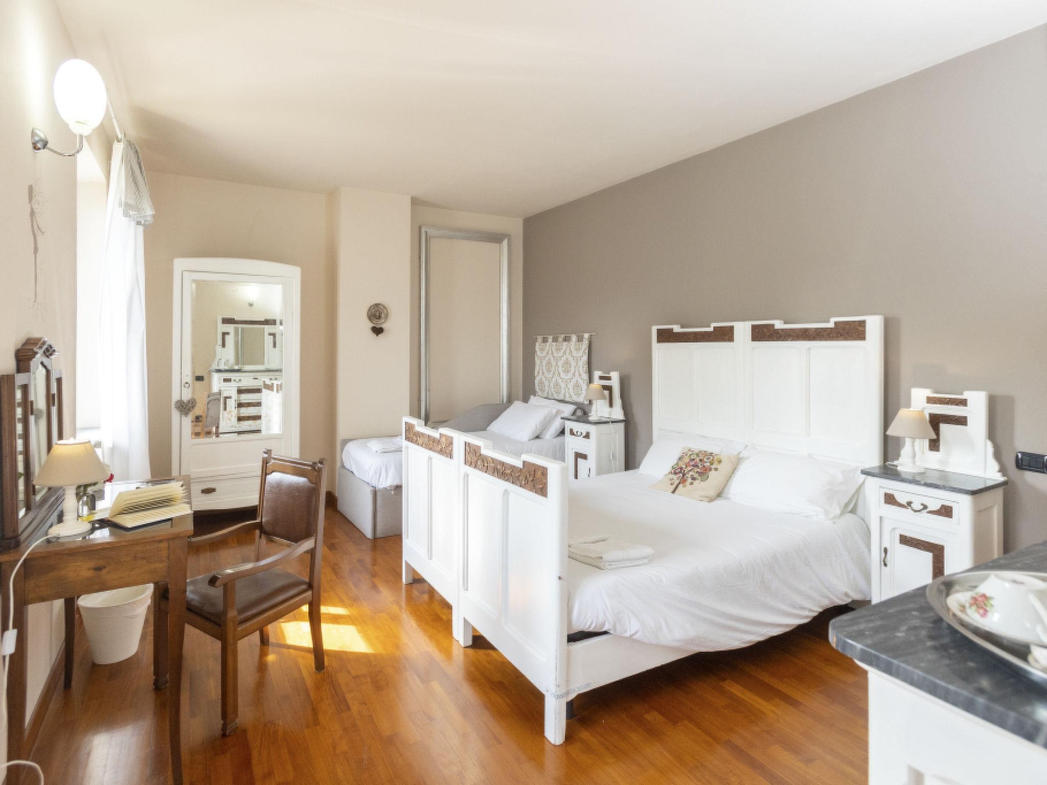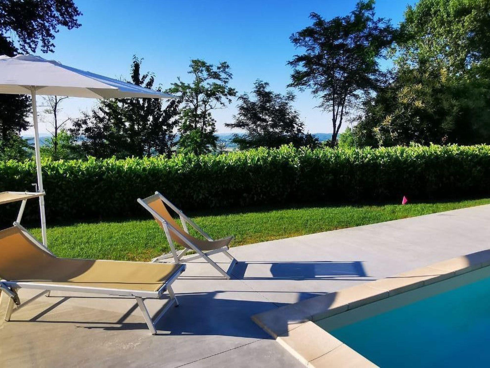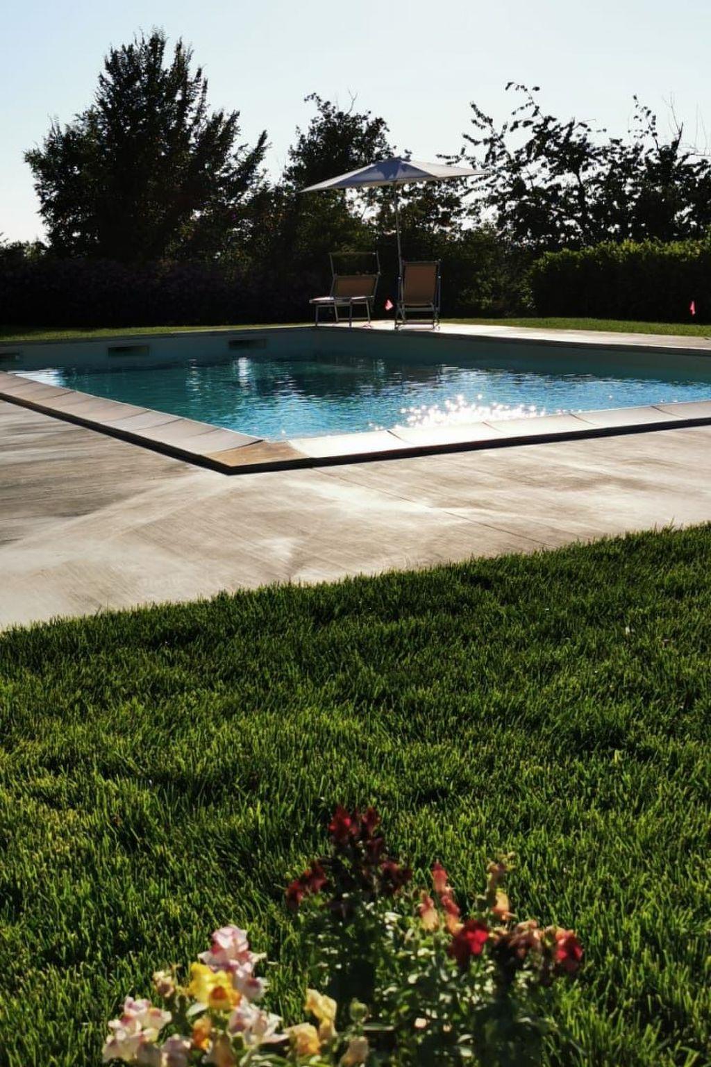 Entire home of 450 square meters, in Piedmont style with parking, wifi, garden with outdoor area and huge lawn, with above ground pool (3X5 H130) and solarium area, surrounded by private woods. On the ground floor: living area with dining room and relaxation area, equipped kitchen, bathroom with shower and panoramic terrace. On the first floor: 3 bedrooms and 3 bathrooms: "Clhoe" room (max 2 pers.) with double canopy bed and en-suite bathroom with shower; "Shanty" room (max 3 pers.) with double bed and sofa bed, private external bathroom in the corridor with bathtub; and Melody room (max 2 pers.) with french bed and single bed, private bathroom with shower on the corridor. In two rooms (Clhoe and Melody) there is air conditioning and can possibly communicate through a hallway with a small terrace overlooking the garden. In each room, fans and boilers for tea and herbal teas are available.
