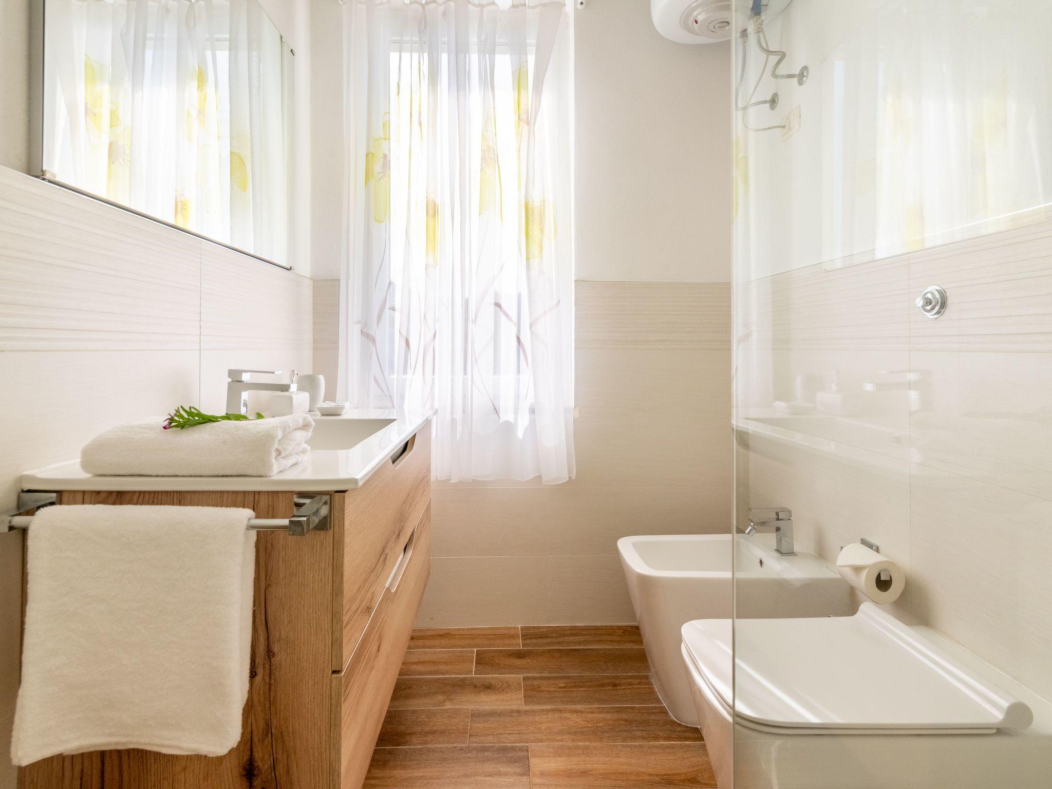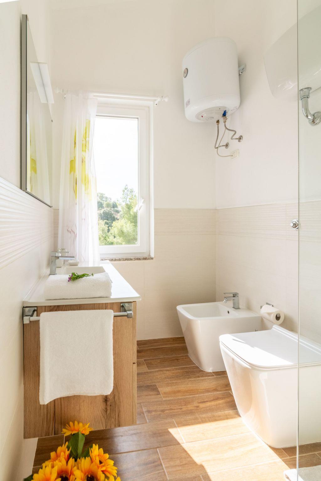 All the necessary amenities for an independent holiday await you in the flat. A gas hob, an oven, an espresso pot, a toaster and a filter coffee machine are available to brighten up your mornings. After meals, a dishwasher provides convenience, while a washing machine for your sole use keeps your holiday wardrobe fresh. For pleasant temperatures, even on warm nights, air conditioning is installed in some rooms.