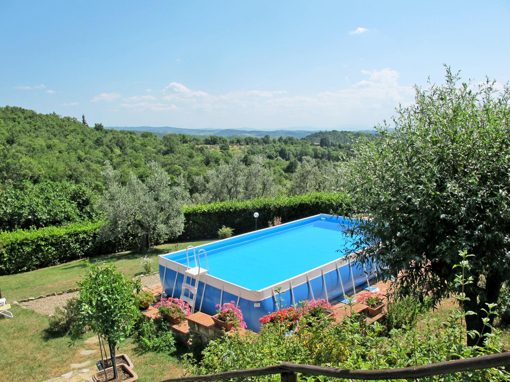 Cosy cottage "Il Casale". 2.5 km from the centre of Badia a Passignano, 5 km from the centre of Montefiridolfi, 30 km from the centre of Firenze, 90 km from the sea, in the countryside. Private: natural state property, garden (not fenced) with meadow, swimming pool (above ground) (8 x 4 m, seasonal availability: 01.May. - 15.Oct. pool opening hours: 08:00-21:00). Garden furniture, barbecue. 2 km long bumpy motor access (via unmade road). Parking at the house on the premises. Shop 3.5 km, supermarket 7.5 km, railway station "Poggibonsi" 20 km, sandy beach "Cecina Mare" 90 km, outdoor swimming pool 3.5 km, indoor swimming pool 20 km. Please note: baby equipment (included). The owner does not accept any youth groups. Local sale of farm products. Owner uses some rooms in the house.
