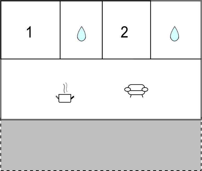 Opholdsstue/køkken - 2 Sovepladser. (Sofa, madras eller lignende).
