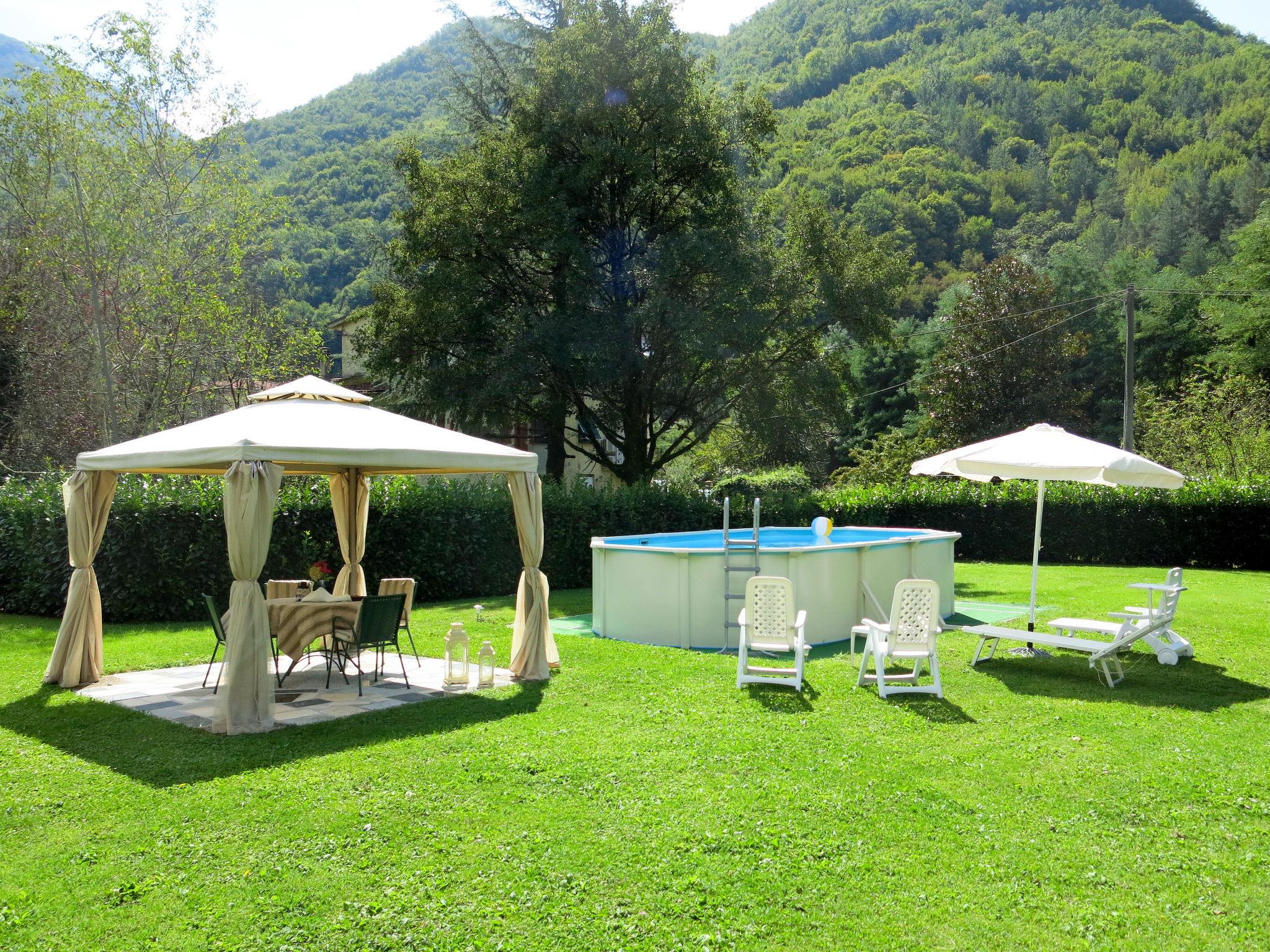 3-family house "Natalie", 250 m a.s.l.. 11 km from the centre of Bagni di Lucca, 40 km from the centre of Lucca, 56 km from the centre of Pisa, 64 km from the sea. For shared use: property 1 ha (fenced) with plants and trees, lawn for sunbathing, swimming pool (above ground) (6 x 3 m, depth 120 cm, seasonal availability: 15.May. - 20.Sep.). Pergola, garden furniture, barbecue, pool maintenance by the owner/gardener. Stepped path (20 steps) to the house. Parking on the premises. Shop 500 m, supermarket 11 km, bus stop 10 m. Please note: the owner lives in the same residence.