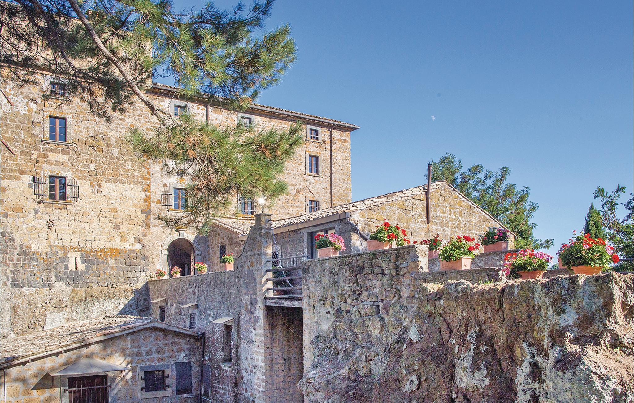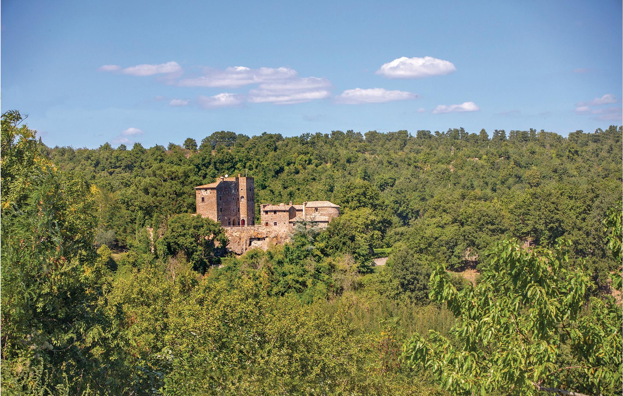 Slot fra det 14. århundrede, bygget på en tufstensklippe højt over to grønne dale, 3 km fra Celleno. Rolig og afsondret beliggenhed og med en fantastisk udsigt ud over dale og skove. På ejendommen, ca. 50 m fra indgangen, ligger en stor plæne med swimmingpool (112 m², åben fra midt i maj til slutningen af september), udendørs bruser, liggestole og parasoller. I har også adgang til et område, hvor I kan spille fodbold, tennis og volleyball. Gangstier, bordfodbold, bordtennis, petanquebane, billard og sauna mod betaling. Legeplads til børnene. Udendørs dansegulv med cd-afspiller. Parkeringsplads. Tilkørsel ad en 900 m. lang og ikke asfalteret vej gennem en skov, hvor der ikke kan køre store busser. Slottet udlejes udelukkende til en gruppe på 24 gæster, som der er god plads til på et stort fællesområde, som består af 3 store opholdsrum (et med satellit-tv, et med en stor kamin og det sidste med spisebord). Derudover er der 12 mindre, enkelt indrettede soveværelser, alle med eget brusebad og håndvask (4 med dobbeltseng og 8 med enkeltsenge. Ved forespørgsel er det muligt at leje 3 babysenge (mod betaling). Det er også muligt at reservere yderligere 16 sovepladser på slottet (mod betaling, i stueplan, i højde med haven). Så i alt er der plads til 40 overnattende gæster fordelt på 17 boligenheder. Det er muligt at bestille hushjælp, kok til frokost. Lokal husmandskost (aftal pris ved bestilling). Ca. 900 m. fra slottet finder I en butik med kaffebar og telefon. Stort udvalg af butikker: 3 km til Celleno, 7 km til Bagnoregio og Civita di Bagnoregio som også kaldes ’den døende by’, 15 km til Bolsenasøen (gratis strande hvor I kan leje solstole og parasoller). 20 km Viterbo, 29 km Orvieto, 90 km Rom og 150 km Firenze. Adgang til slottet sker over en stenbro (tidligere vindebro). Forbrugsomkostninger betales på stedet.