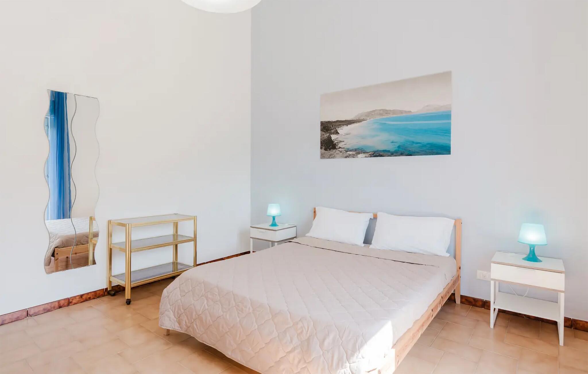 Lad jer fortrylle af havudsigten i denne ferielejlighed. Den indbydende lejlighed byder jer velkommen i en ideel beliggenhed nær stranden og er perfekt til en ferie fyldt med dejlige timer ved havet og spændende stunder på øen. Nyd tiden sammen og hyggelige aftener i køkkenet med et godt måltid sammen. Efter en aktiv dag fyldt med oplevelser kan I også tilbringe mange afslappende timer på terrassen og lade blikket vandre langt ud over havet. Tag lange gåture på stranden eller udforsk det omkringliggende område på cykel. Vandsportsentusiaster kan nyde adskillige aktiviteter såsom snorkling, dykning eller en bådtur langs den storslåede kystlinje. Besøg de historiske byer Palermo og Trapani. Beundre de gamle templer i Segesta eller tag på vandretur i det nærliggende naturreservat Riserva dello Zingaro, hvor turkisblå bugter og uberørte landskaber venter på jer.
