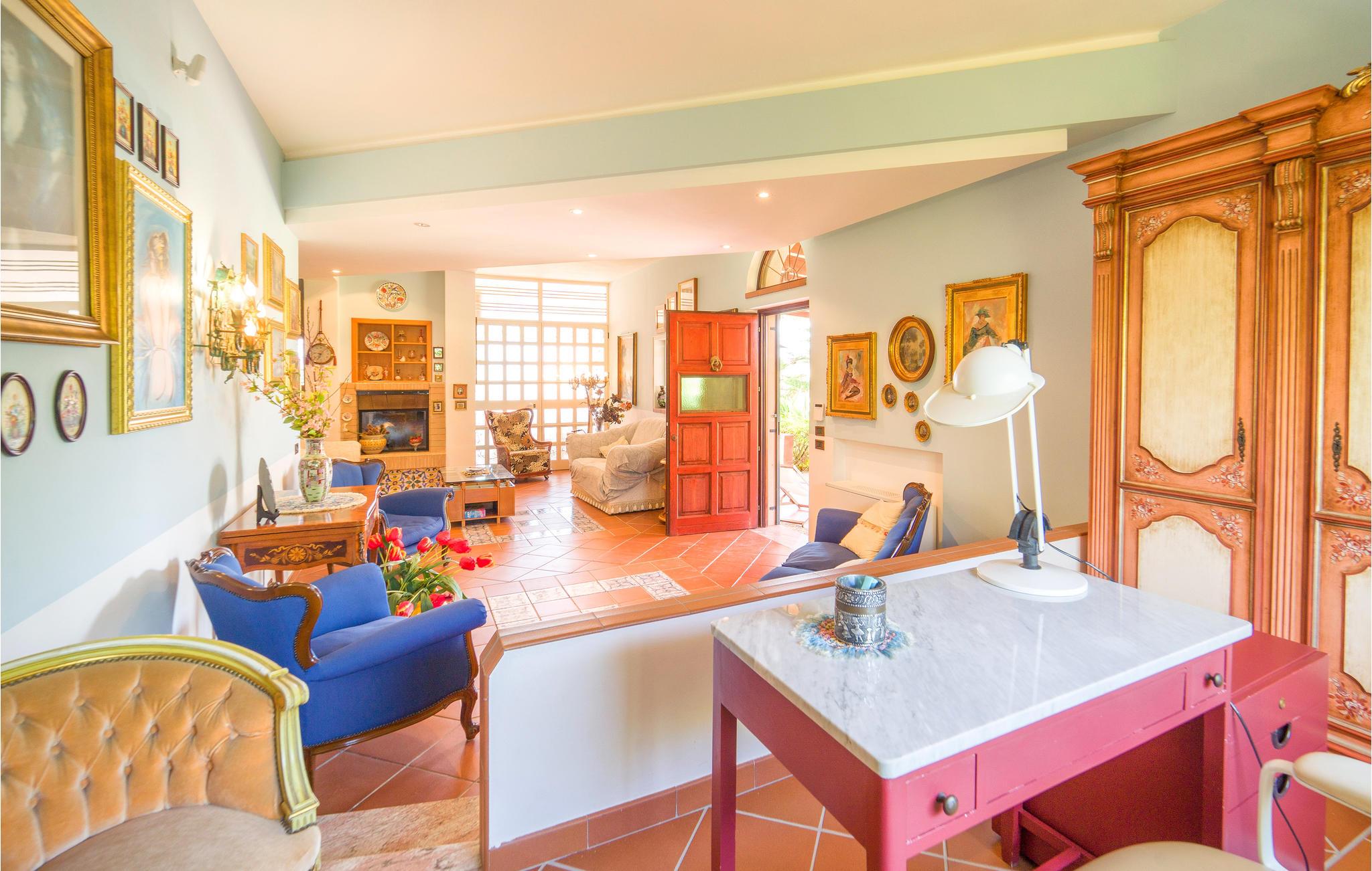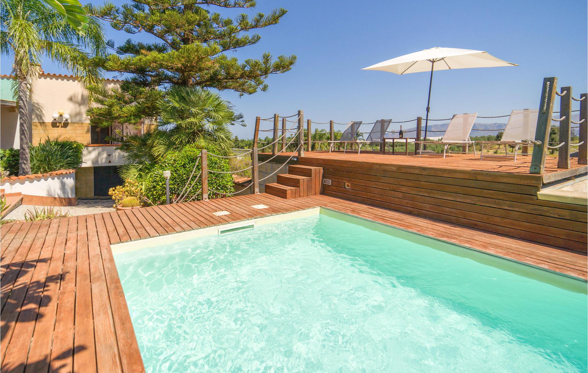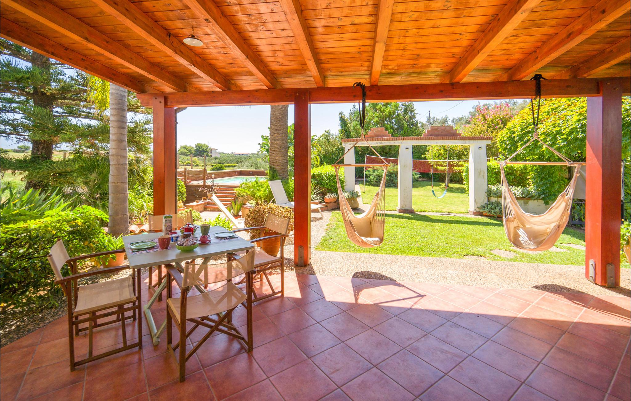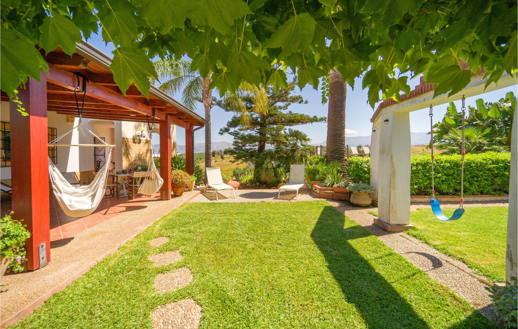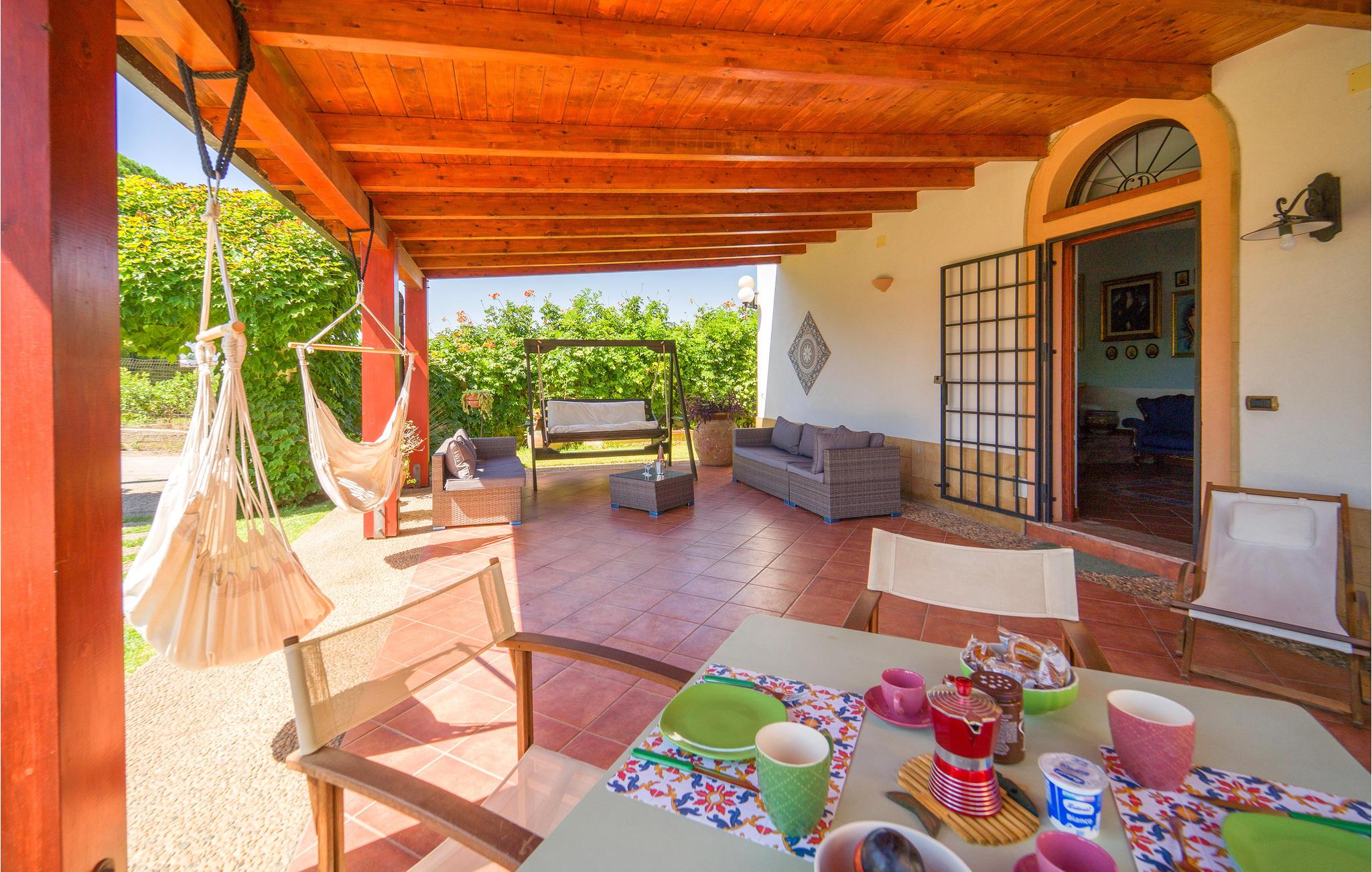 Dette feriehus nær Balestrate tilbyder sine gæster et møbleret udendørs område og tre store overdækkede terrasser til udendørs spisning og afslapning efter en dag på de smukke sandstrande på Sicilien.