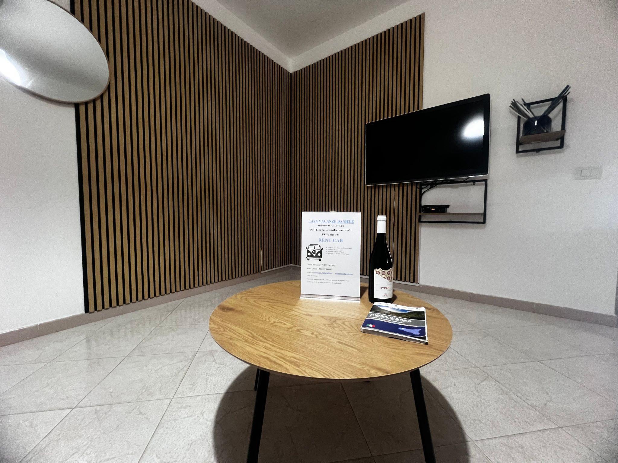 L'interno di Casa Daniele è progettato per offrire il massimo comfort e relax. Il soggiorno, dotato di TV a schermo piatto, divano e aria condizionata, è il luogo perfetto per rilassarsi dopo una giornata trascorsa esplorando le bellezze locali. La casa vanta inoltre due camere da letto, di cui una con aria condizionata: una matrimoniale con balcone vista mare e una seconda camera ideale per ospiti aggiuntivi. La cucina, completamente attrezzata con fornelli, forno, forno a microonde, macchina da caffè tradizionale e a capsule, oltre a un bollitore elettrico e un angolo pranzo, offre tutto il necessario per preparare deliziose pietanze da gustare in compagnia.