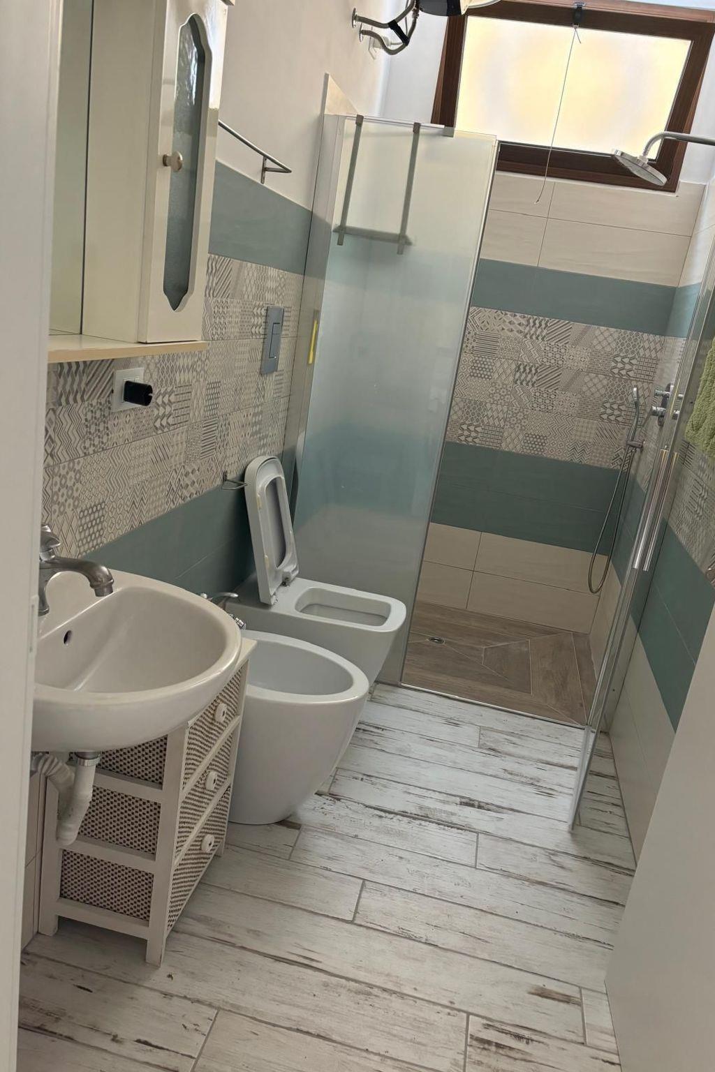 The flat consists of a fully equipped kitchen with a sofa, two double bedrooms and one bedroom with two single beds, and a shower room and a second bathroom with WC and sink.
