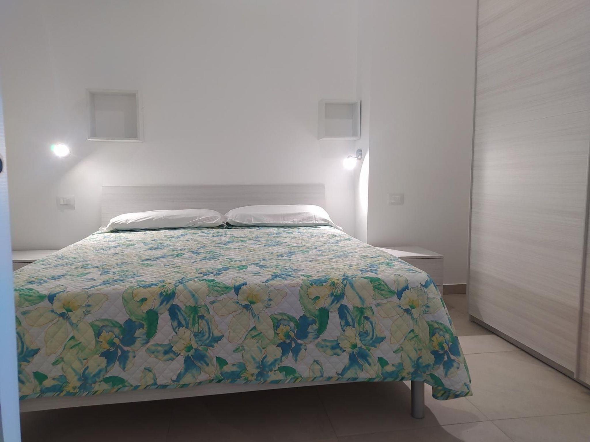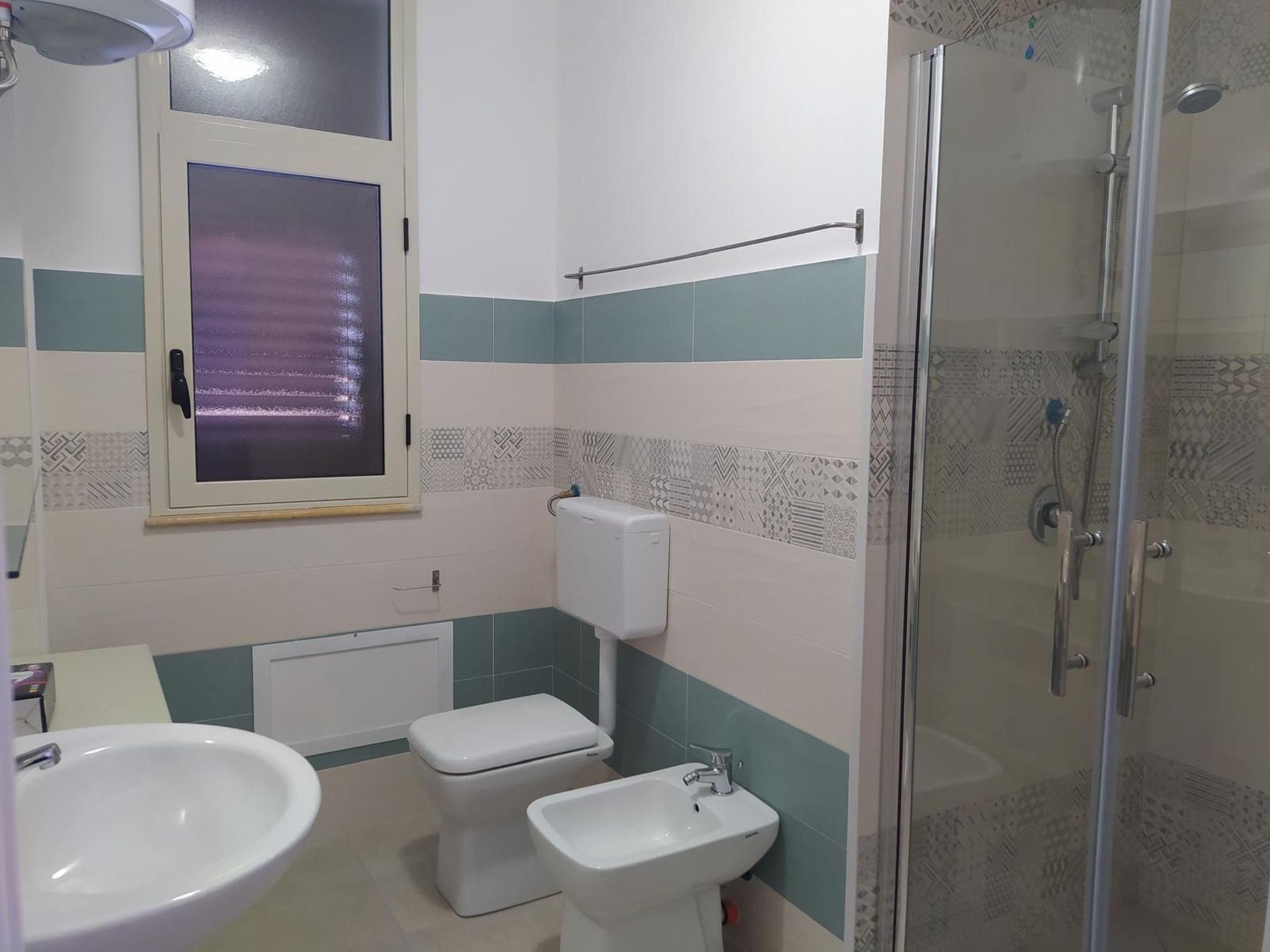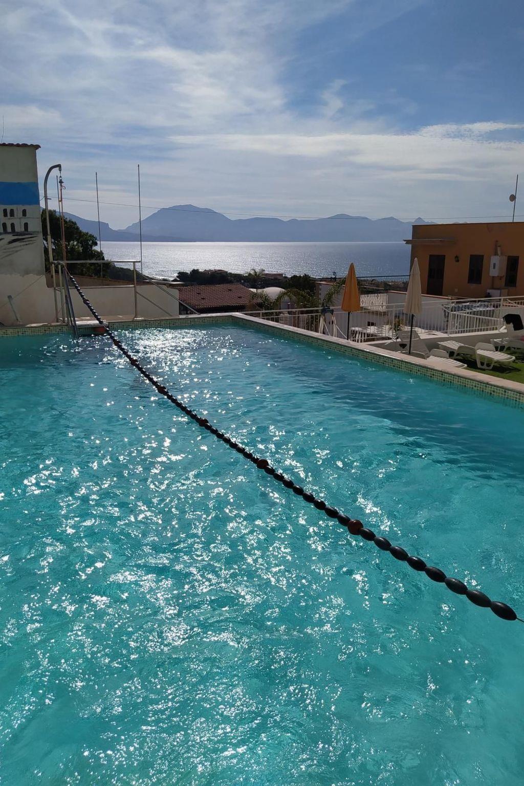The residence consists of 6 flats with 3 to 7/8 beds, equipped with air conditioning . Our guests can also enjoy a large swimming pool set up in a place overlooking the sea and equipped with a solarium where there are relaxing deckchairs. All flats have free Wi-Fi. The flat has a living room with a kitchen with a gas cooker and a sofa bed, 2 bathrooms, two bedrooms, 1 with a double bed and 1 with two single beds that can be joined and become a double bed. Outside it has a veranda with a view of the sea and a large shared car park.