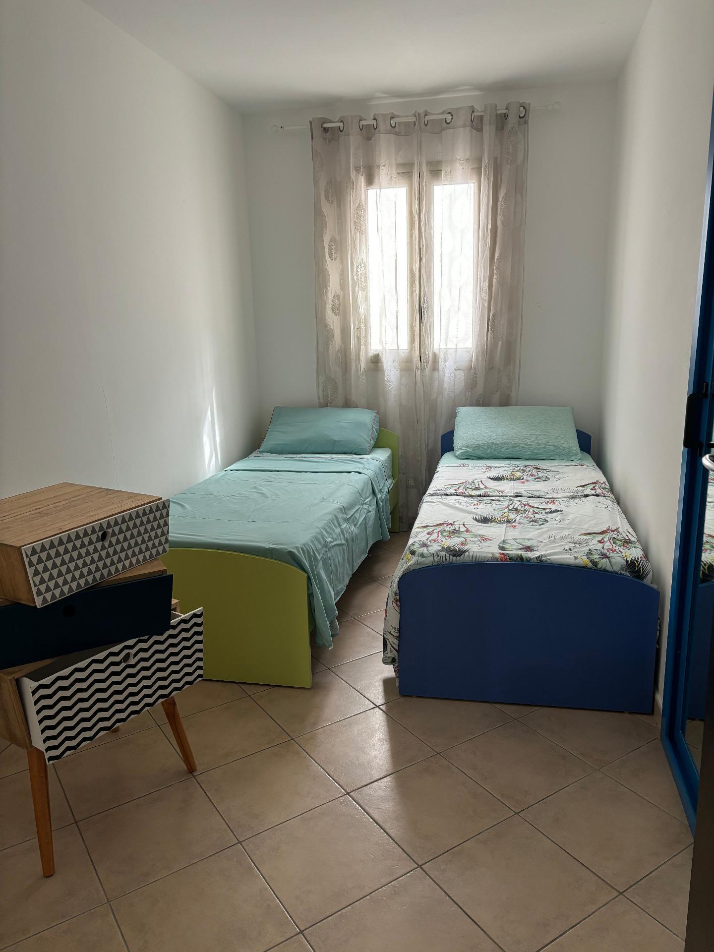 The apartment is on the ground floor, consisting of 1 double bedroom and a bedroom with 2 single beds, a sofa bed is also available in the kitchen. The apartment has a bathroom inside and is air conditioned in the kitchen but the air can effectively reach all the rooms. The kitchen is equipped with everything you need, including a coffee machine with pods. Tv present table chairs.
