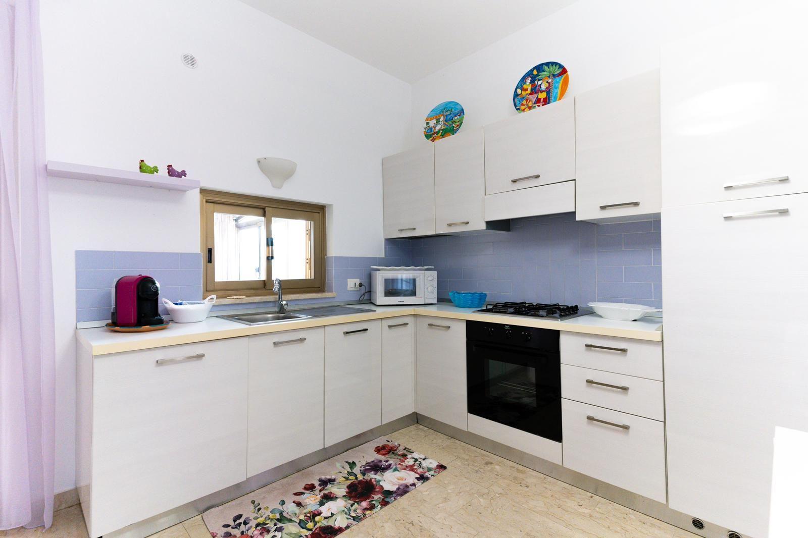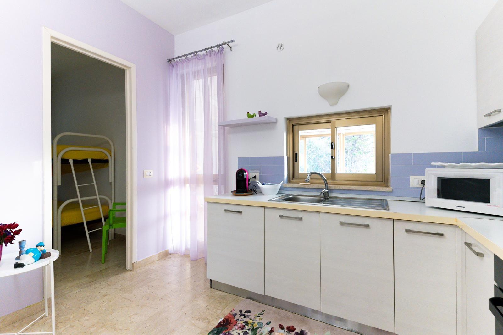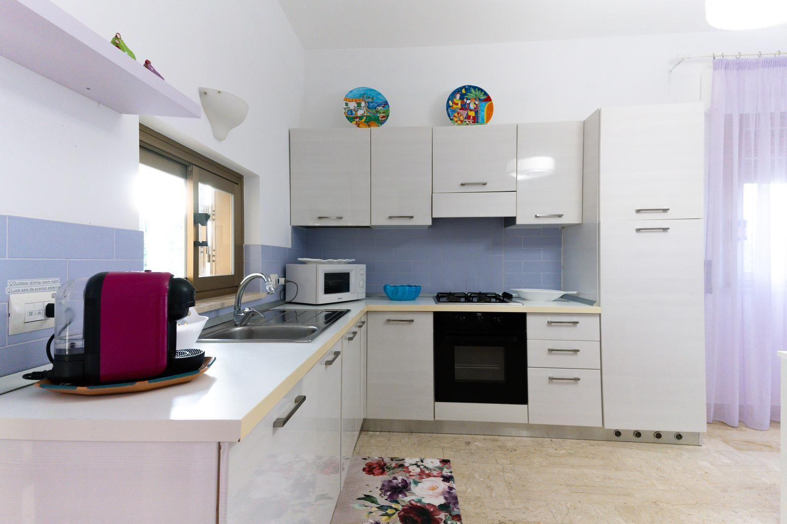 The villa offers three cosy bedrooms and a bathroom with shower, making your stay both practical and restful. Equipped with air conditioning in every room, it ensures a comfortable stay during hot summer days. A washing machine is available for your exclusive use, simplifying the management of your clothes during your holiday. The kitchen, complete with gas hob, capsule coffee machine and electric kettle, invites you to prepare delicious meals to enjoy with friends.