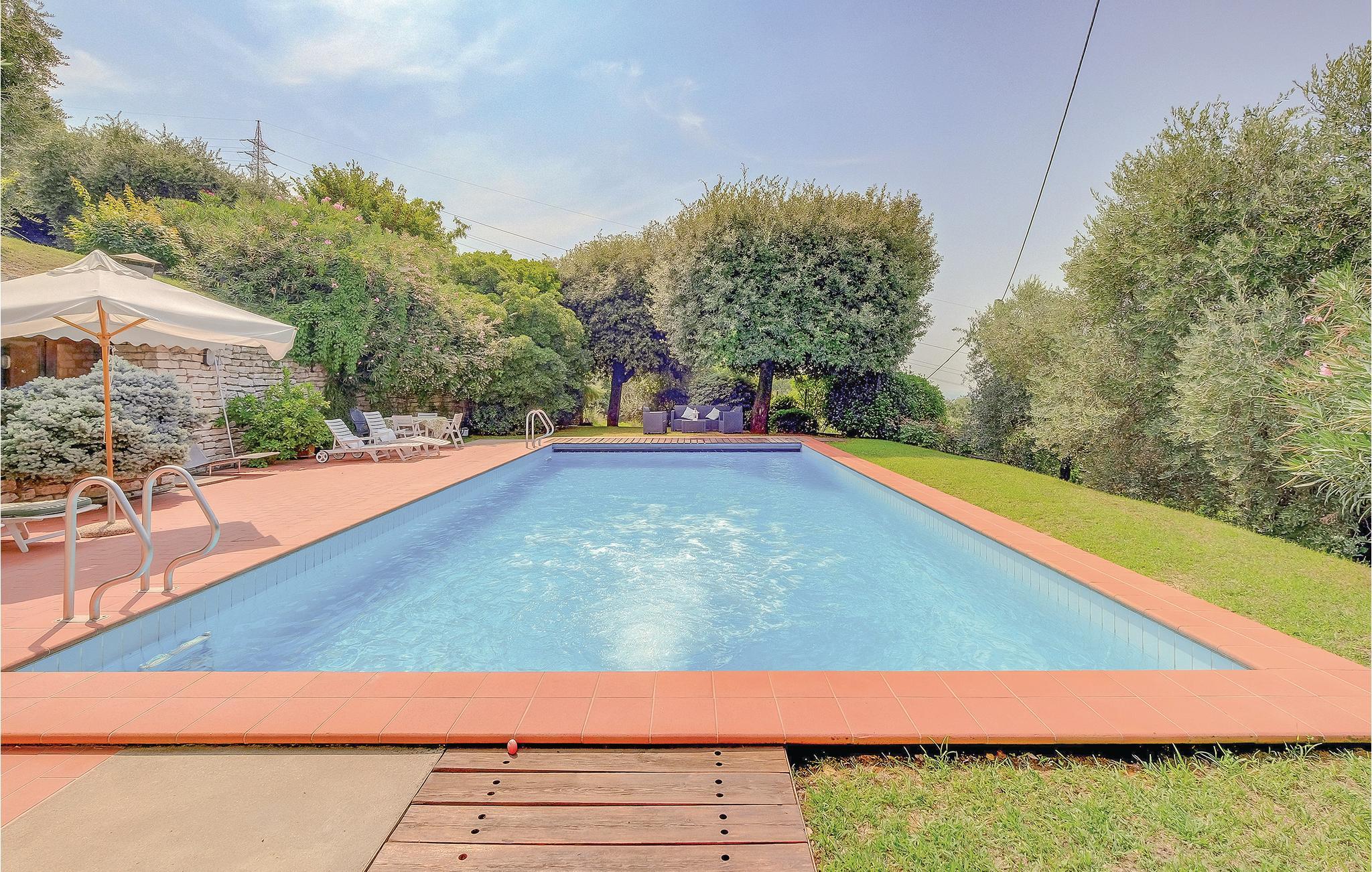 Den store swimmingpool er placeret under huset og kan nås via trapper. Du kan solbade og bade her i mange timer og også bruge tid på værelset ved siden af ??poolen med et lille køkken, et badeværelse og en sauna.