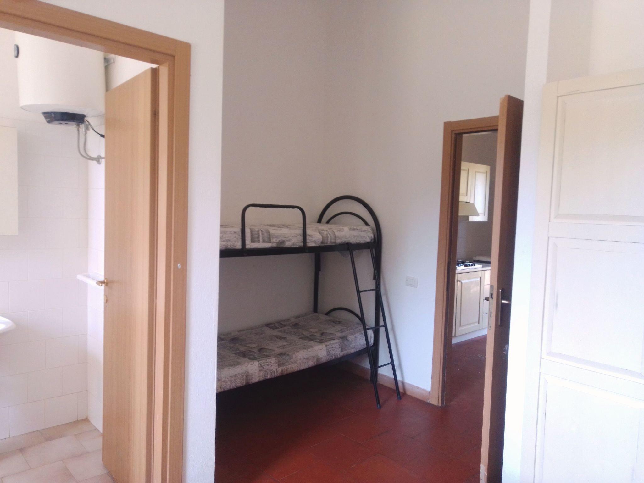 L'inside our flats offers ample comfortable living space: an outdoor'accogliente zona soggiorno con divano letto doppio, un tavolo allungabile per sei persone, una cucina attrezzata con 4 fuochi a gas, frigorifero con freezer, e una camera con letto matrimoniale e letto a castello per ospitare fino a 6 persone. Un bagno riservato con doccia, WC, bidet e lavello rende il tutto ancora più confortevole, insieme a servizi quali Wi-Fi gratuito, TV digitale terrestre, parcheggio privato, cassaforte e climatizzatore su richiesta. È disponibile anche una culla aggiuntiva su richiesta.