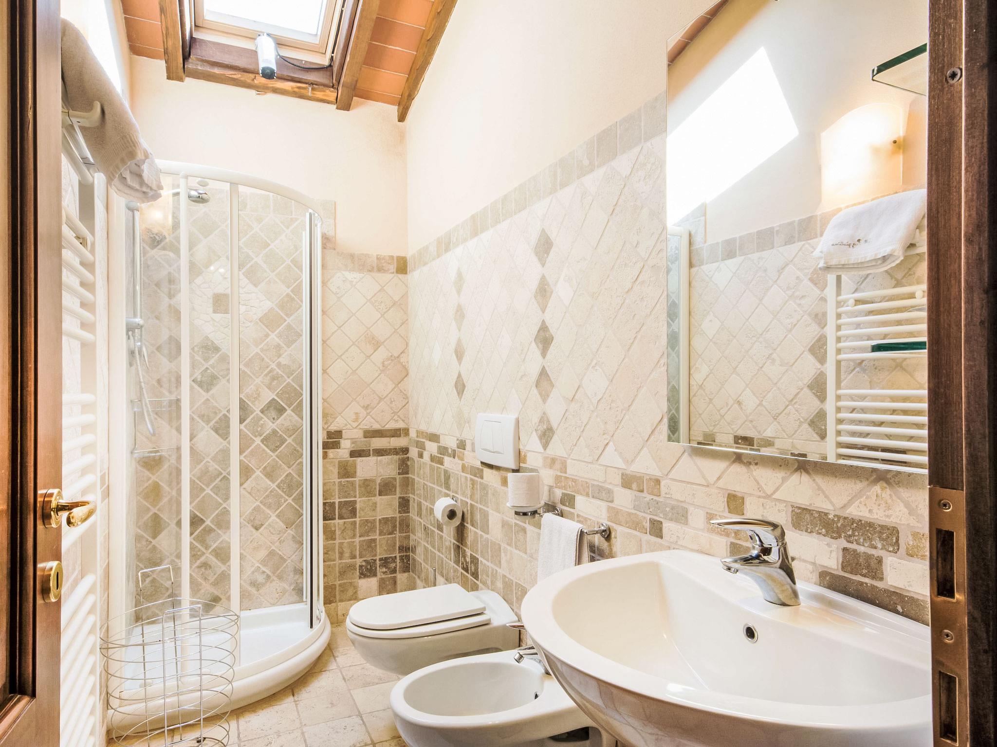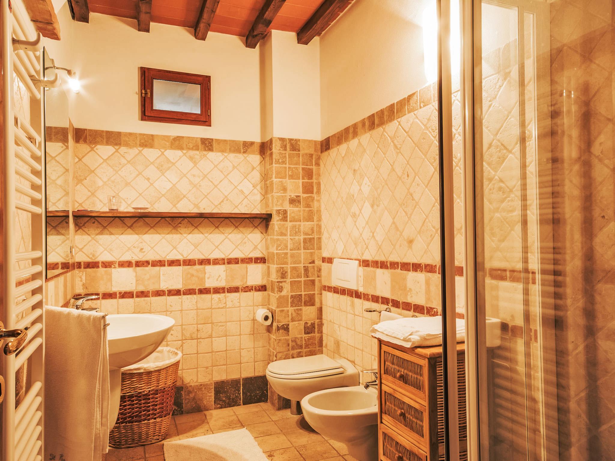 Residence "Il Borghetto". 7 km from the centre of Barberino di Mugello, 38 km from the centre of Firenze, in an elevated position on top of a hill, 7 km from the lake. For shared use: garden (fenced), swimming pool (12 x 6 m, depth 100 - 220 cm, seasonal availability: 05.May. - 28.Sep.). Outdoor shower, garden furniture, barbecue, children's playground (slide, swing). In the house: central heating system, washing machine (for shared use, extra), heating to be paid on the spot, heating available only from 01.Nov. - 15.Apr.. Parking at the house. Grocery 500 m, supermarket 7 km, bus stop 500 m, bathing lake "Lago di Bilancino" 7 km. Golf course (18 hole) 18 km. Nearby attractions: Outlet Barberino 14 km, Autodromo internazionale 15 km, Scarperia 20 km, Vicchio 28 km. Please note: the photograph shows a typical example. Additional accommodations can be booked. The old Tuscan-style country house has been completely renovated. It is situated in the middle of the green, hilly countryside of Mugello, on the slope of Futa Pass. The property comprises: an old barn, converted into 2 apartments, an old henhouse and an old country house divided into 8 apartments, some of them with stone walls and all of them with outdoor area or garden. The apartments were furnished with great attention to detail but without losing the original rustic style (e.g. exposed beams, arcs and wooden window frames). The residence is a perfect place to relax and recover, to relish the typical Tuscan cuisine and wines and to go on trekking or mountain biking tours. The most attractive places of Mugello or, more generally, of Tuscany can easily be reached. Lake Bilancino (7 km), the most important water source in Tuscany, offers good water quality, many beaches to sunbathe and relax and numerous kinds of water sports such as canoeing, sailing and windsurfing. The Mugello Circuit (Autodromo Internazionale del Mugello) is 15 km away. The Barberino Designer Outlet with more than 90 shops of famous brands, designed in the style of a renaissance village is 14 km away.