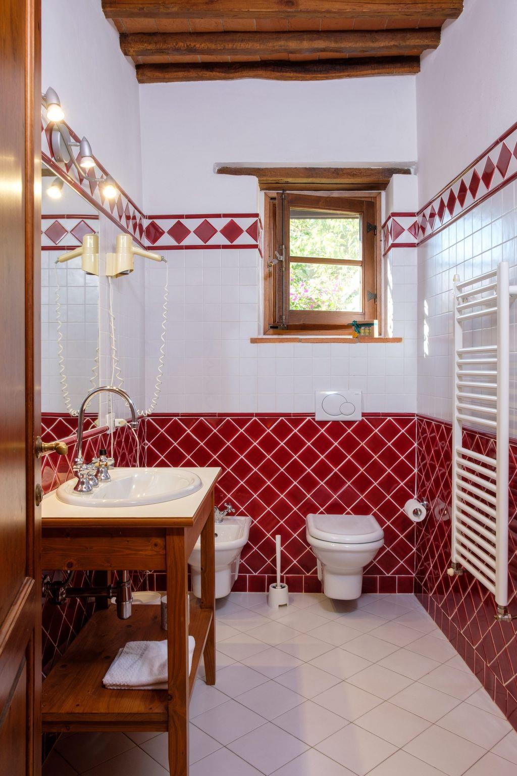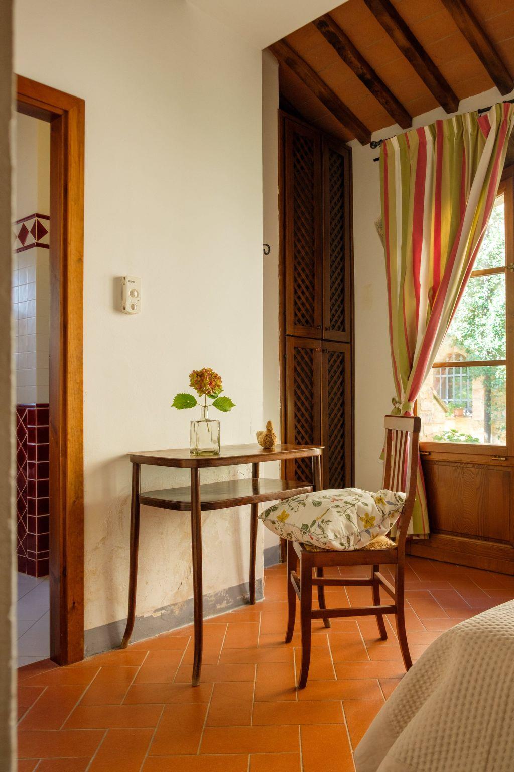 Lavanda 1 Suite at Podere Ticciaia (63 square metres, 4 pax). Large living/dining area, kitchen corner, 2 double bedrooms, 2 bathrooms (1 with shower, 1 with tub/shower) outside veranda with table and chairs, outside garden with gorgeous view. Apartment equipped with air conditioning.Apartment can be connected (through a double wooden door) with Lavanda 2 to be able to comfortably host 6/8 people.