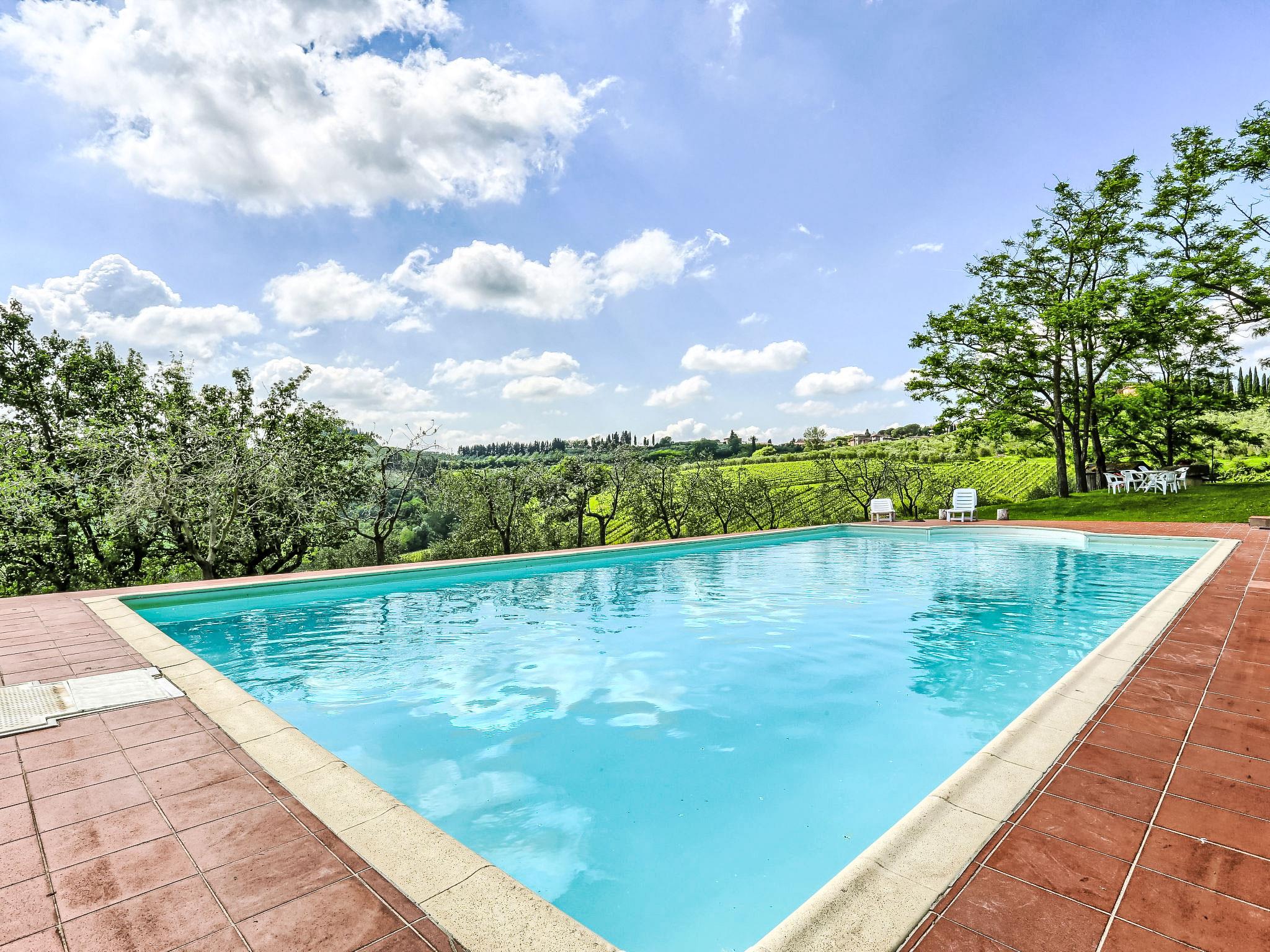 Country house "Chiantishire retreat". 15 apartments in the property. 1 km from the centre of Barberino val d'Elsa, 4 km from the centre of Tavarnelle val di Pesa, in a sunny position, in the countryside. For shared use: property 40 ha, natural garden, swimming pool (16 x 8 m, depth 150 cm, seasonal availability: 01.Jun. - 02.Oct.). Outdoor shower, garden furniture, barbecue. In the complex: reception, internet access, washing machine, heating available only from 01.Nov. - 07.Apr.. Parking on the premises. Shop 1 km, supermarket 1 km, restaurant 1 km, bus stop 1.2 km. Nearby attractions: San Donato in Poggio 9.5 km, Castellina in Chianti 17 km, Greve in Chianti 20 km, Radda in Chianti 25 km, Firenze 30 km, Siena 40 km.