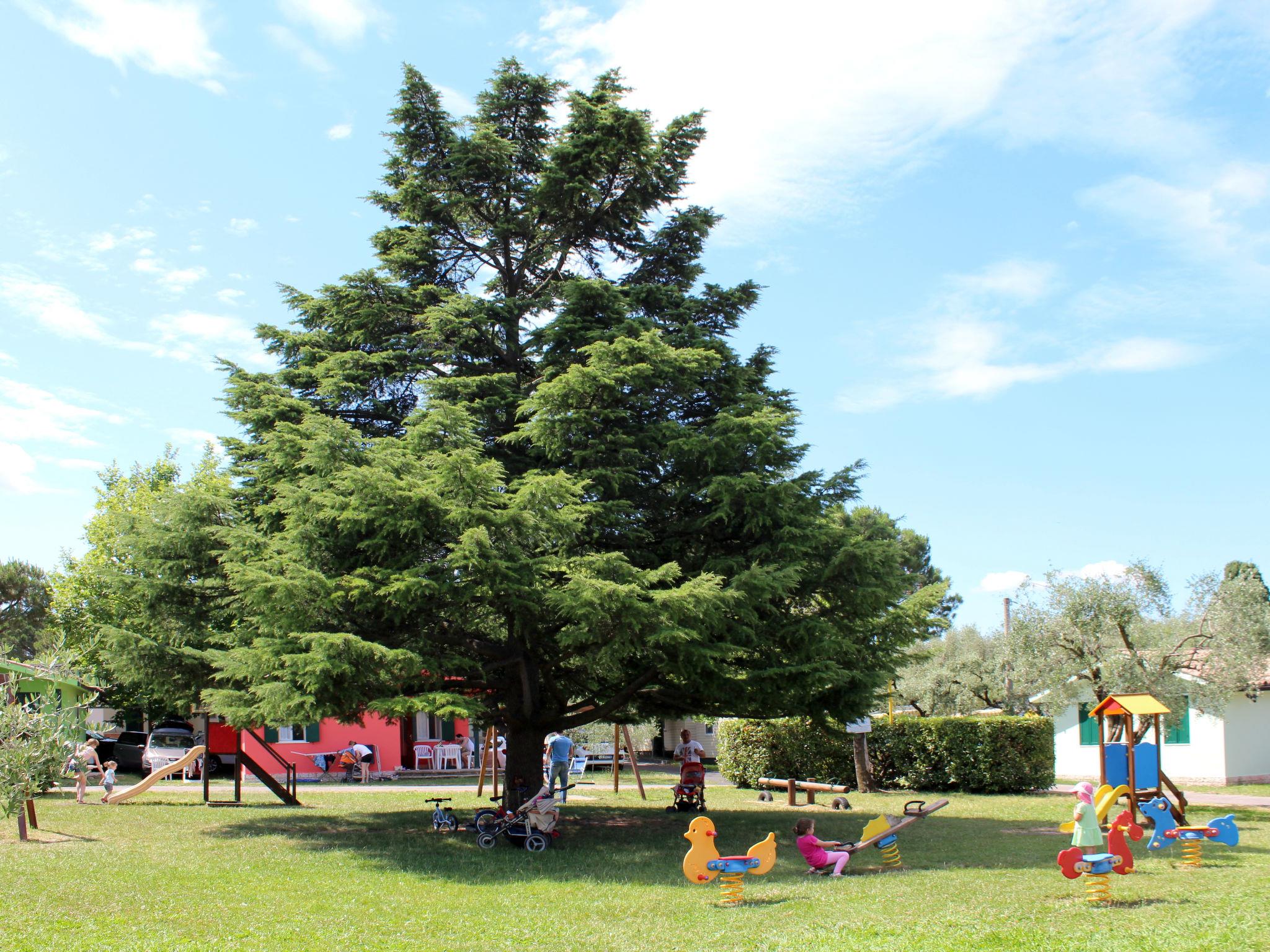 The tourist complex CAMPING CISANO SAN VITO is situated in the hamlet of Cisano, between Bardolino and Lazise (2,5 km in each direction), on a property of approx. 17 ha, completely fenced and with a splendid panoramic view. It consists of the two complexes Cisano and San Vito, some directly bordering the lake, some above the Gardesana road, approx. 300-700 m from the lake (connected by a pedestrian subway and a car tunnel). Nice sandy beach with deck chairs and umbrellas and direct access to the public sandy beach. large, child friendly holiday village "Cisano & San Vito". In the district of Cisano 2.5 km from the centre of Bardolino, 2.5 km from the centre of Lazise, 700 m from the lake, 700 m from the beach, direct access to the beach. For shared use: property 17 ha (fenced), 3 swimming pools (seasonal availability: 15.Apr. - 30.Sep.). WC in the pool area, children's pool, slide, outdoor shower, hot tub, tennis (extra), table tennis, basketball (extra), volleyball court, children's playground. In the complex: reception, restaurant, bar, WiFi (extra). Fitness room, shopping facilities, kiosk, washing machine (extra), tumble dryer (for shared use, extra), bicycle rental. Parking, public parking extra. Shop 2 km, bus stop 450 m, pebble beach 700 m. Nearby attractions: Verona 28 km. Please note: entertainment in the season. Suitable for families, baby equipment on request (extra). The owner does not accept any youth groups. The photograph shows a typical example. Obligation to wear bathing caps.