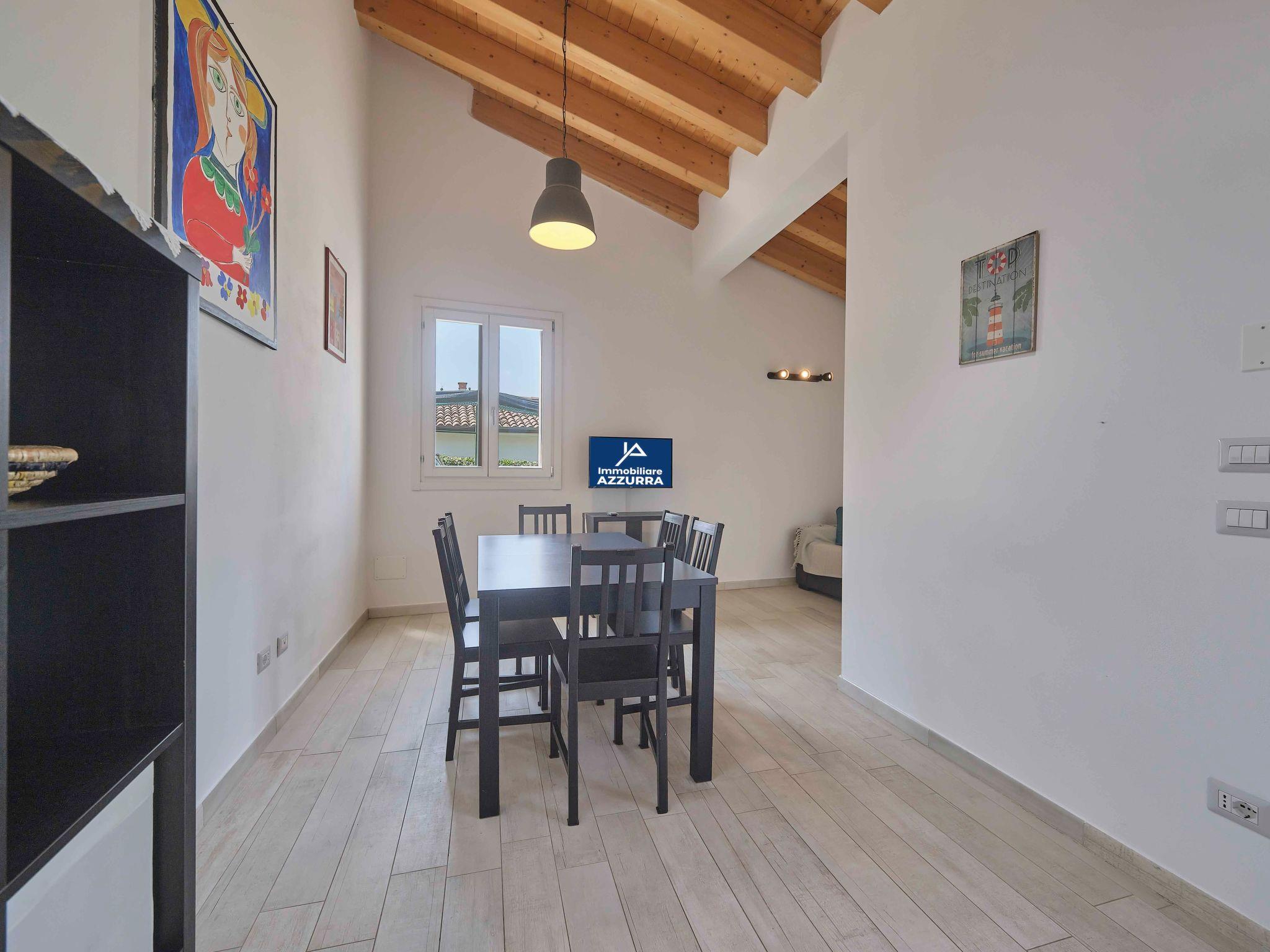 Inside, the cottage has all the necessary comforts for a pleasant and carefree stay. You will find a cosy living room with a 140 cm wide sofa bed, perfect for relaxing after a day spent exploring the surroundings. The kitchenette, complete with washing machine, will allow you to prepare your own meals. With a double bedroom and a small bedroom with 2 bunk beds, the cottage can comfortably accommodate up to 6 people. A windowed bathroom and a porch area complete the interior of the house, which is also equipped with satellite TV, wifi and air conditioning to ensure maximum comfort at all times.