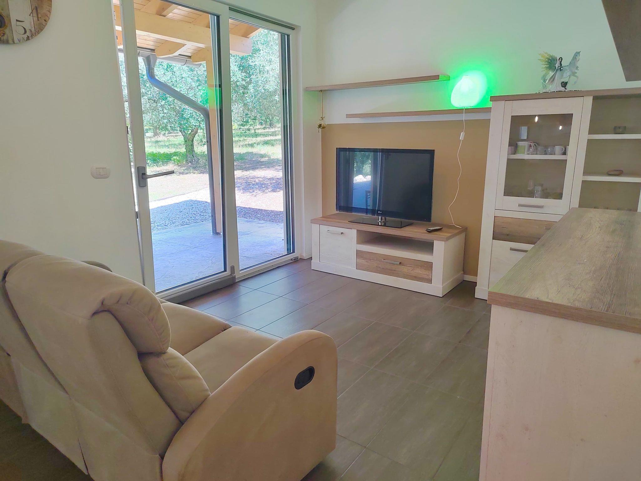 Olive Charme is a newly built small villa of approx. 80 square metres, on a farm surrounded by a spectacular olive grove in a quiet area, ideal for relaxing. The house can accommodate 4 adults. There are two bedrooms: one with a double bed and a small one with a bunk bed. It is divided into a living room with kitchenette, a double bedroom and a windowed bathroom with shower. It has a nice porch facing north and west. The house is equipped with every comfort, air conditioning, wifi, washing machine and dishwasher. It has 2 uncovered parking spaces near the house. Olive charme is suitable for spending time outdoors, having aperitifs and meals or simply relaxing amidst the olive trees, caressed by the gentle breeze coming from Lake Garda.The centre of Bardolino is only 2.5 km away and can also be explored by bicycle through the many narrow streets that criss-cross the vineyards of Bardolino.