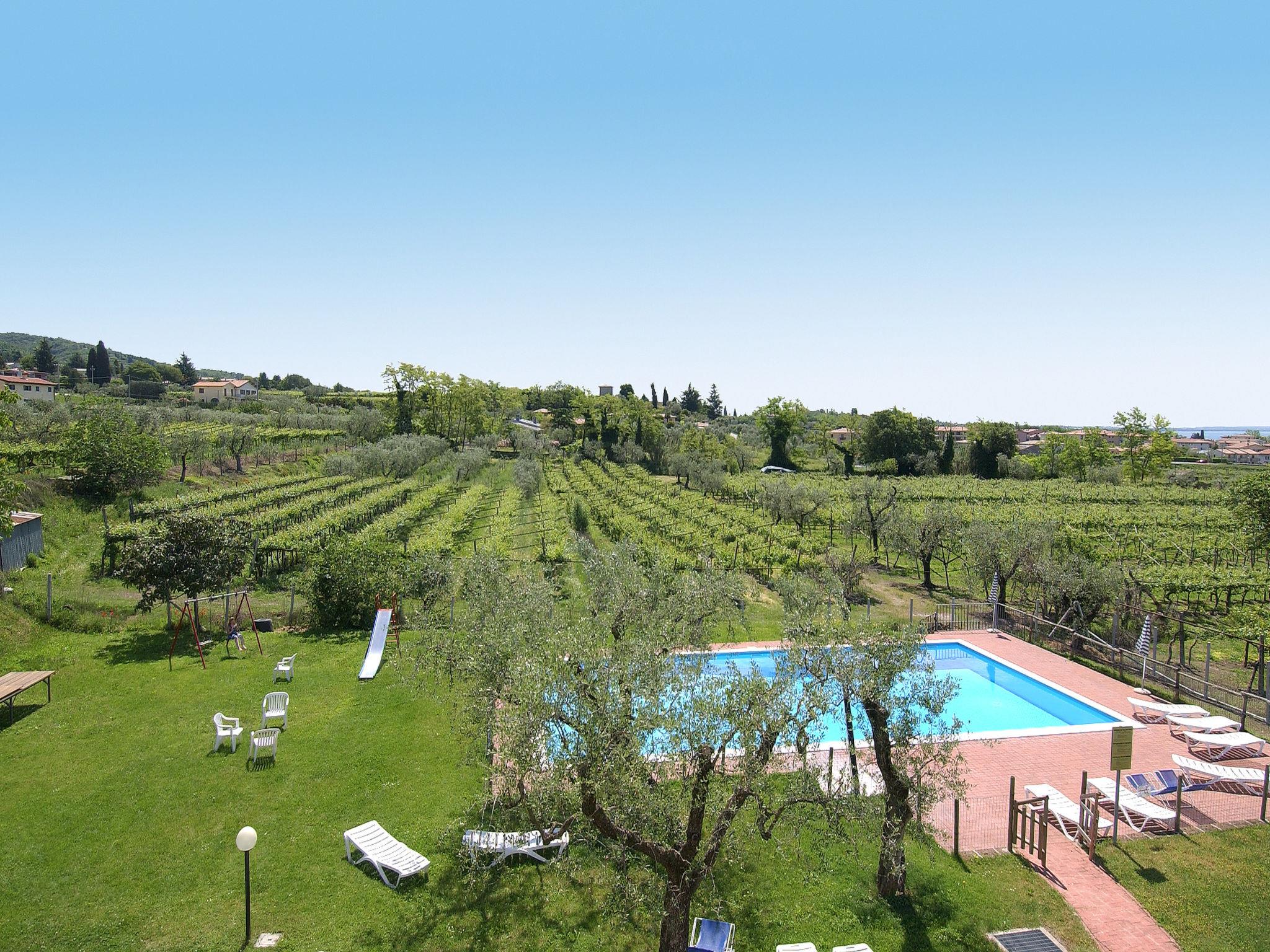 Country house "Ca' Bottrigo", 3 storeys, renovated, surrounded by vineyards. 10 apartments in the property. Above Bardolino 1.2 km from the centre of Bardolino, in a quiet position, 1.2 km from the lake. For shared use: property (fenced) with lawn and trees, swimming pool (10 x 4 m, seasonal availability: 15.May. - 30.Sep.). Outdoor shower, garden furniture, barbecue, children's playground (slide, swing). In the house: washing machine (for shared use). Stepped path (10 steps) to the house. Parking (limited number of spaces) at the house. Shop 1.2 km, bus stop 800 m. Nearby attractions: Sirmione 35 km, Verona 38 km. Please note: no lift. Baby equipment on request (extra). The owner does not accept any groups.